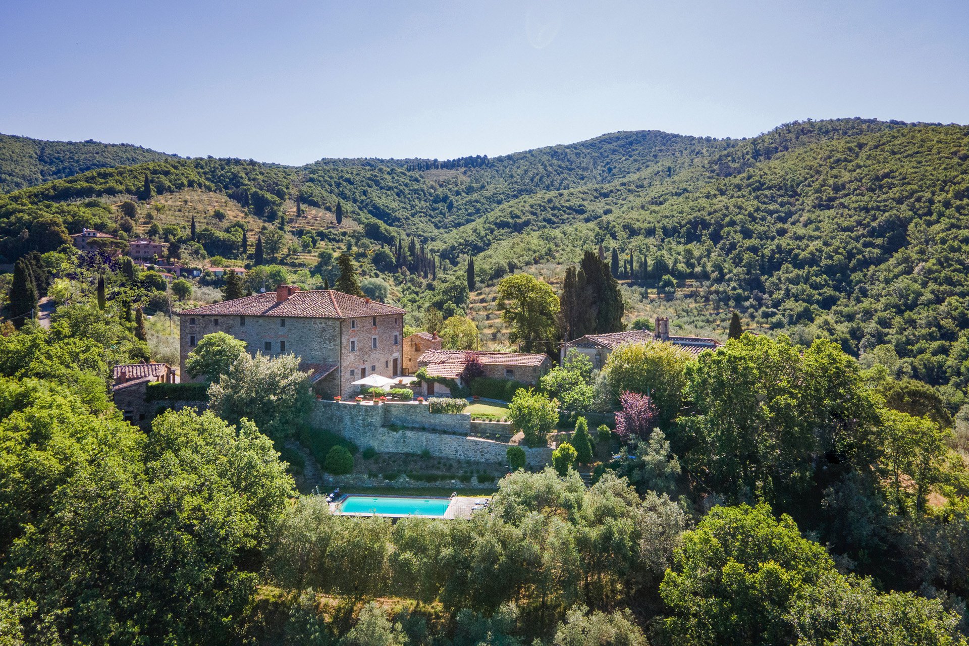 From its picturesque hilltop location, panoramic views are in abundance at this recently restored multi-building estate, with the main 9,124 sqft (847 sqm) house of a scale that would be ideal for development into a boutique hotel. Behind the imposing wooden doors of this remarkable stone building, three distinguished stories of spacious accommodation can be found. Multiple cozy living and dining rooms are joined by a bar, which serve 14 rustic bedrooms, all with fireplaces. Outside, the terrace affords sublime vistas of Valdichiana and is the perfect setting for the large pool, set within a stunning garden, and there is an outbuilding here that could be renovated for use as a changing room or sauna.