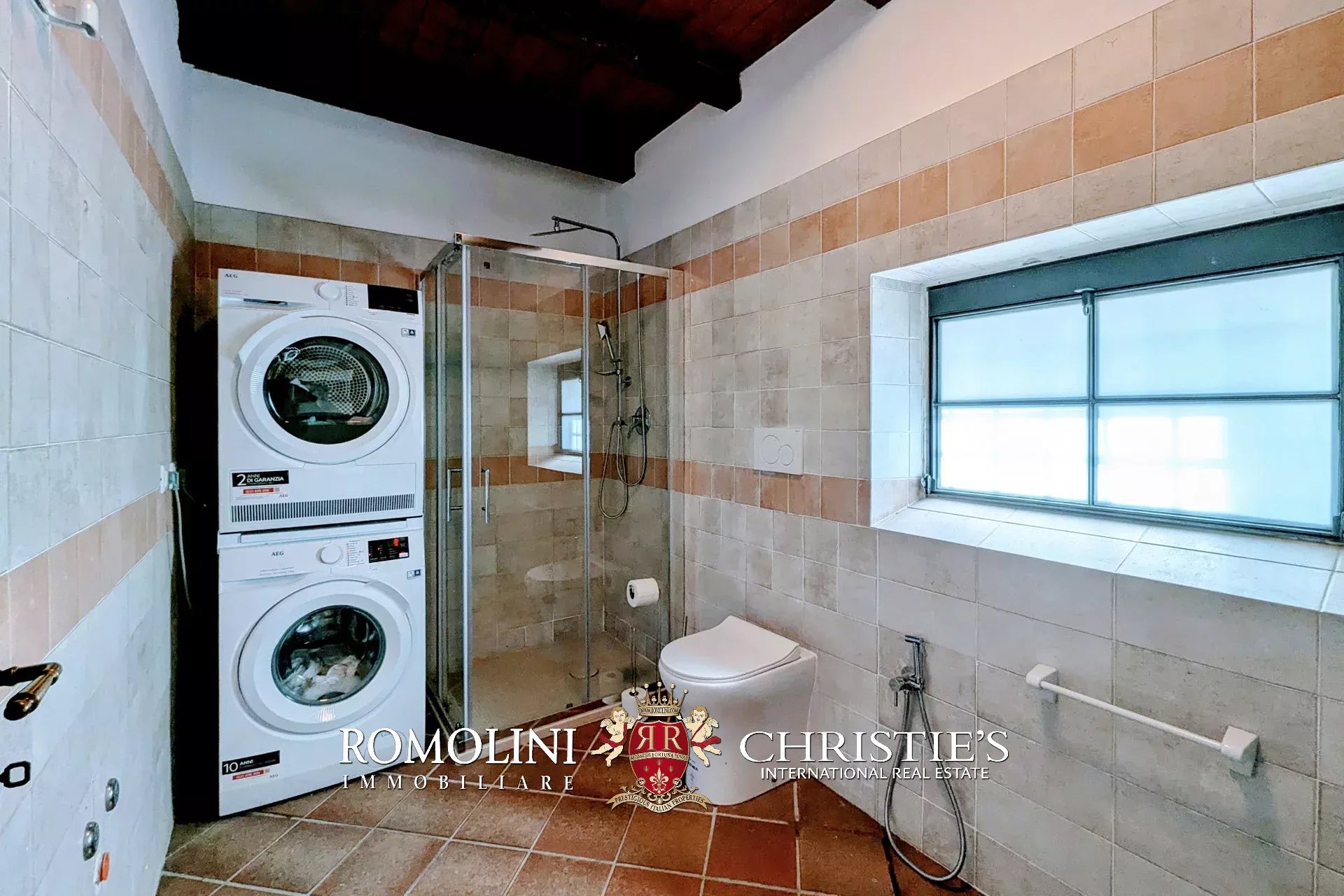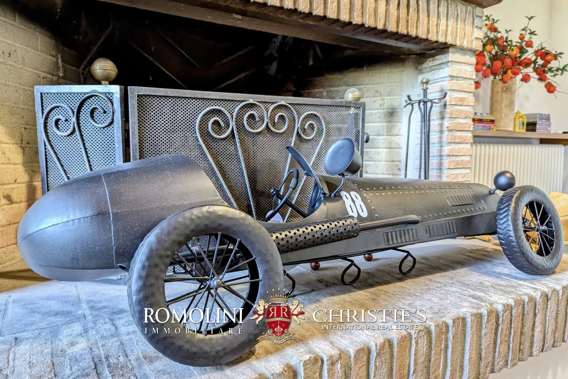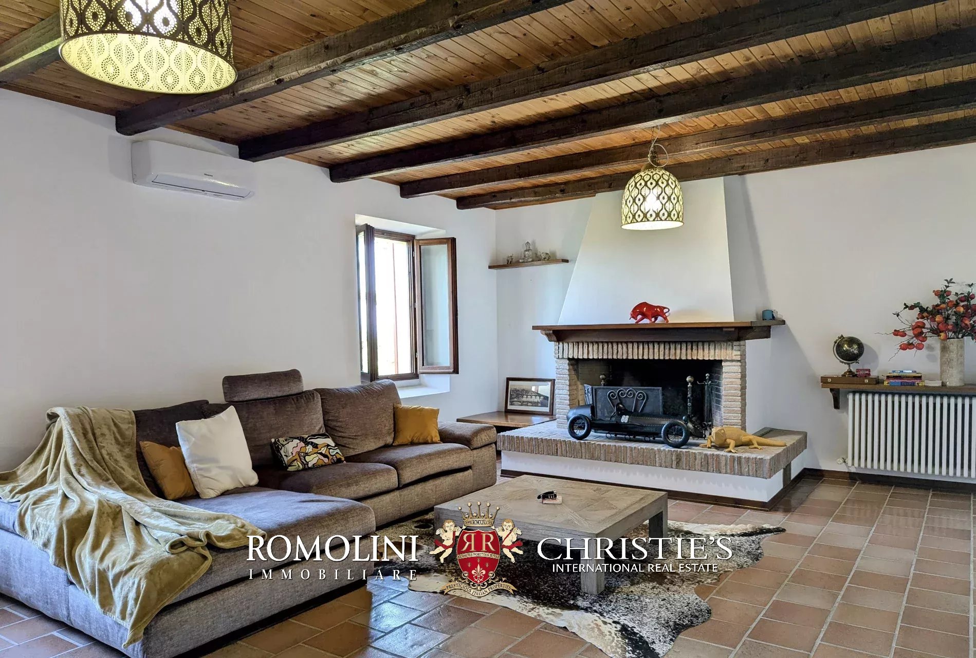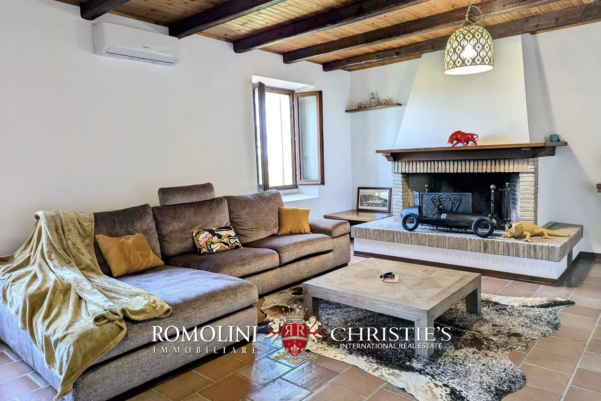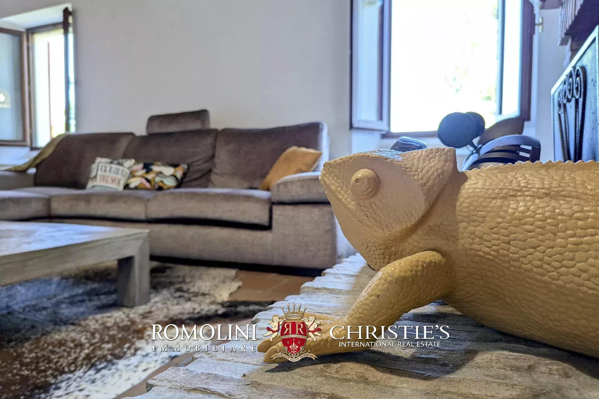 - Erdgeschoss: Wohnzimmer, Küche, Badezimmer, großer, antiker Stall – der zurzeit als Lagerraum genutzt wird, aber in unterschiedlicher Weisen genutzt werden kann – und ein 38 m² großer Portikus.