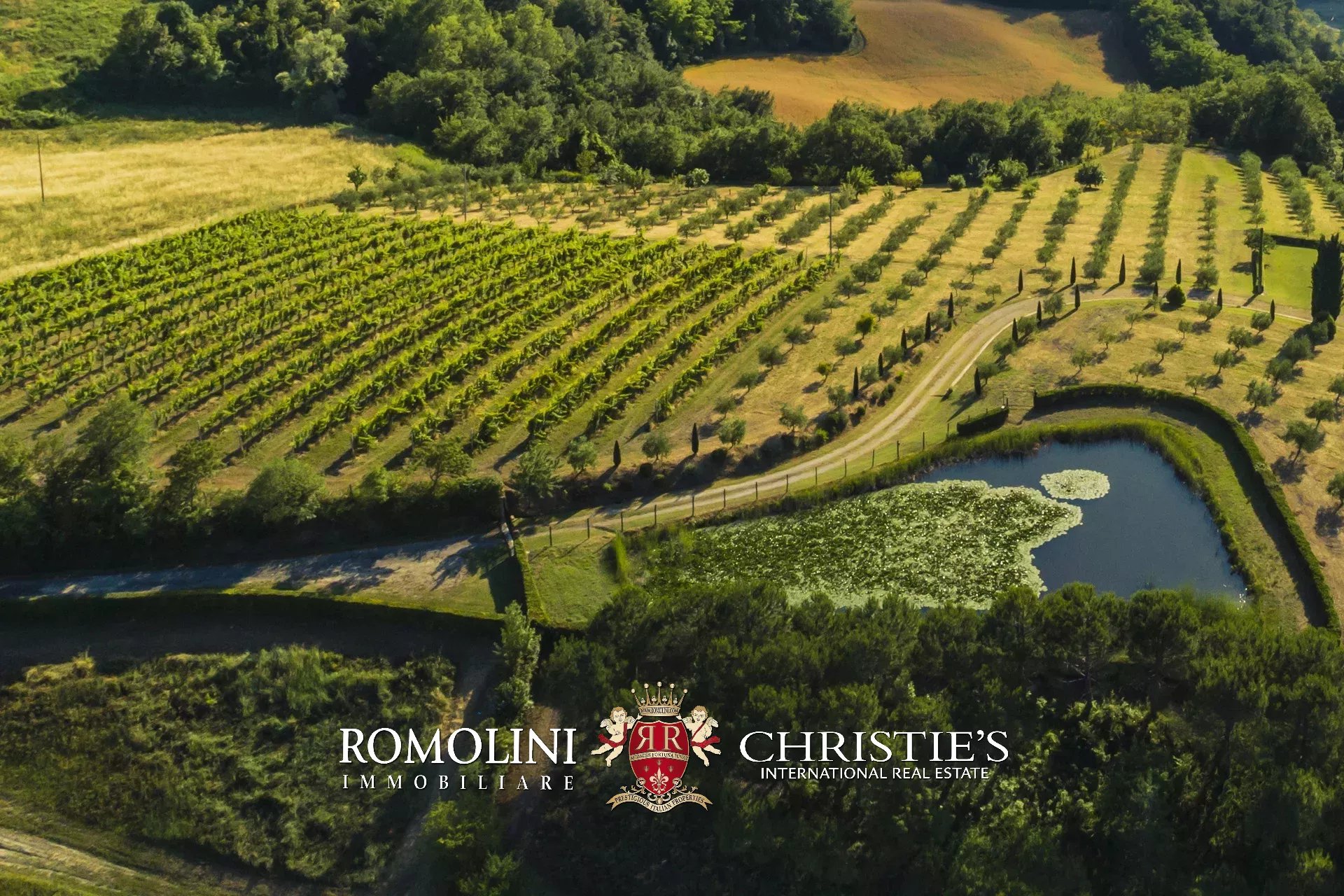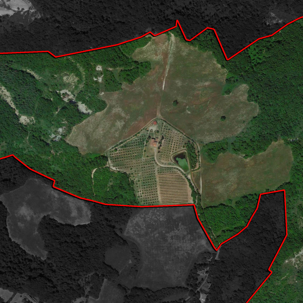 Das Anwesen besteht aus 48,0 Hektar Land. Das Grundstück, das das Landhaus umgibt (ca. 2,1 ha, bestehend aus Garten, Teich, Weinberg und Olivenbäumen), ist mit einem Holzzaun und einer Hecke (Durchschnittshöhe 1,5 m) eingezäunt und bietet deshalb absolute Privatsphäre.