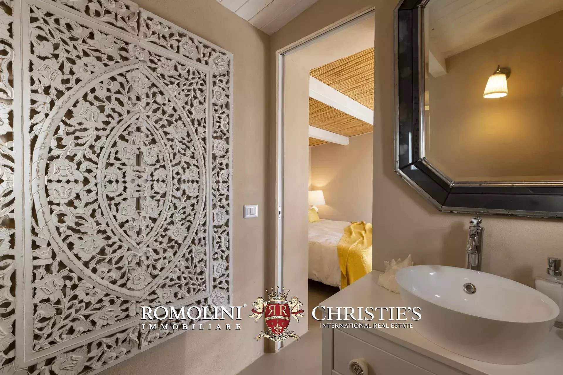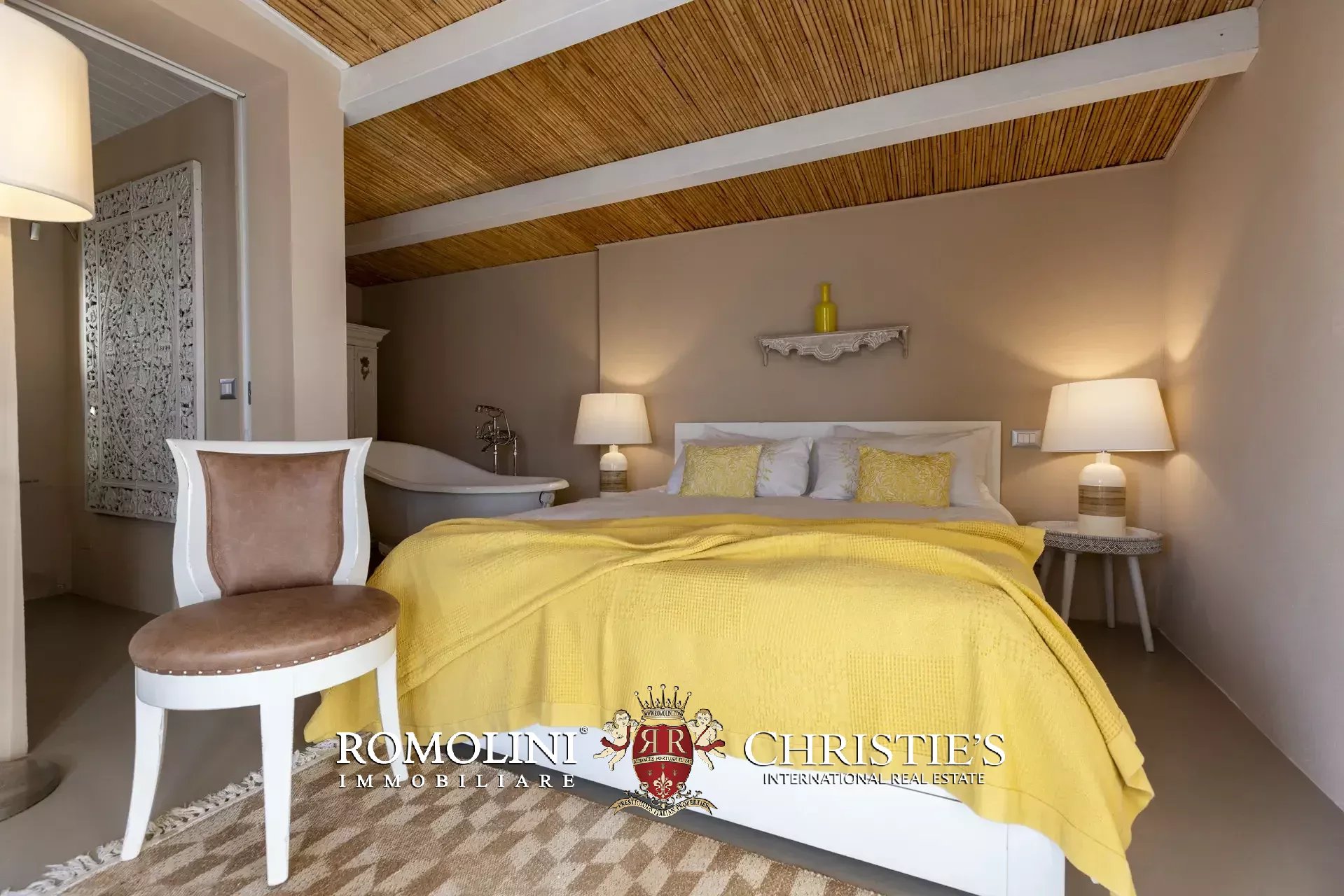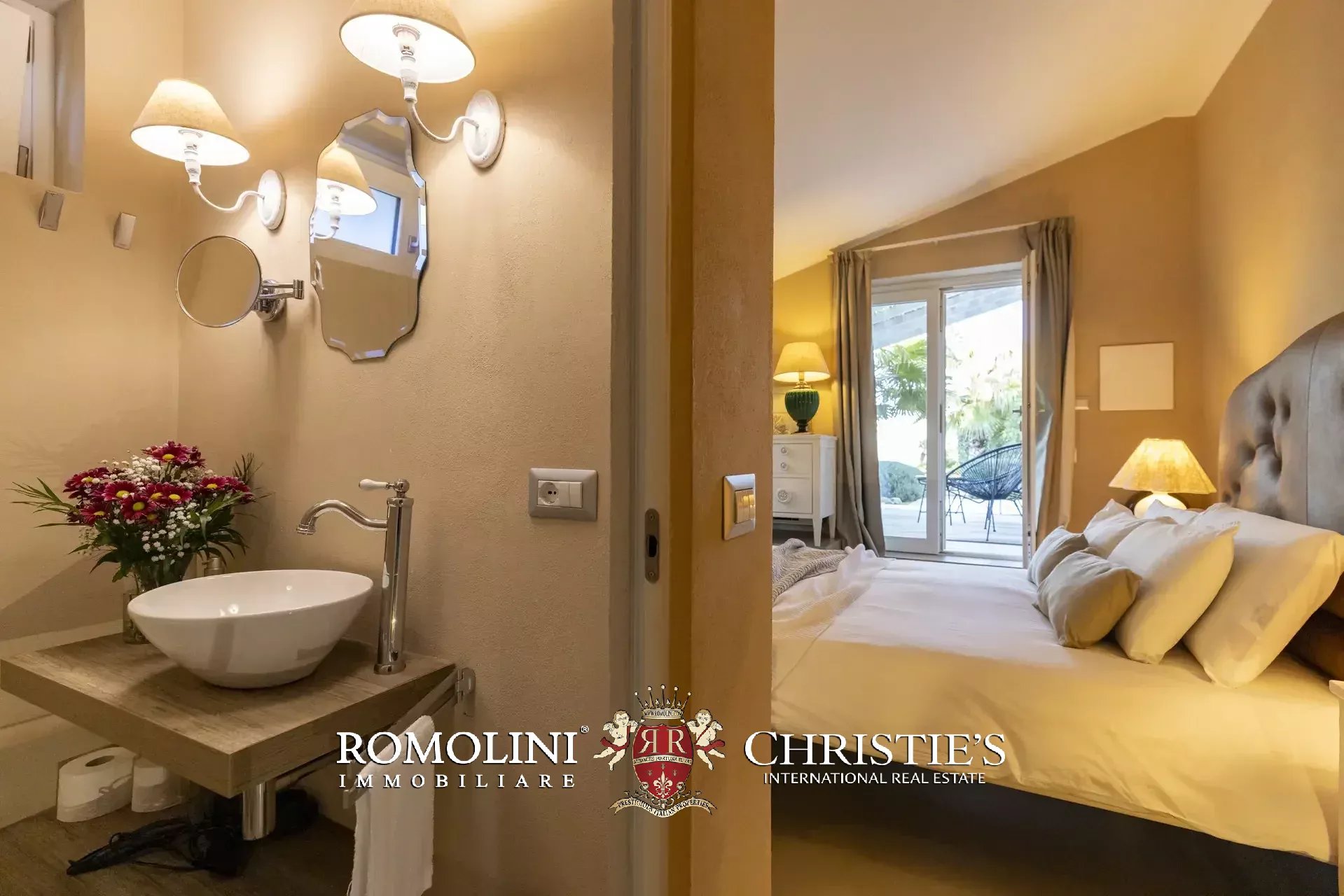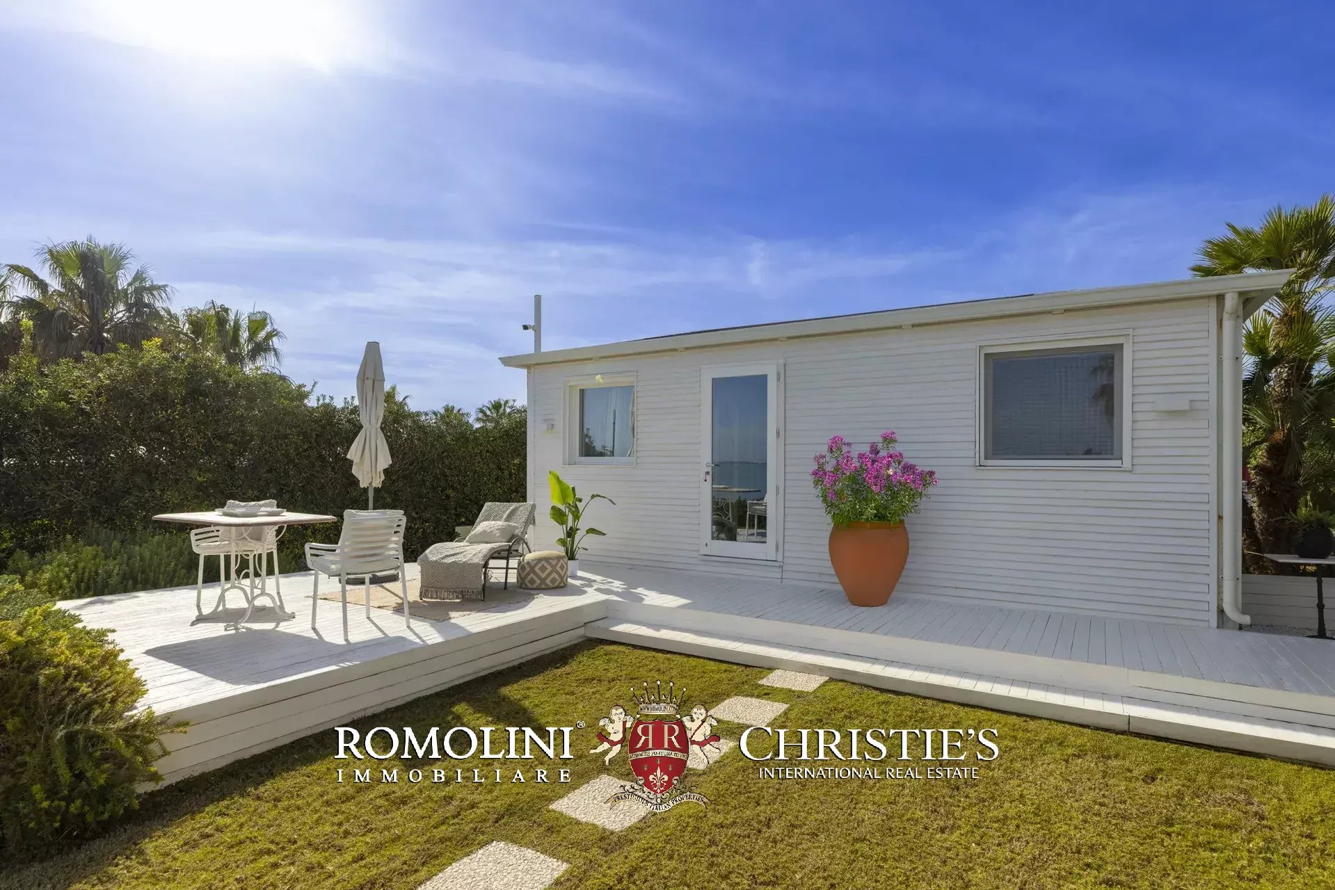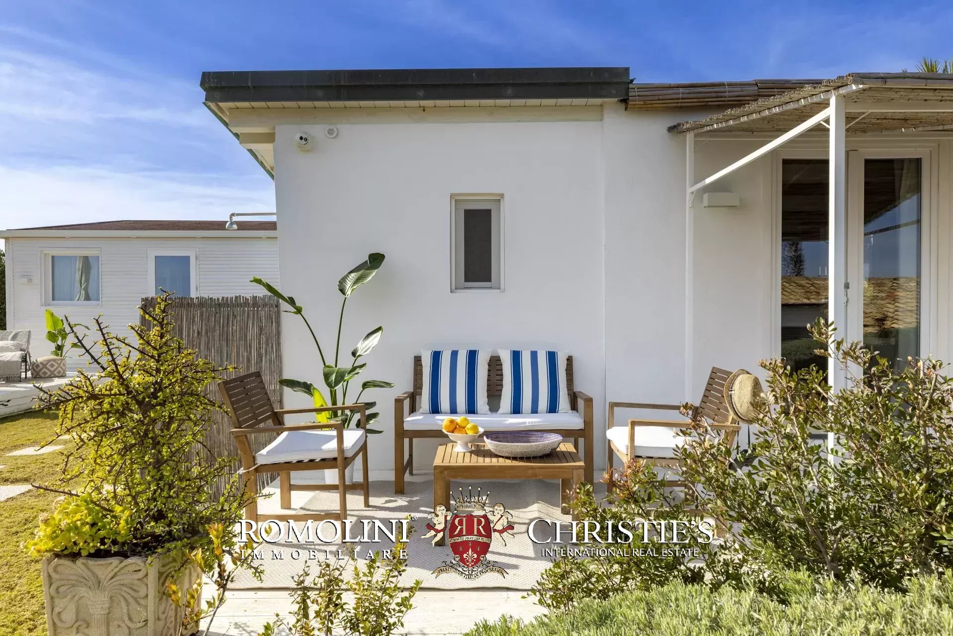 Die Außenbereiche, die das herausragende Merkmal der Immobilie darstellen, erstrecken sich über etwa 2.700 m² mediterranen Garten, sorgfältig gepflegt und reich an aromatischen Pflanzen, Rasenflächen und saisonalen Blüten. Vom automatischen Eingangstor aus gelangt man zu einem großzügigen terrassierten Bereich mit überdachten und nicht überdachten Parkplätzen, von dem aus sich Holzstege, Steinwege und Kieselterrassen verzweigen, die die einzelnen Wohneinheiten miteinander verbinden. Jedes Schlafzimmer verfügt über eine eigene private Terrasse aus gebleichtem Holz, ausgestattet mit schattigen Bereichen sowie Entspannungsbereichen.