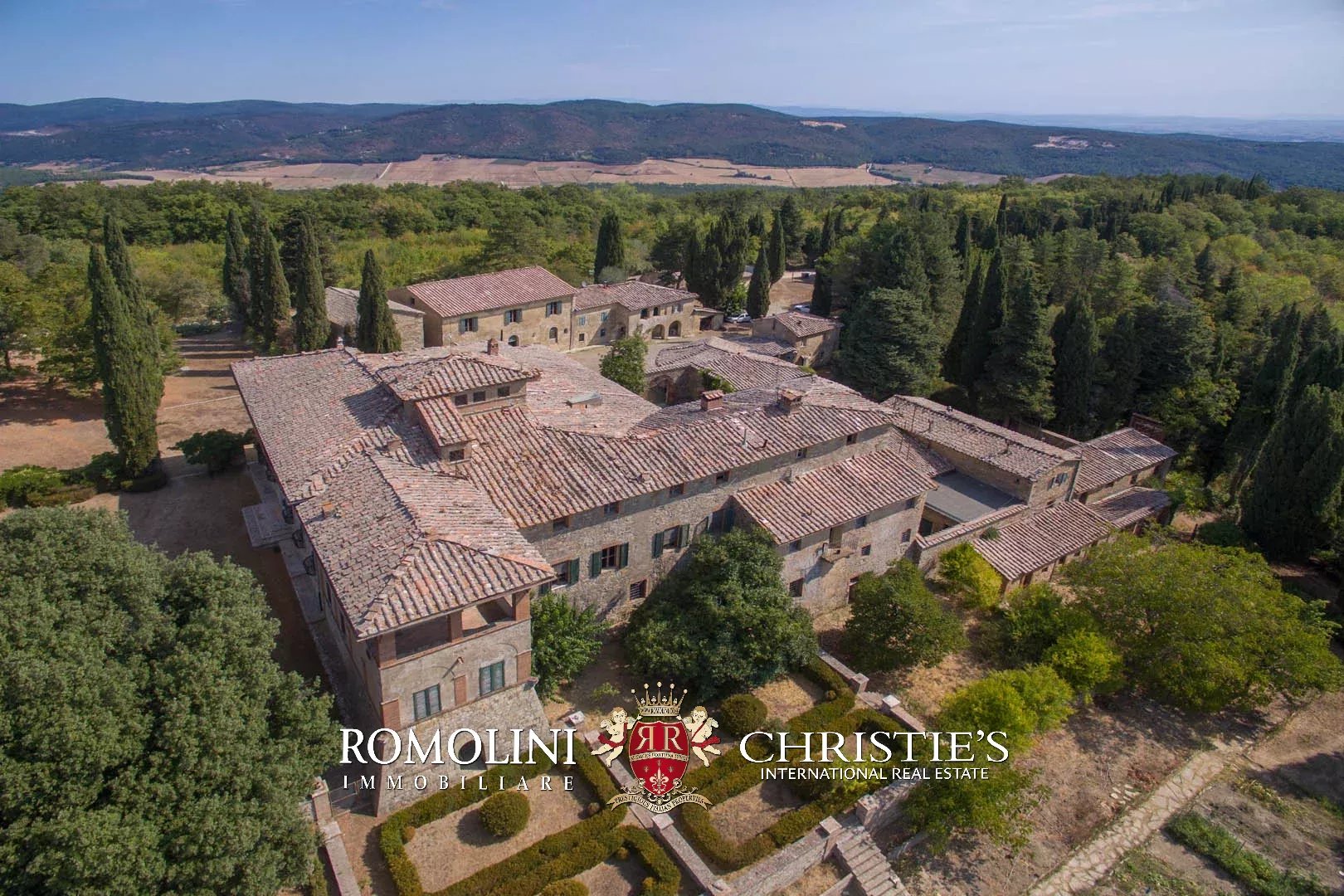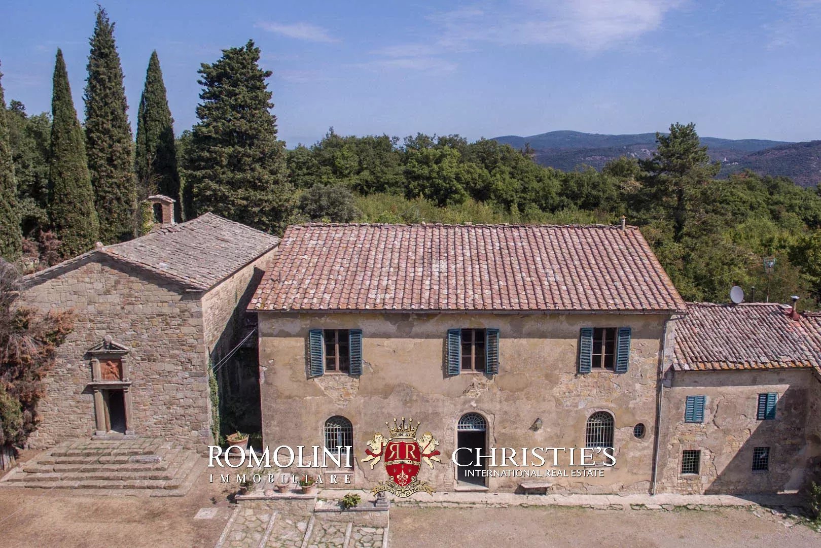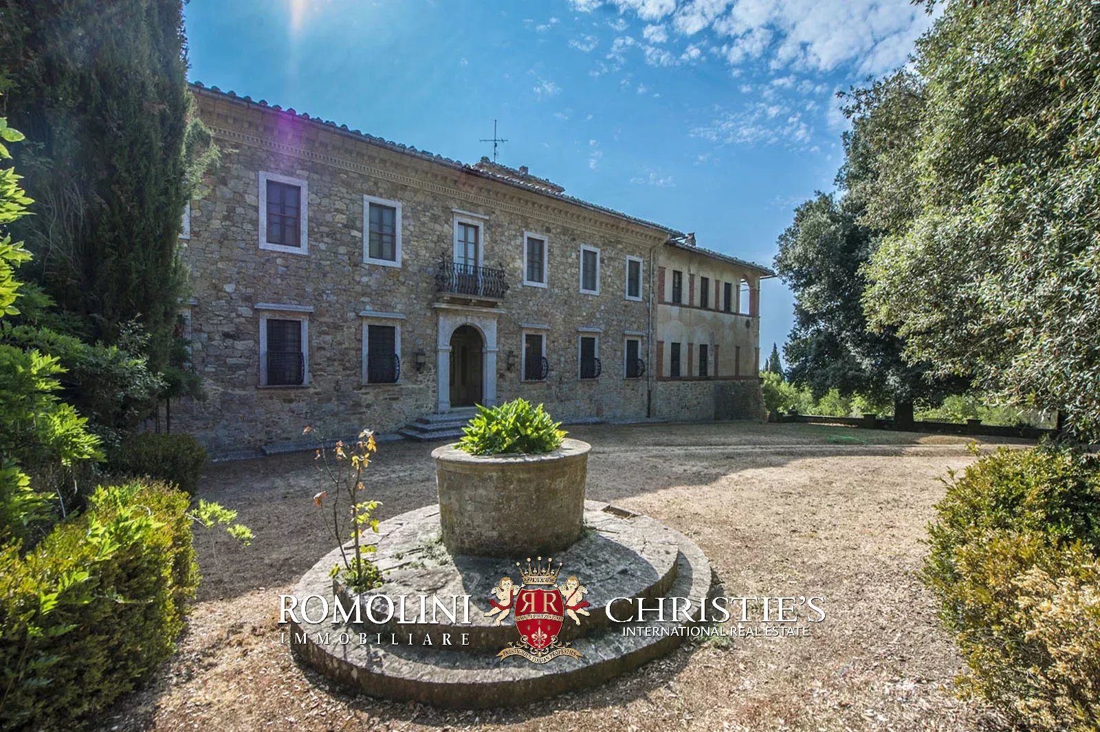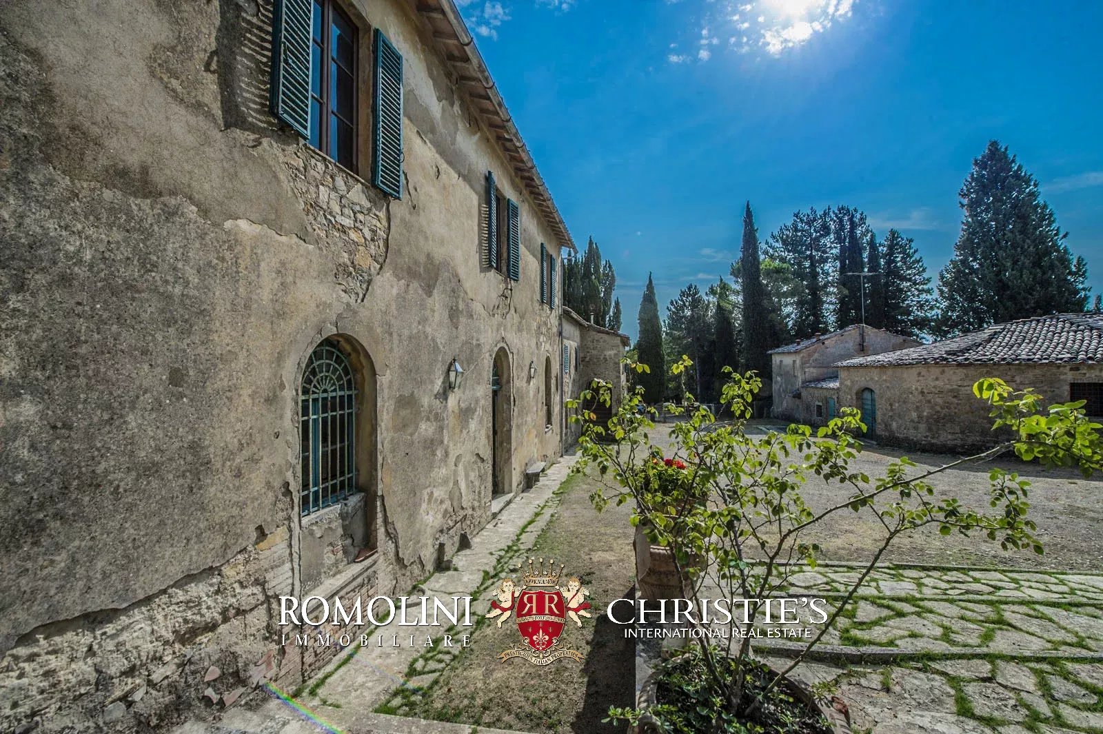 In the Sienese countryside, heart of Tuscany, 160 hectares estate with manor house, church and farmhouses. Easily accessed via a private unpaved road, the property is built among the hills and is made up of several farms to be restored.