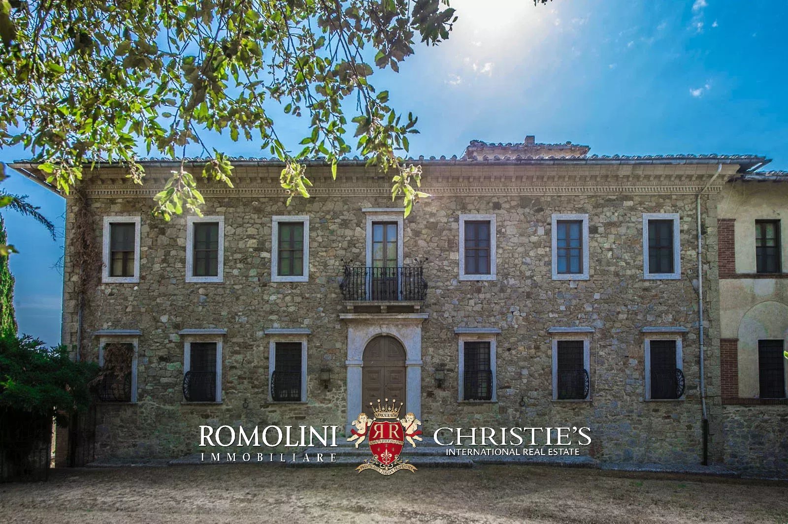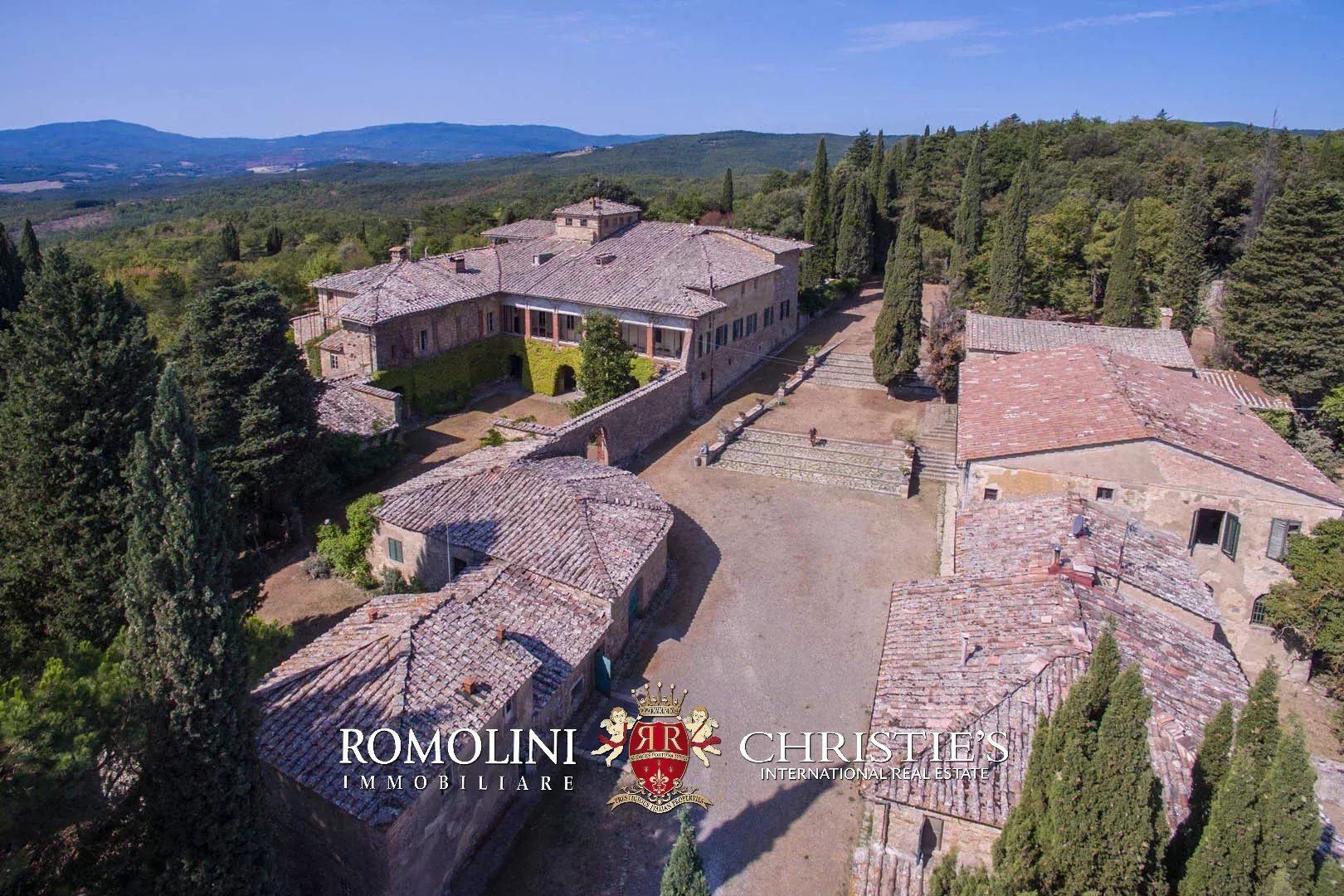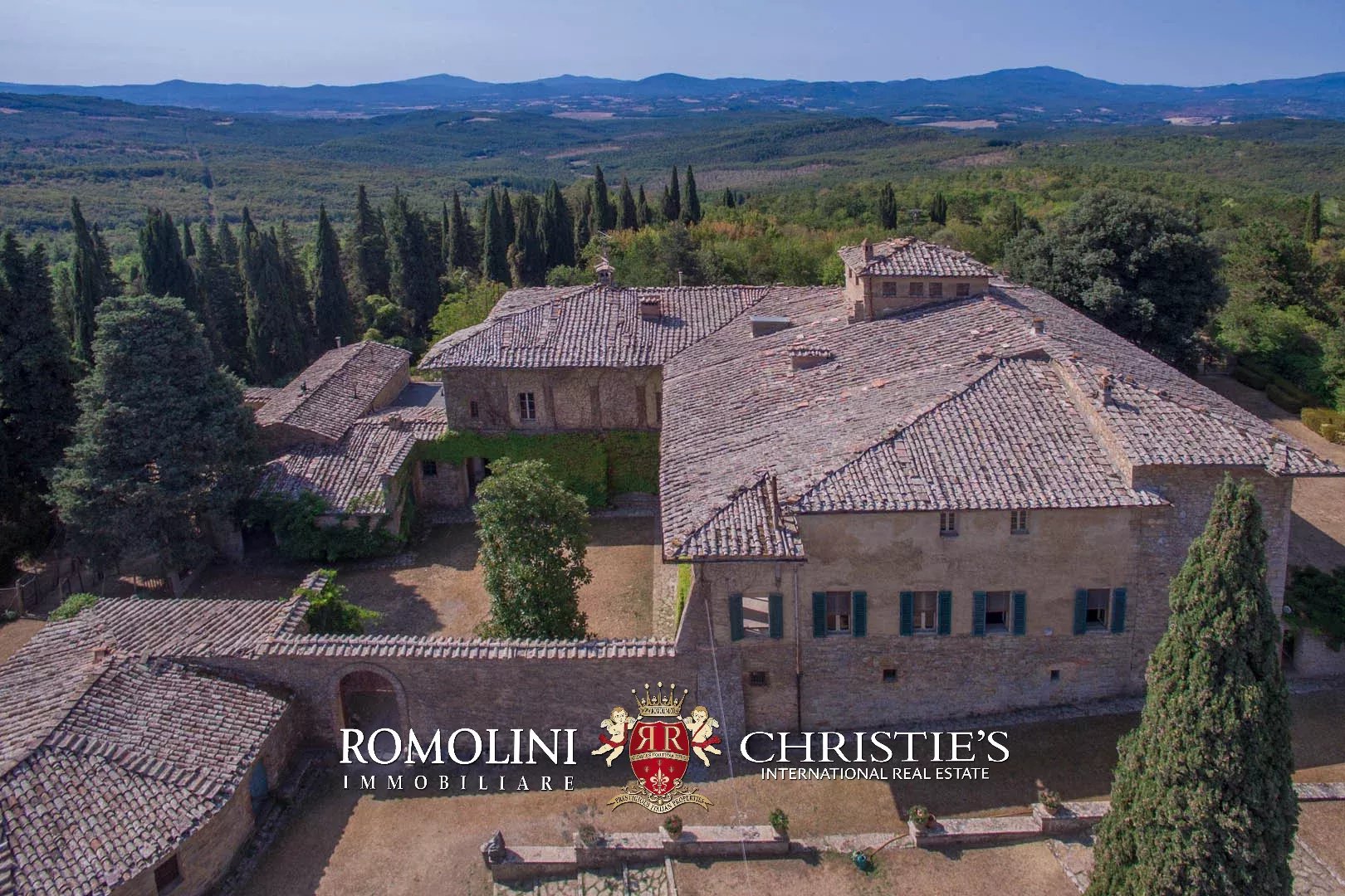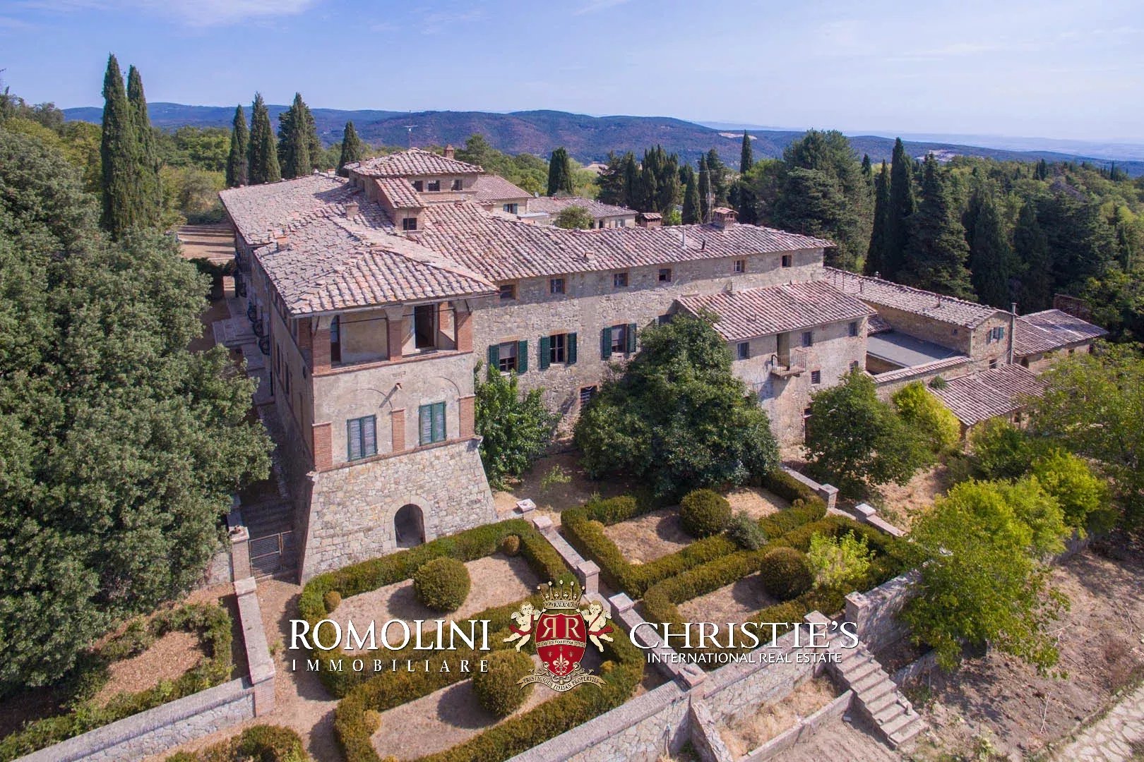 In the Sienese countryside, heart of Tuscany, 160 hectares estate with manor house, church and farmhouses. Easily accessed via a private unpaved road, the property is built among the hills and is made up of several farms to be restored.