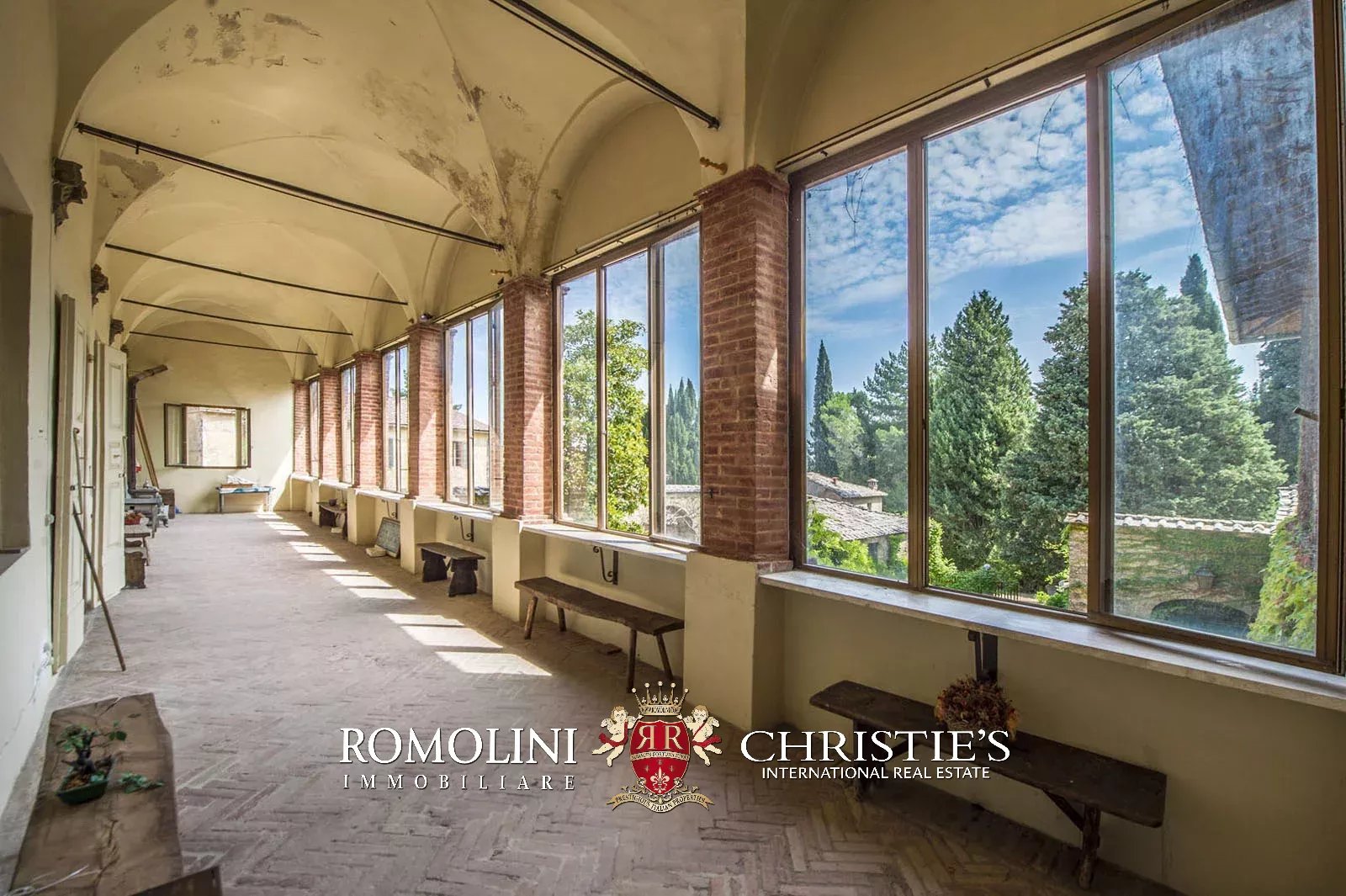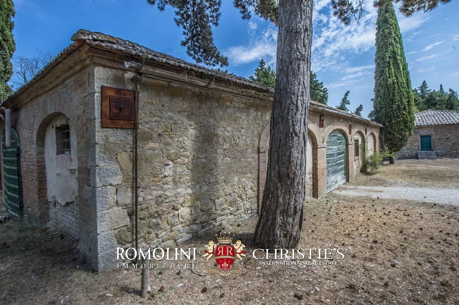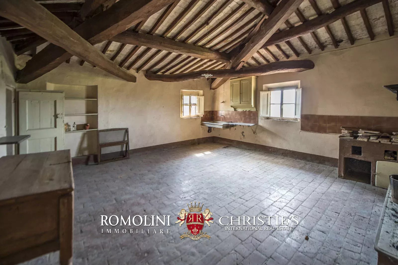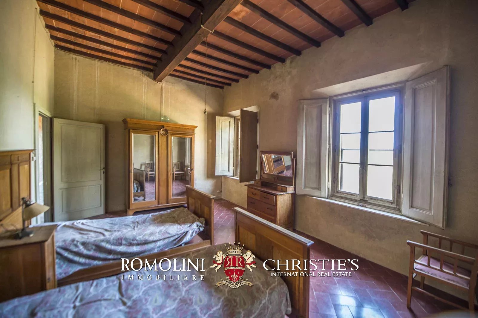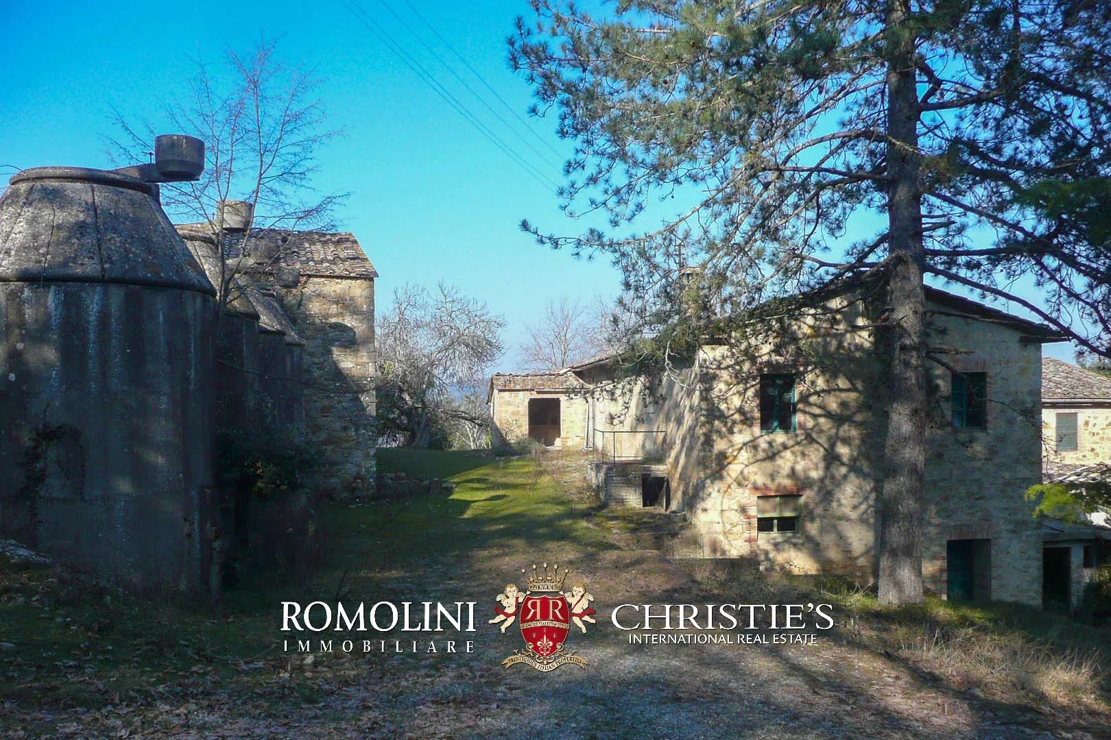 The property, thanks to its ample size, is perfect for anyone looking for a complex to start a hosting business in the beautiful Sienese countryside. Part of the buildings is still inhabitable, despite some restorations needed to bring the property back to its original beauty. Ruined (totally or partially) buildings can be recovered and earmarked to guest houses. It is however possible for the owners to keep living in the complex, keeping the manor house (or part of it) for themselves and leaving the rest to guests. Part of the woodland surrounding the property can be converted into arable land and used this way, planting more olive trees or starting a vineyard.