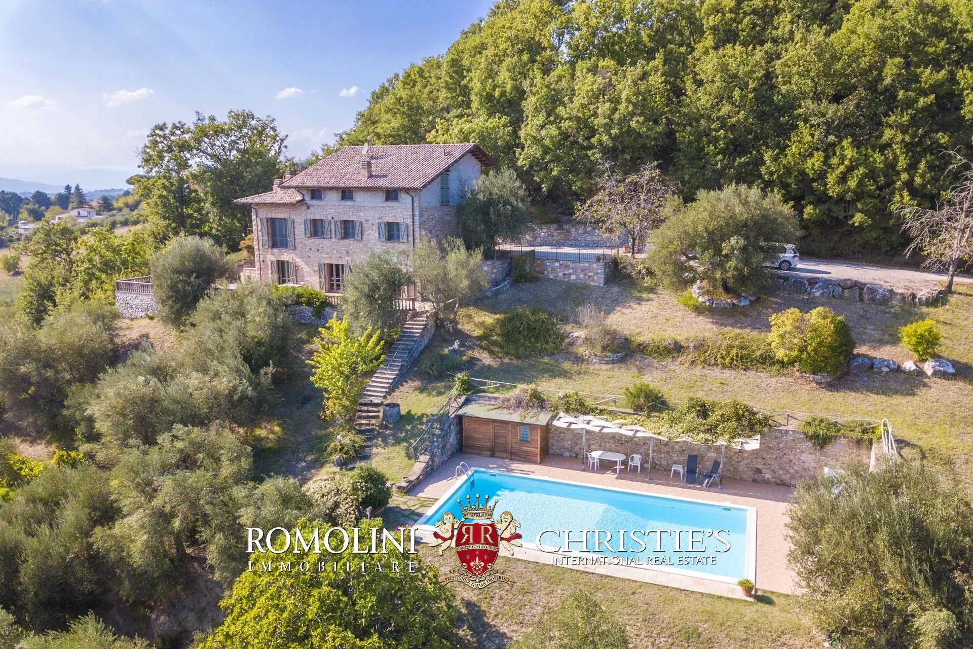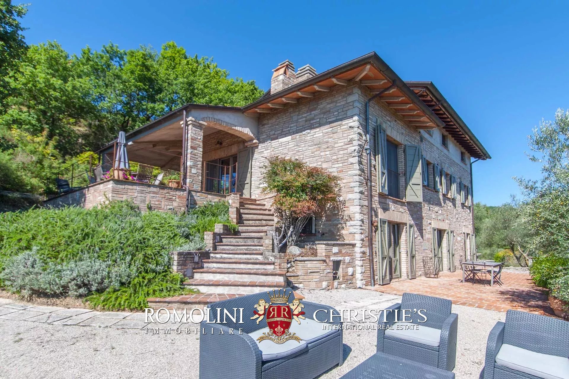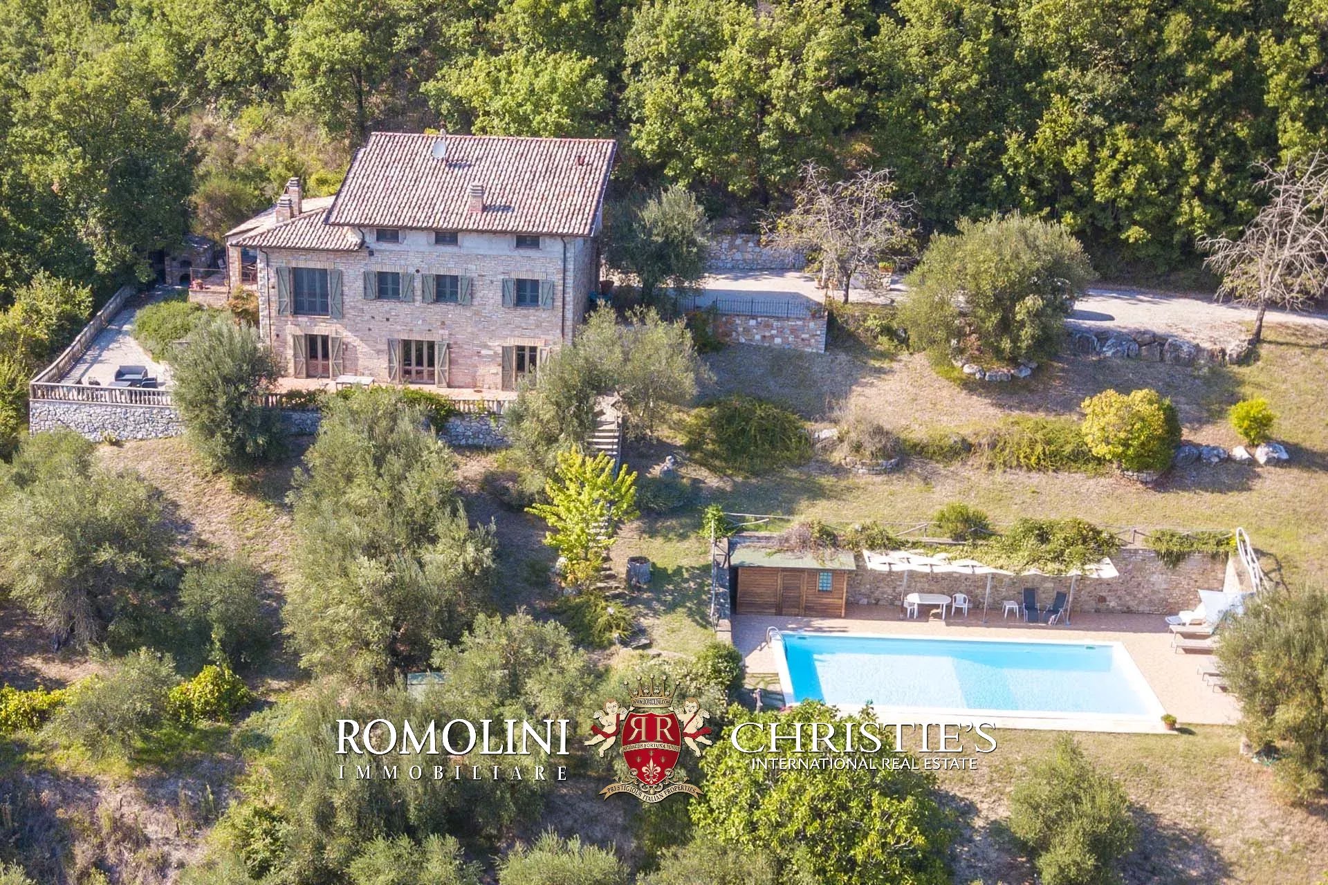 A short distance from Umbertide, in panoramic position on the hills of Umbria, 250-m² farmhouse with 5 bedrooms and 3 bathrooms. Finely restored, the farmhouse boasts excellent finishes with all the 21st-century comforts. Outside, a 2,000-m² garden accommodates a 12 × 7 m swimming pool with terracotta-paved solarium.