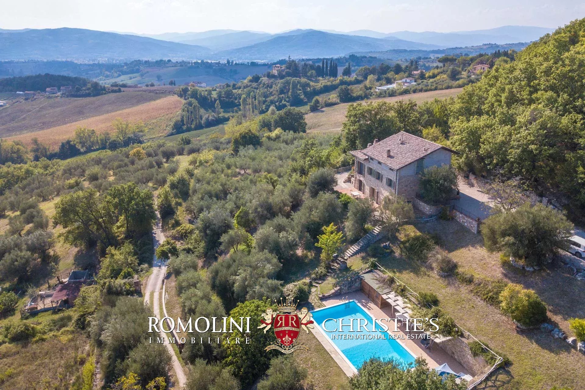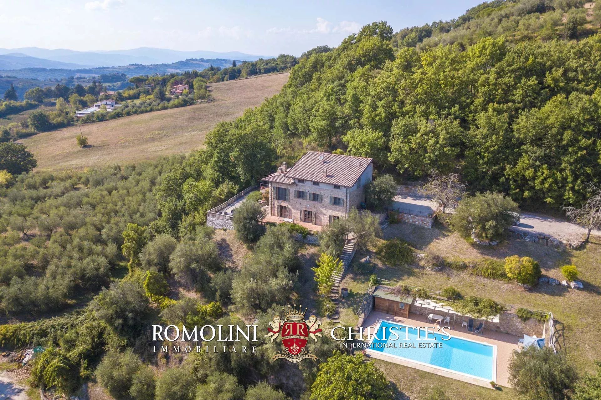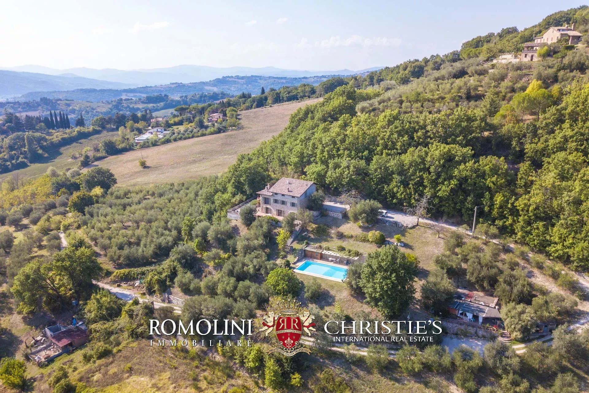 A short distance from Umbertide, in panoramic position on the hills of Umbria, 250-m² farmhouse with 5 bedrooms and 3 bathrooms. Finely restored, the farmhouse boasts excellent finishes with all the 21st-century comforts. Outside, a 2,000-m² garden accommodates a 12 × 7 m swimming pool with terracotta-paved solarium.