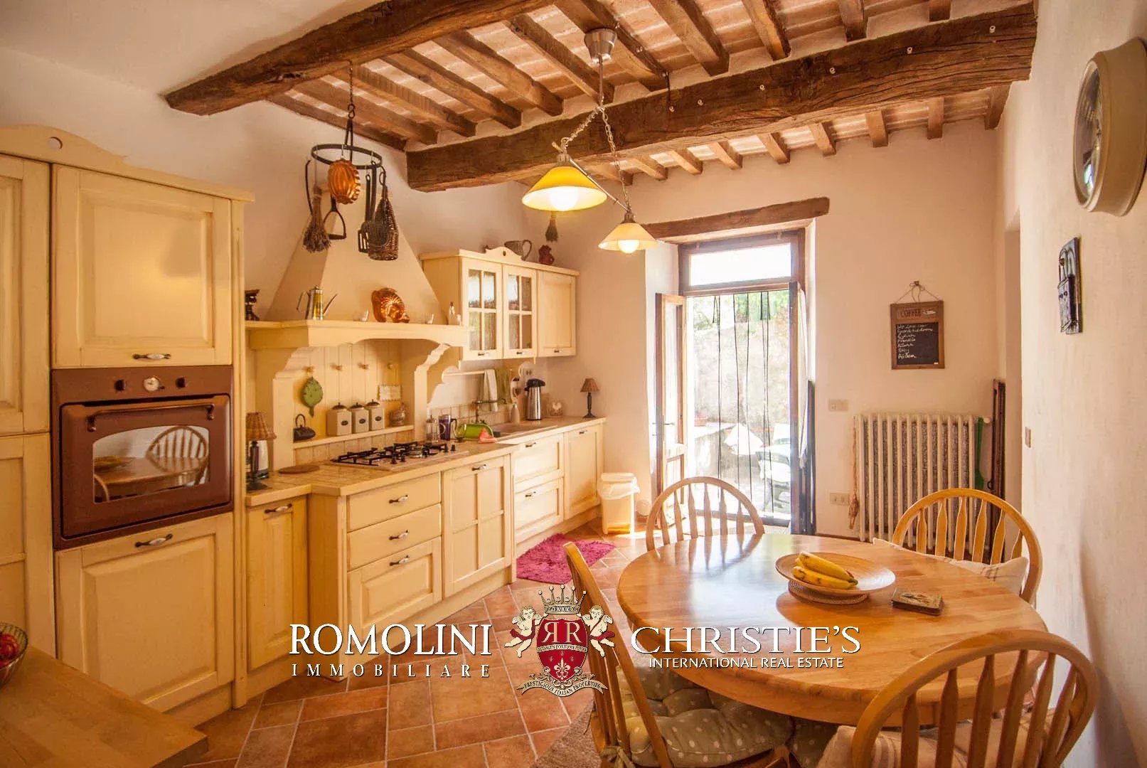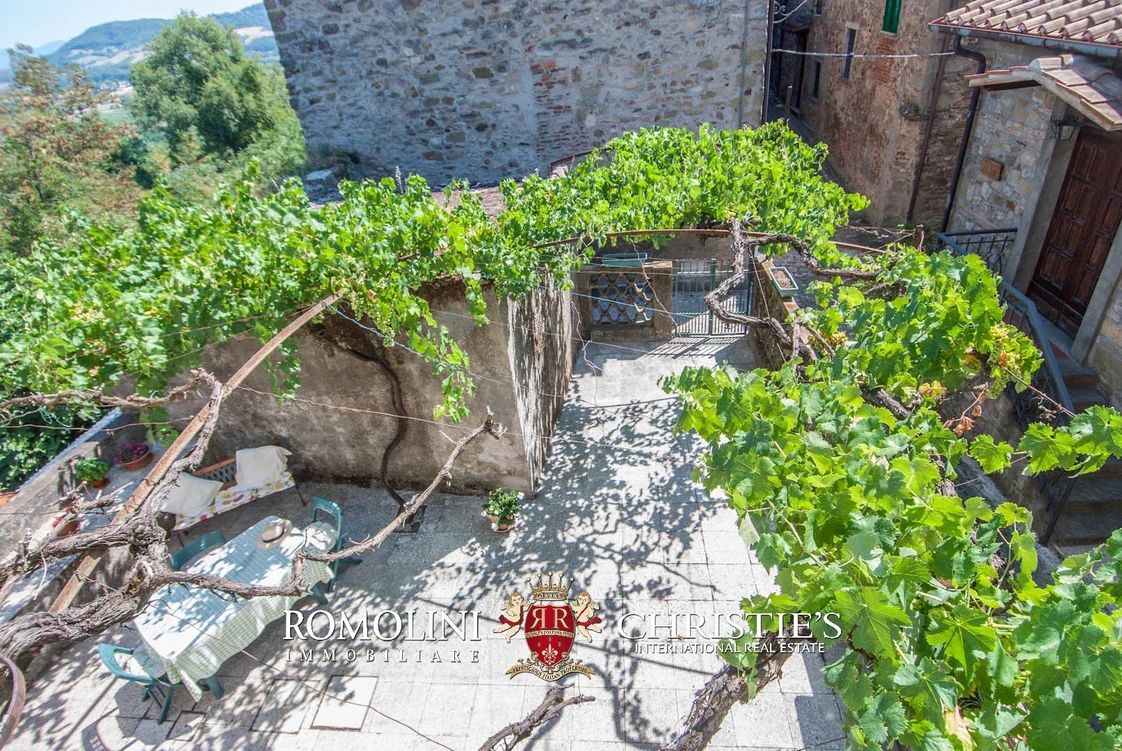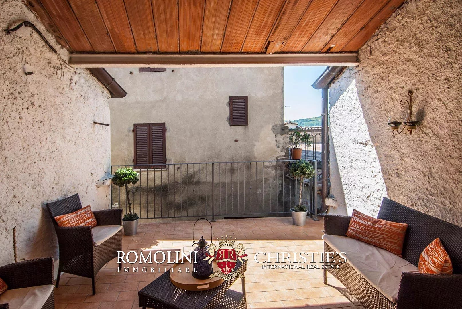 The property has been entirely restored and boasts on the inside wooden beams, plastered walls with visible stone sections and terracotta floors. Fixtures are all made out of wood the same color of the beams. The house is fitted with a nice paved apron up front, easily usable for al fresco dining or just to enjoy the pleasant climate of the area during summer. The terrace on the first floor (16 m²) has enough space for a table and some chairs.