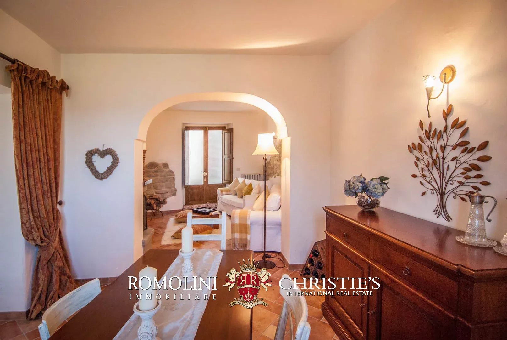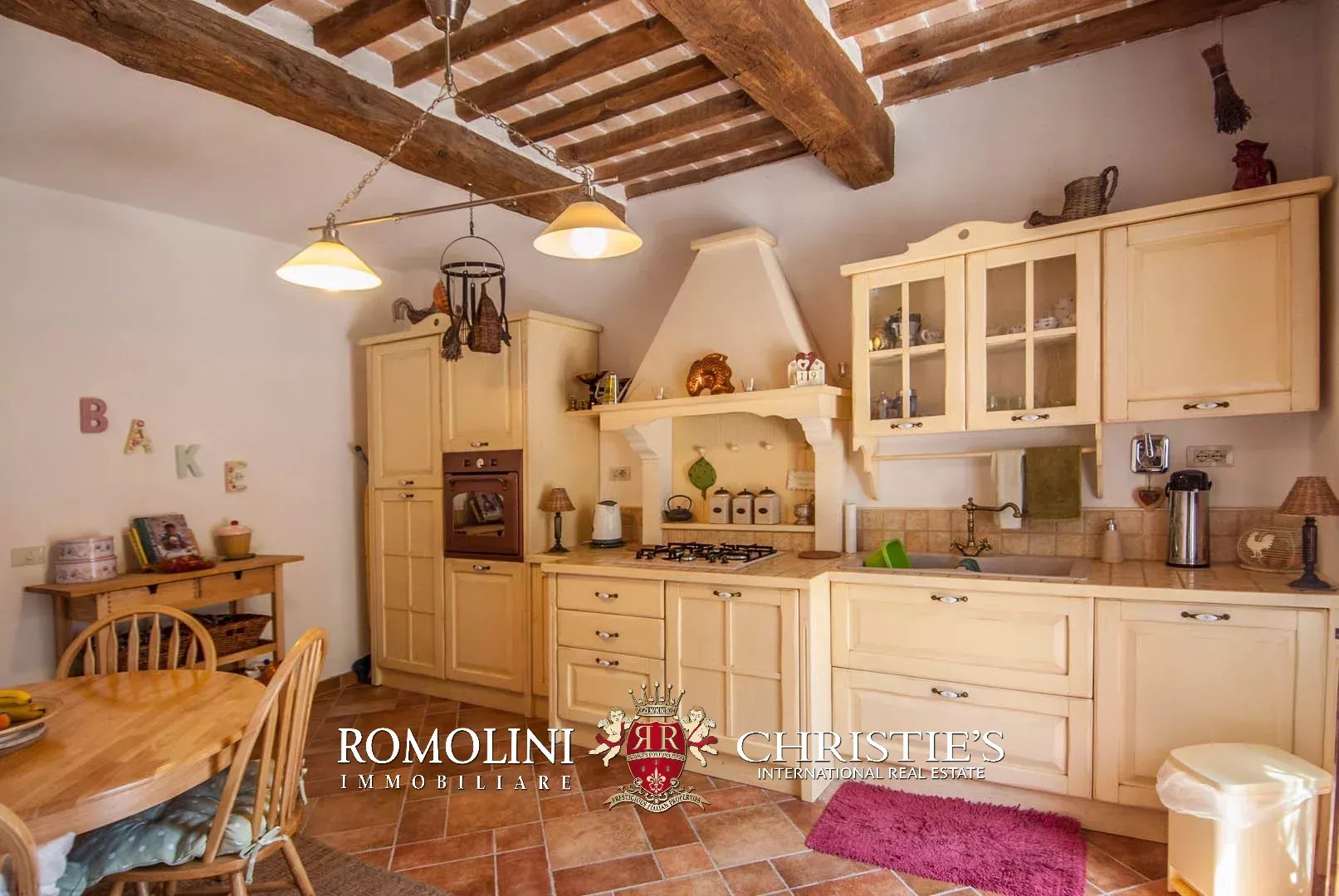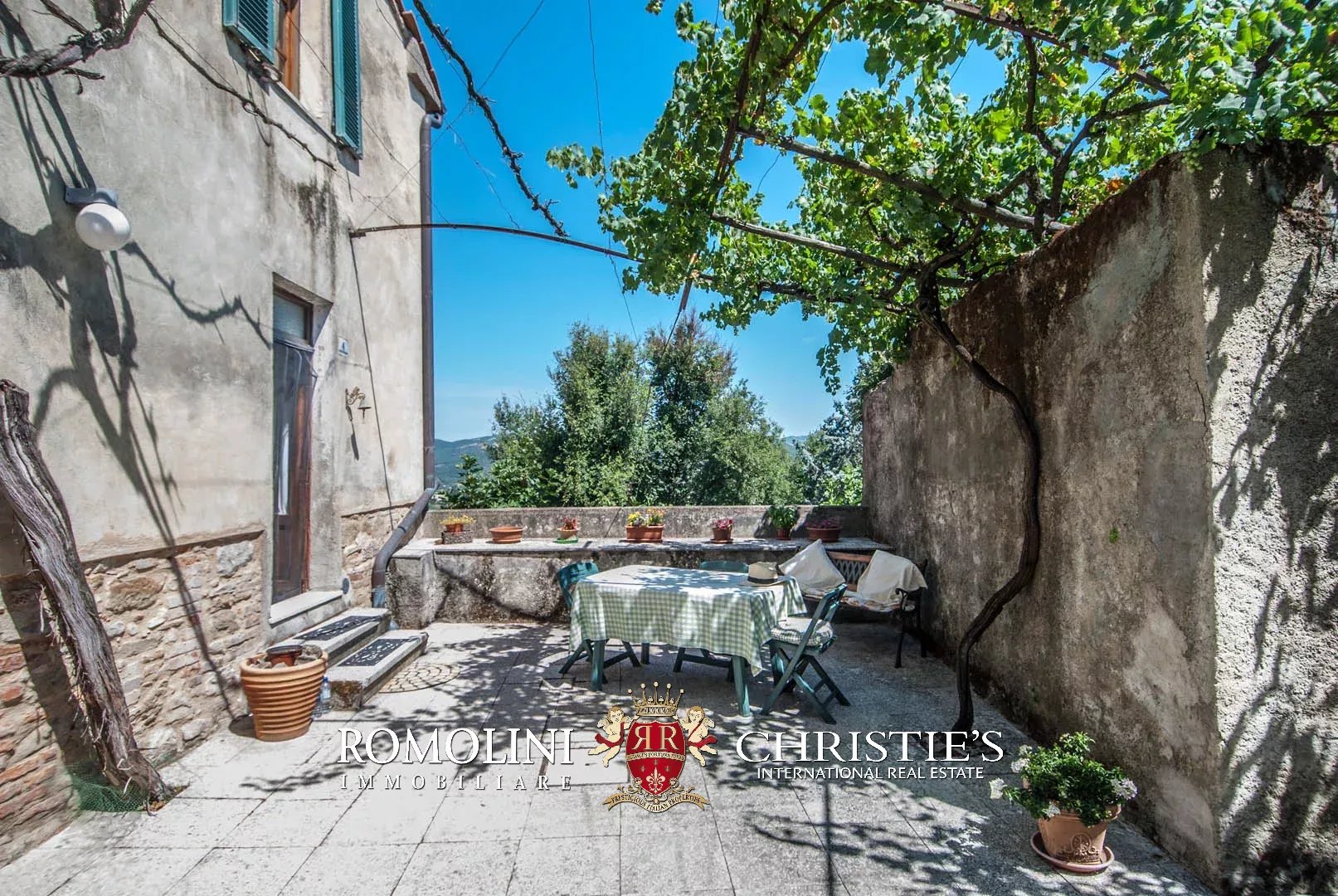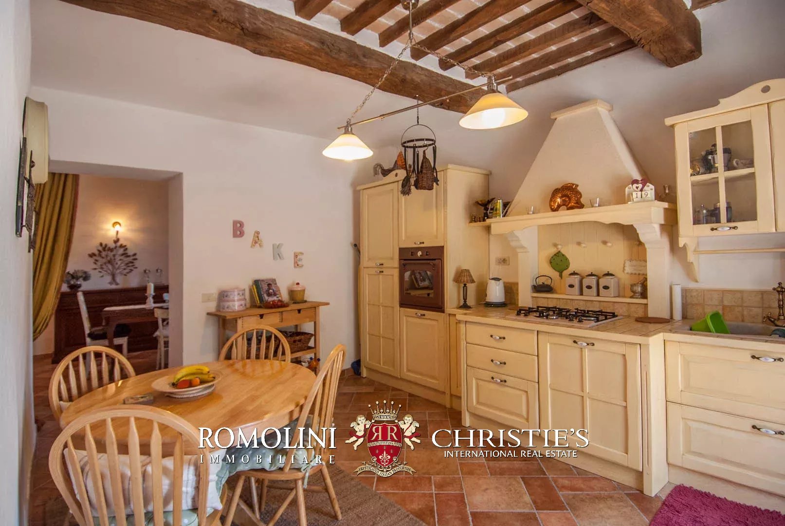 The property has been entirely restored and boasts on the inside wooden beams, plastered walls with visible stone sections and terracotta floors. Fixtures are all made out of wood the same color of the beams. The house is fitted with a nice paved apron up front, easily usable for al fresco dining or just to enjoy the pleasant climate of the area during summer. The terrace on the first floor (16 m²) has enough space for a table and some chairs.