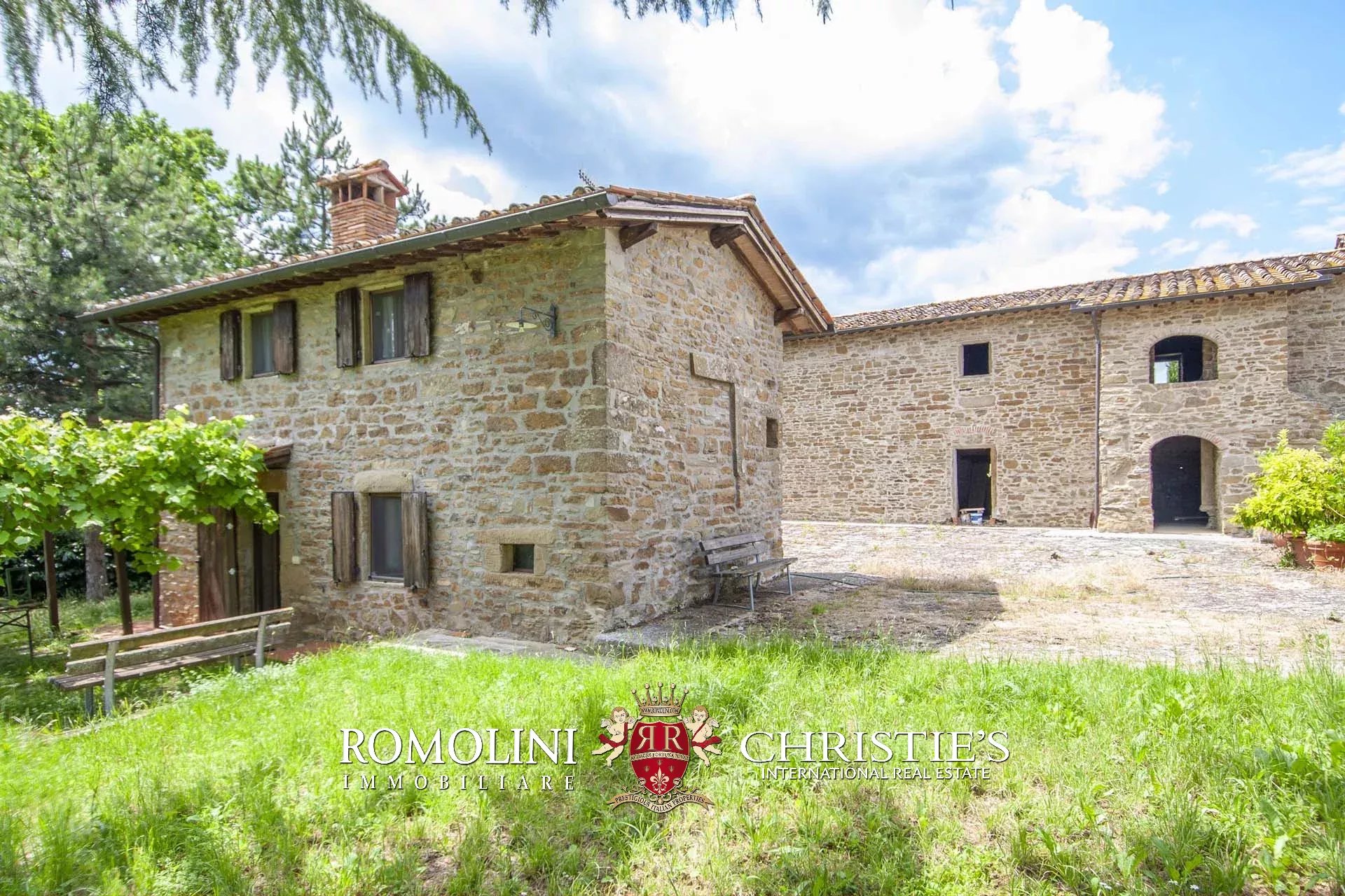 In a beautifully panoramic position not far from the medieval hamlet of Anghiari, this 42.7-ha estate houses a private hunting reserve and is particularly suitable for horses. The residential buildings of the estate (a farmhouse and two guesthouses totaling 420 sqm) currently feature 3 bedrooms, but his number could be further increased with a restoration to create a cozy accommodation business. A warehouse and two stables complete the property.