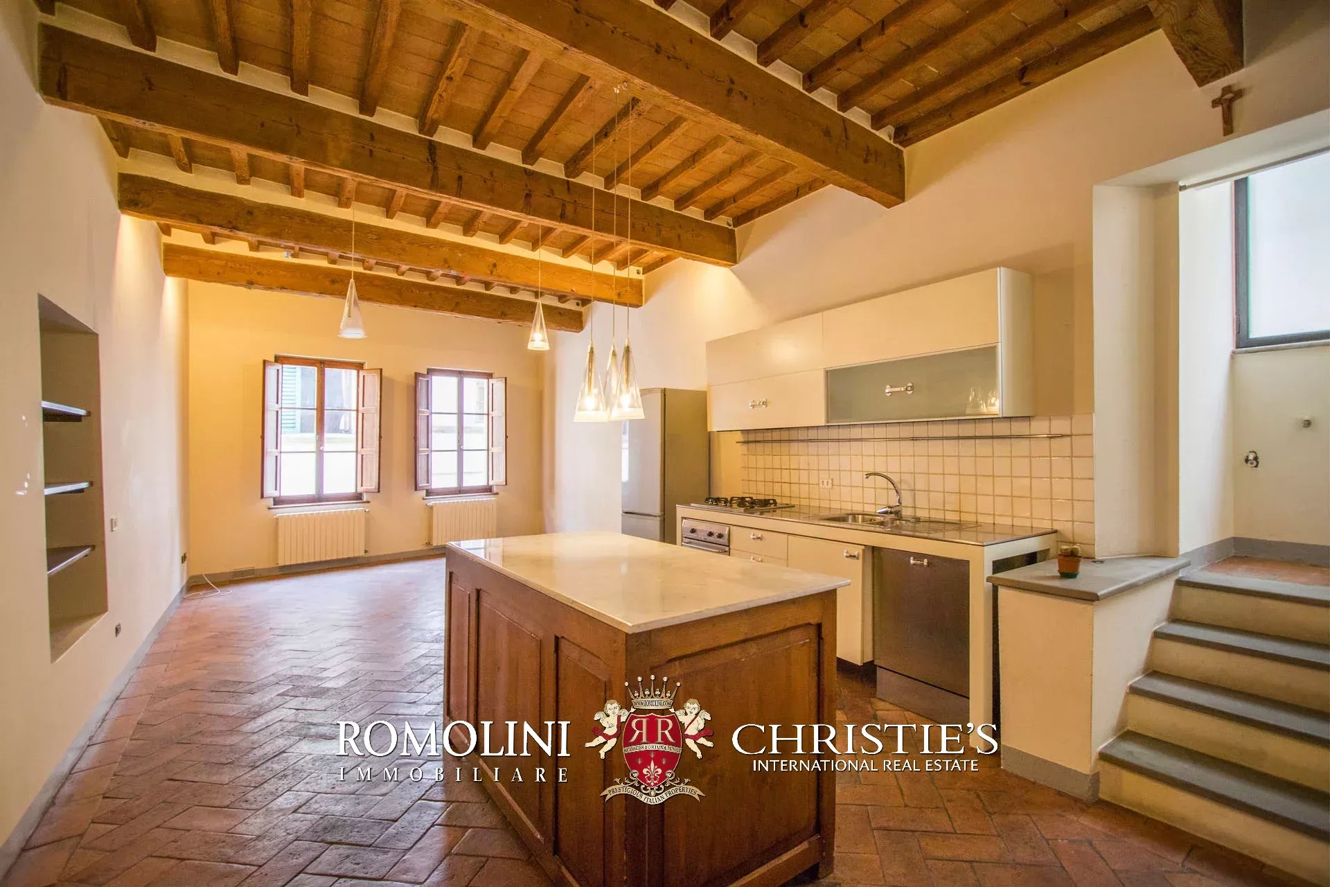 The property is in good condition, with nice finishes. Floors are all covered in cotto and parquet, walls are plastered with a few sections of masonry left visible and ceilings are supported by typical wooden beams.