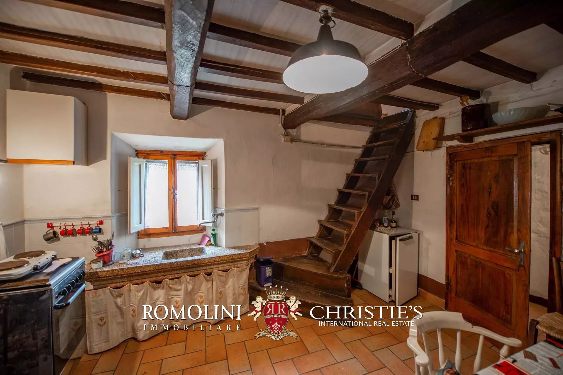 In a small hamlet near Caprese Michelangelo, cute 55-m² townhouse. The property, in need of renovation and updates, is laid over three floors including a rustic lounge and a bathroom on the lower ground floor, a habitable kitchen on the upper ground floor and a bedroom with bathroom on the first floor. Basic services are available in the nearby town (2km; 2') and in Caprese Michelangelo (4km; 5').