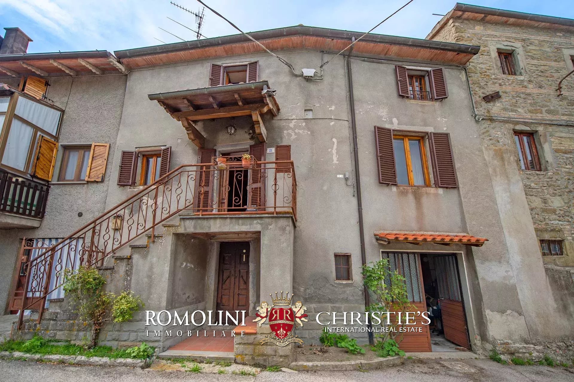 Not far from Caprese Michelangelo, in a small countryside hamlet, 150-m² three-story townhouse with small garden. The building (in need of a general update) is made up of a cellar and storage room on the ground floor, dining room, living room, kitchen and bathroom on the first floor and three bedrooms on the second floor. Outside, a small 30-m² fenced garden completes the property.