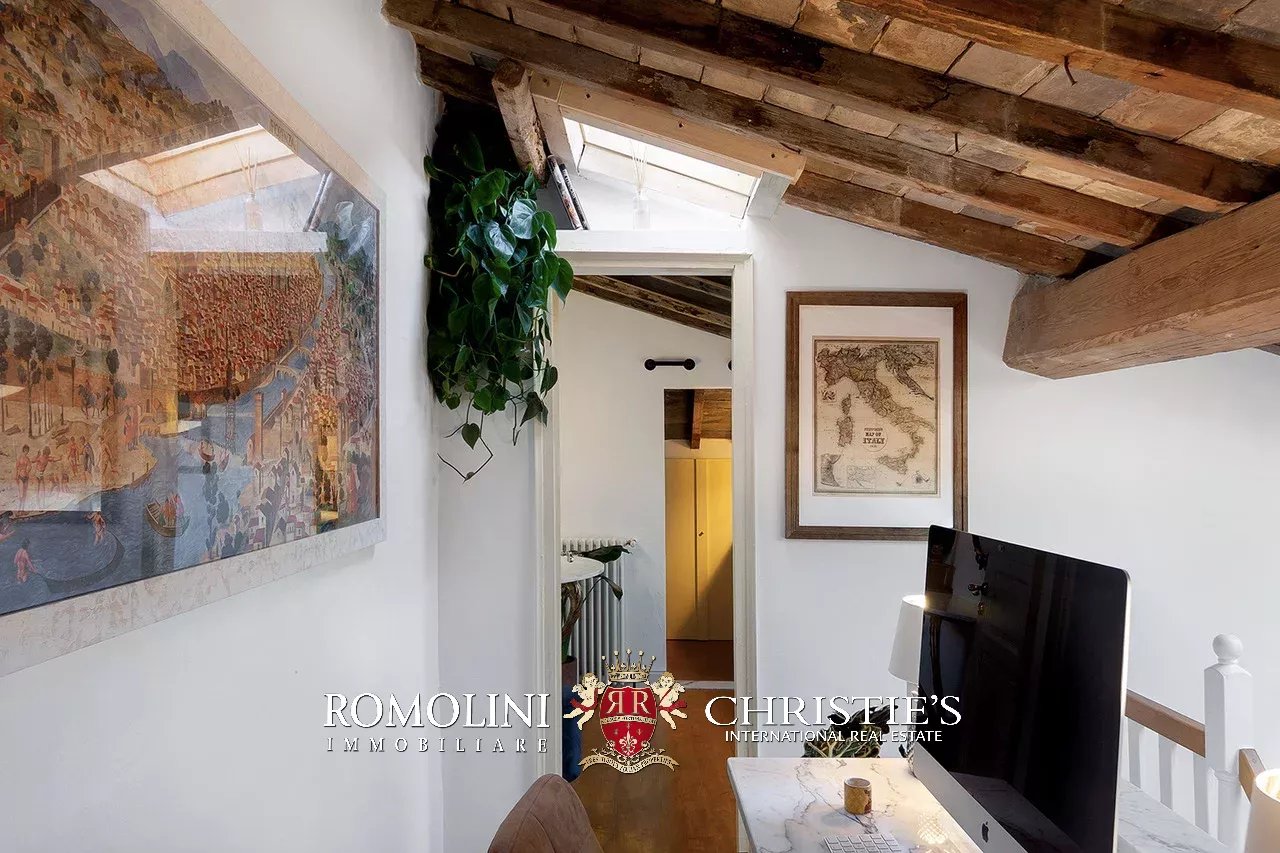 In the historic center of Florence, two steps from the Fortezza Medicea, 120-m² apartment on the third and fourth floors of a historic palazzo. The house (3 bedrooms and 3 bathrooms) has been recently restored, preserving all of its historic features intact, such as wooden beams, original terracotta floors and frescoes.