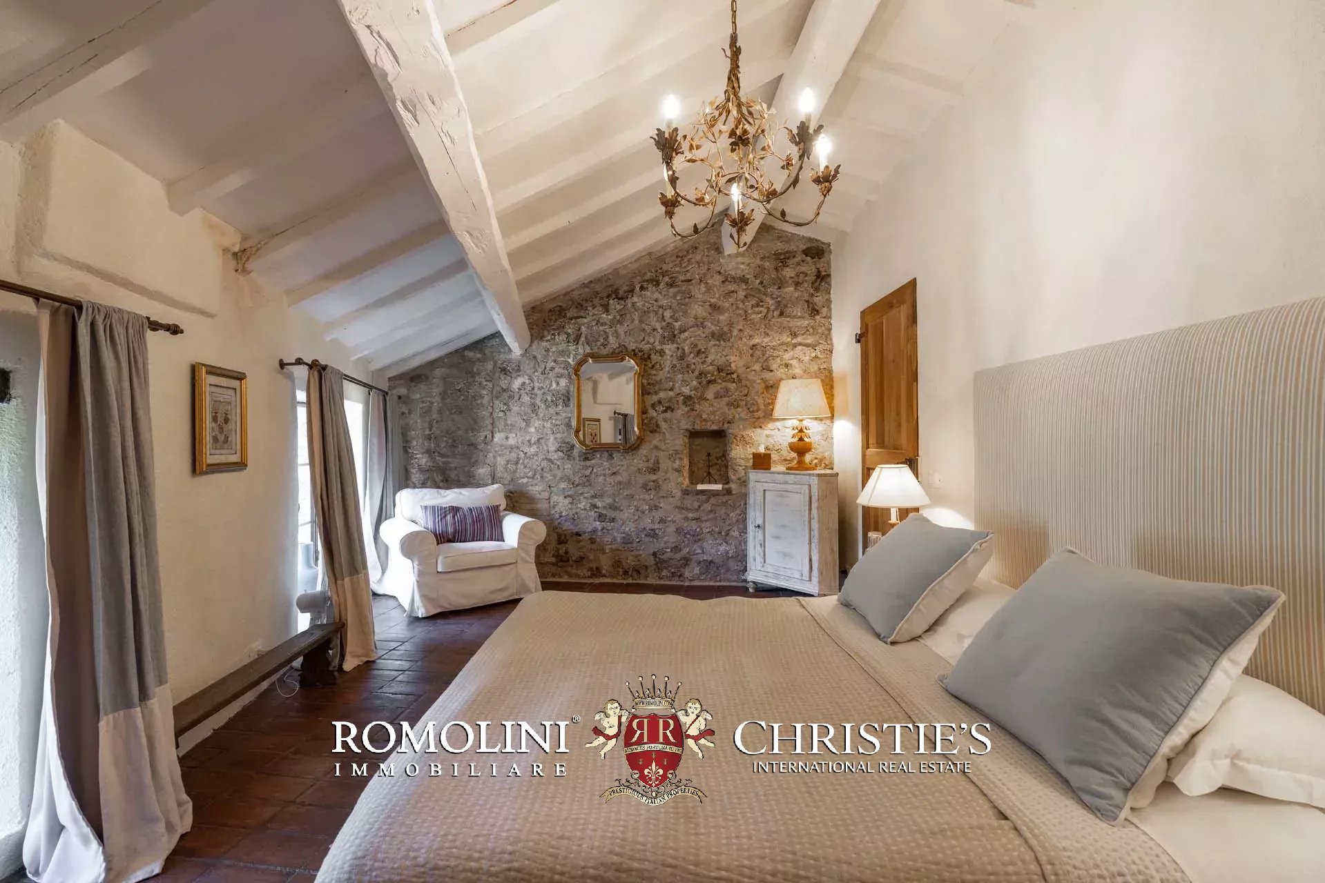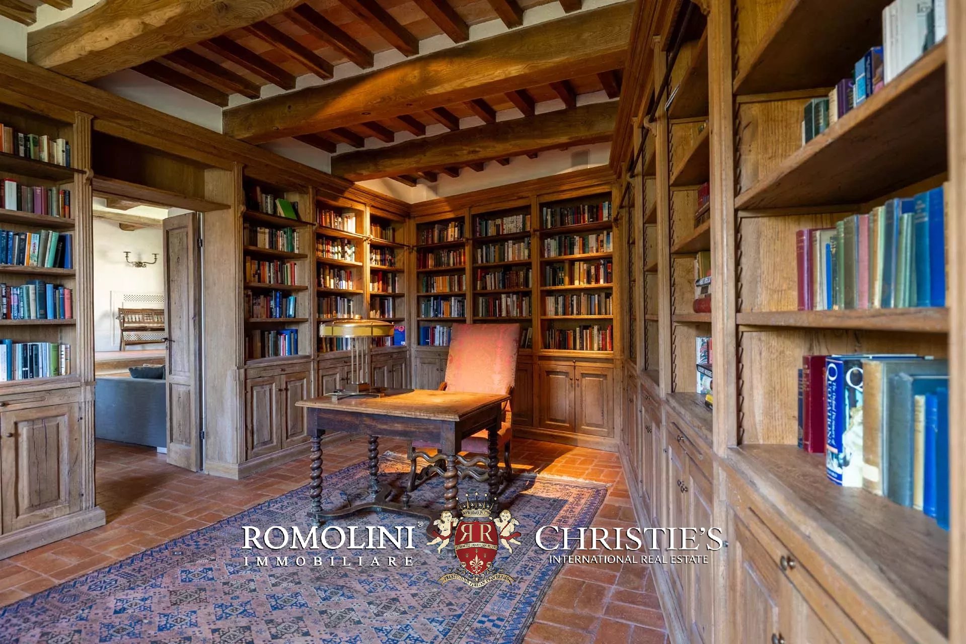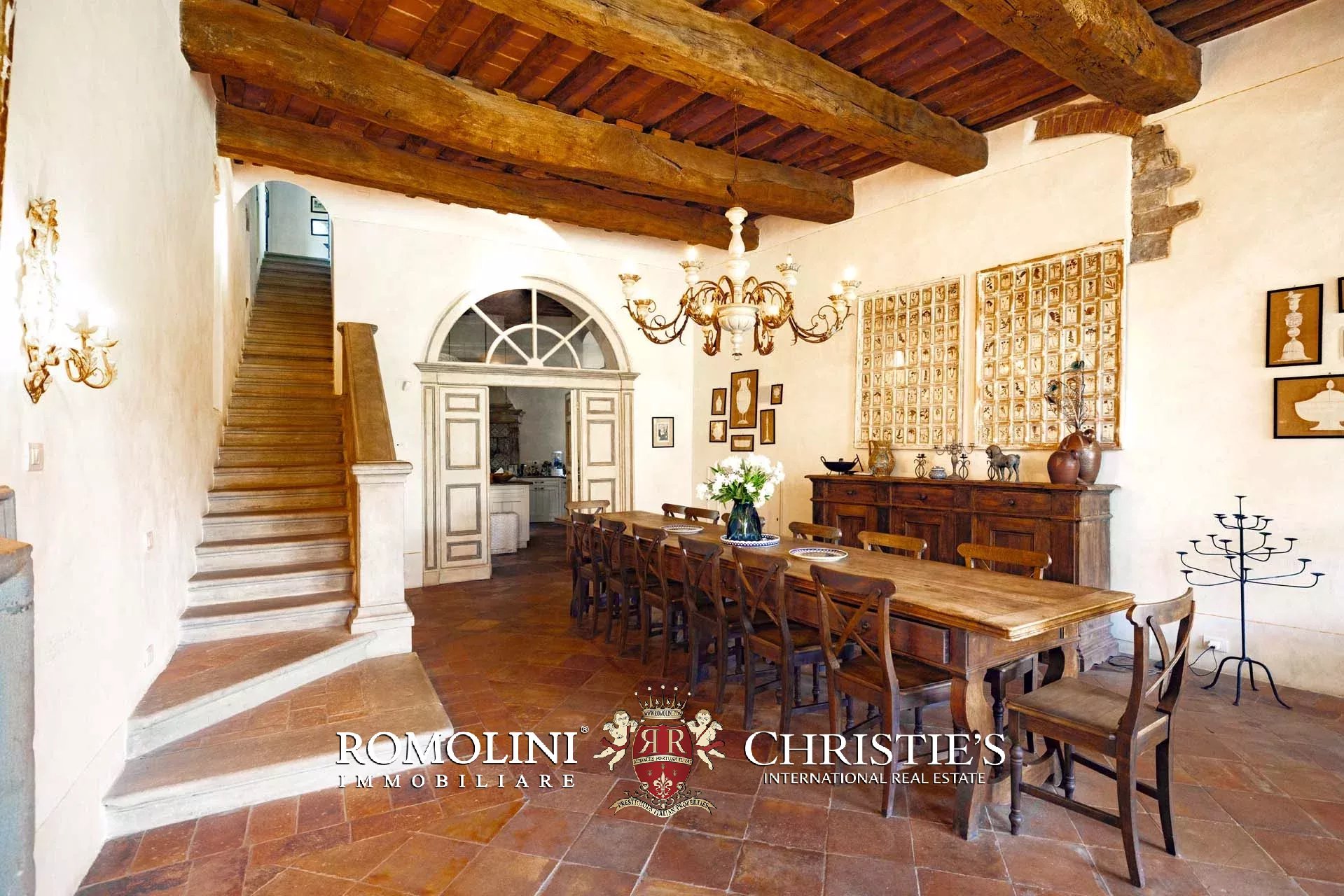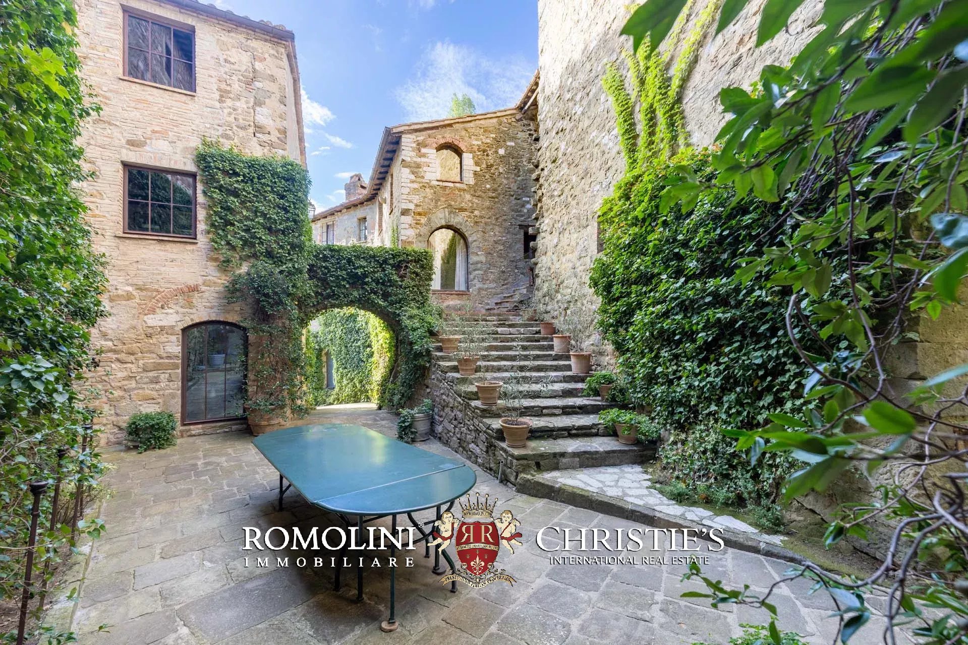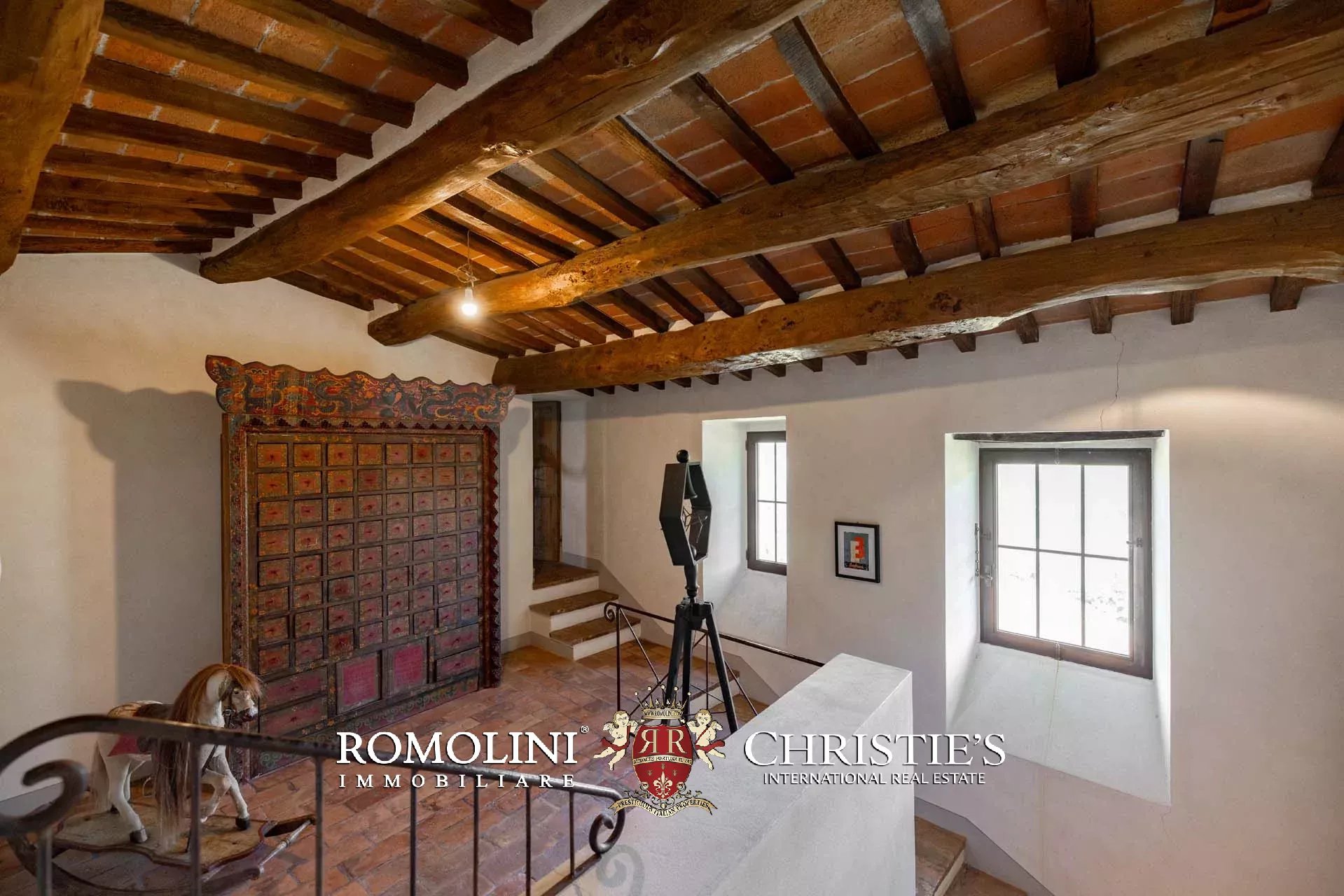 In a very panoramic position in the hills of Umbria, a few kilometers from Perugia, restored medieval castle for sale. The building (over 2,600 m²) boasts a history dating back almost a thousand years and has been finely restored by the current owners, who have turned it into a luxury residence with 21 guest bedrooms. Over 55.0 ha of land surrounds the building and includes a tennis court, infinity pool, and olive trees.