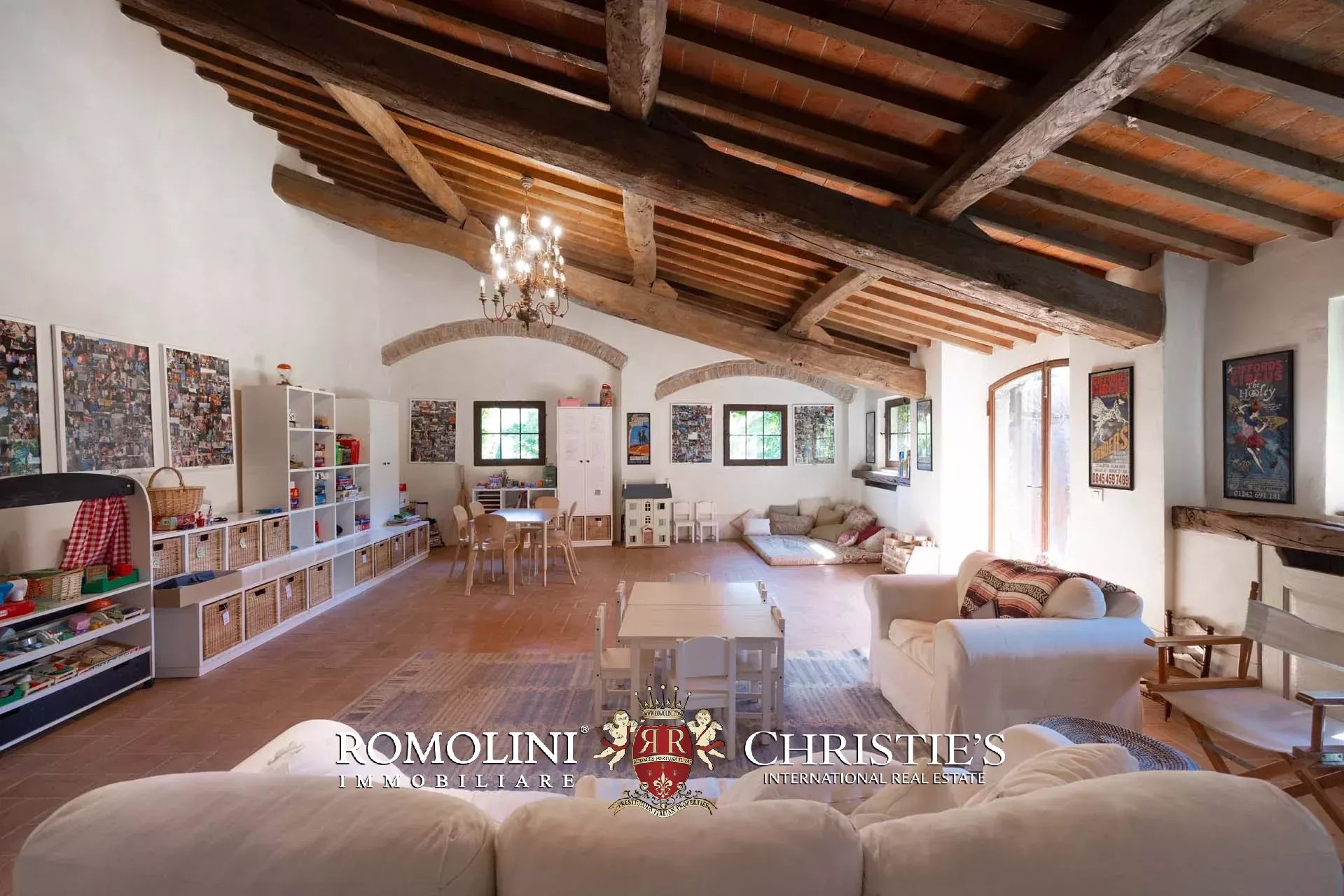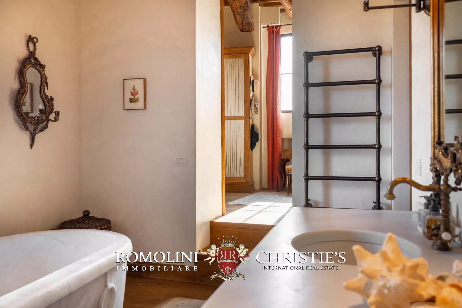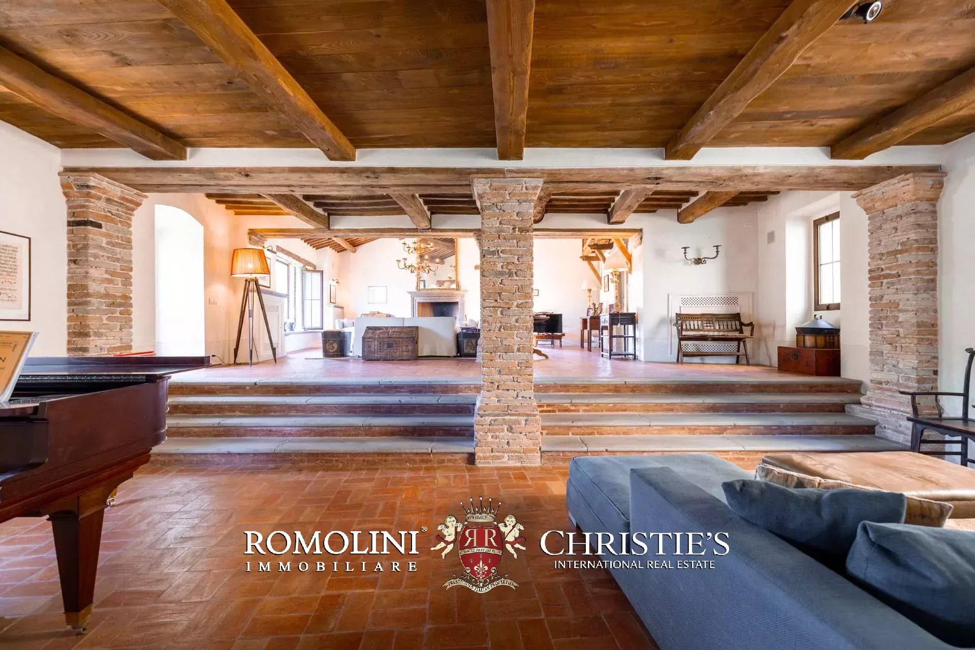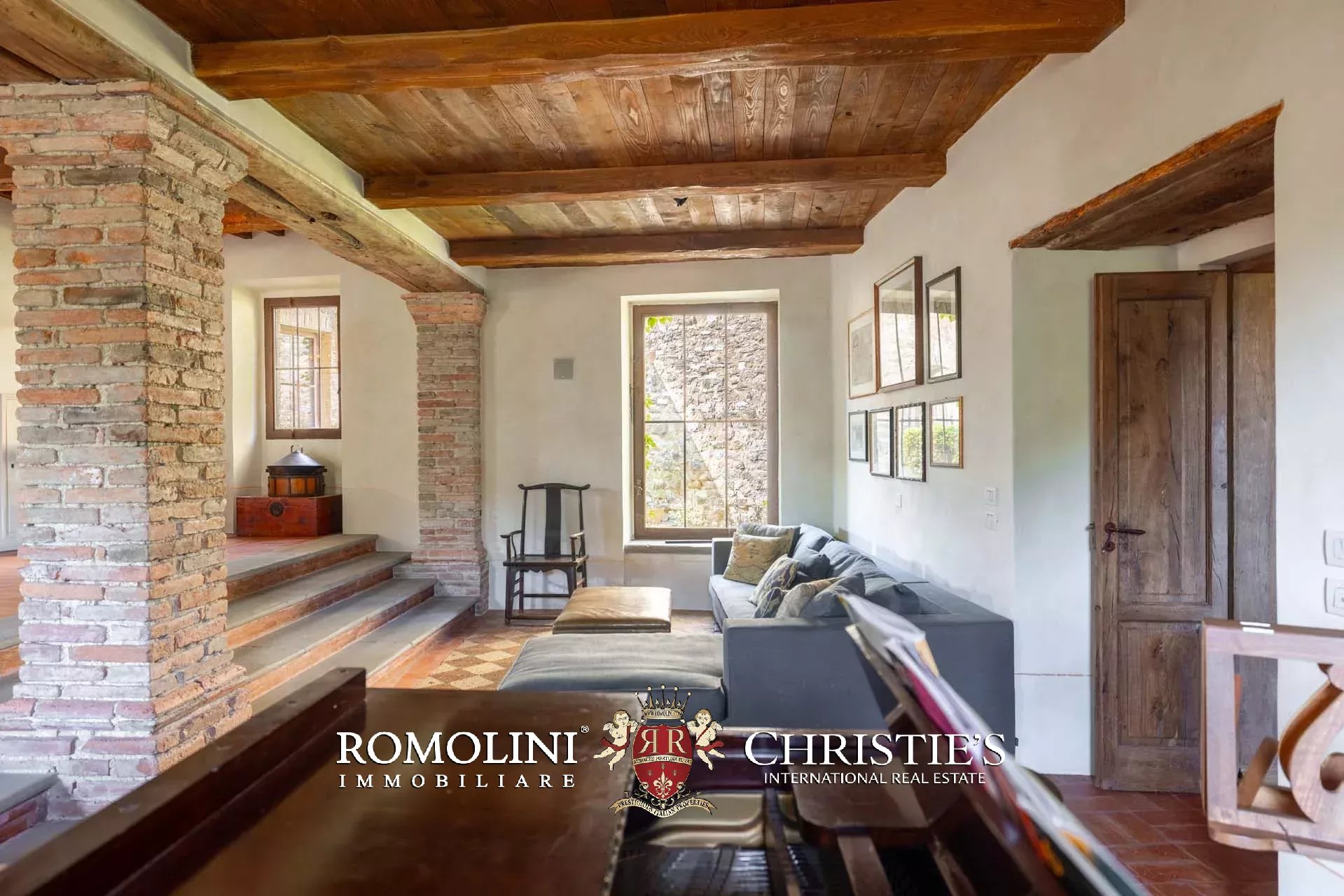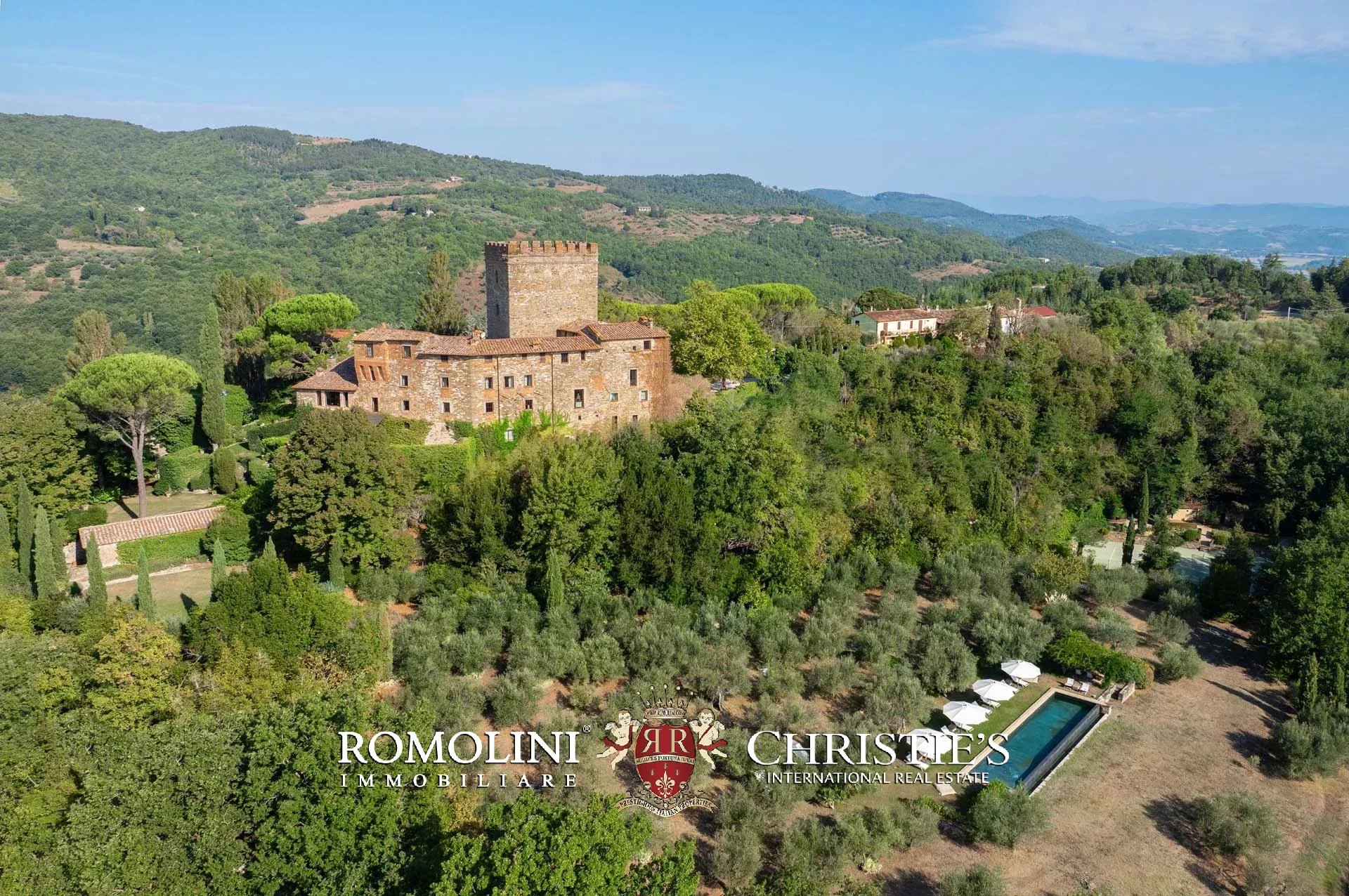 In a very panoramic position in the hills of Umbria, a few kilometers from Perugia, restored medieval castle for sale. The building (over 2,600 m²) boasts a history dating back almost a thousand years and has been finely restored by the current owners, who have turned it into a luxury residence with 21 guest bedrooms. Over 55.0 ha of land surrounds the building and includes a tennis court, infinity pool, and olive trees.