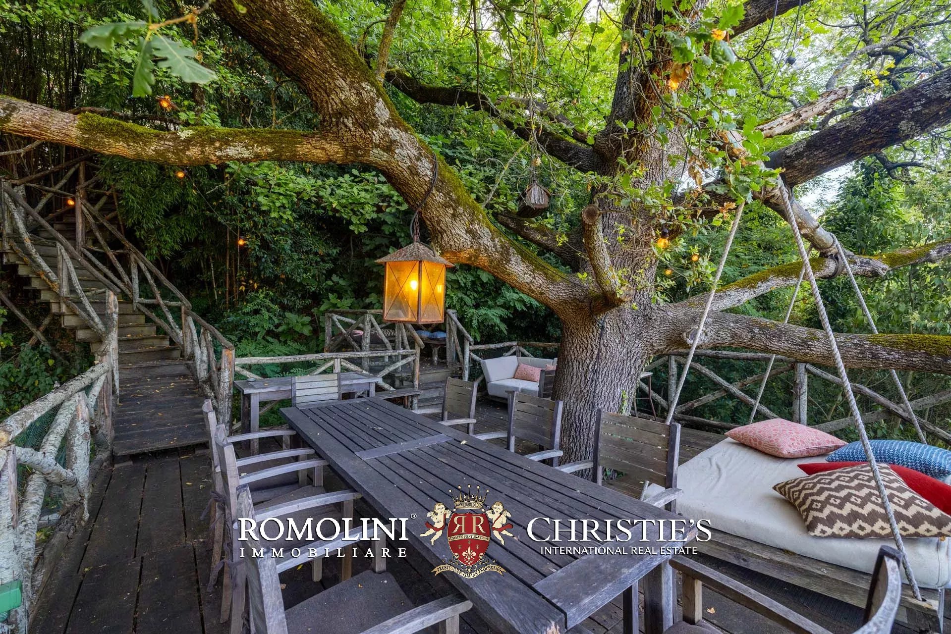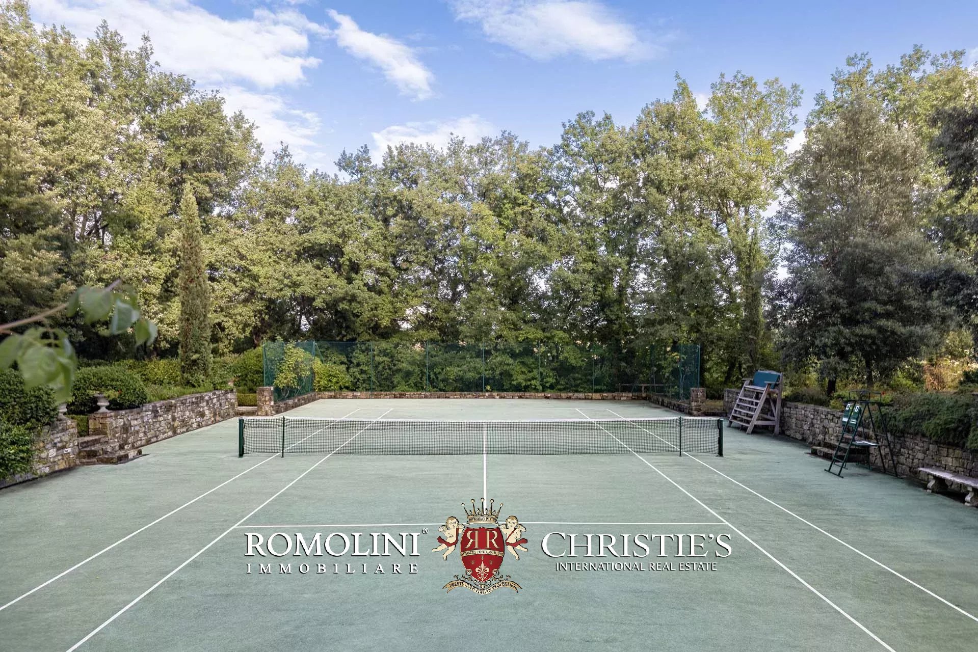 A short distance from the castle, in a secluded and private location at the edge of the park, are a tennis court and 18 × 5 m swimming pool, served by a changing room (36 m² – 387 ft²) divided into two rooms.