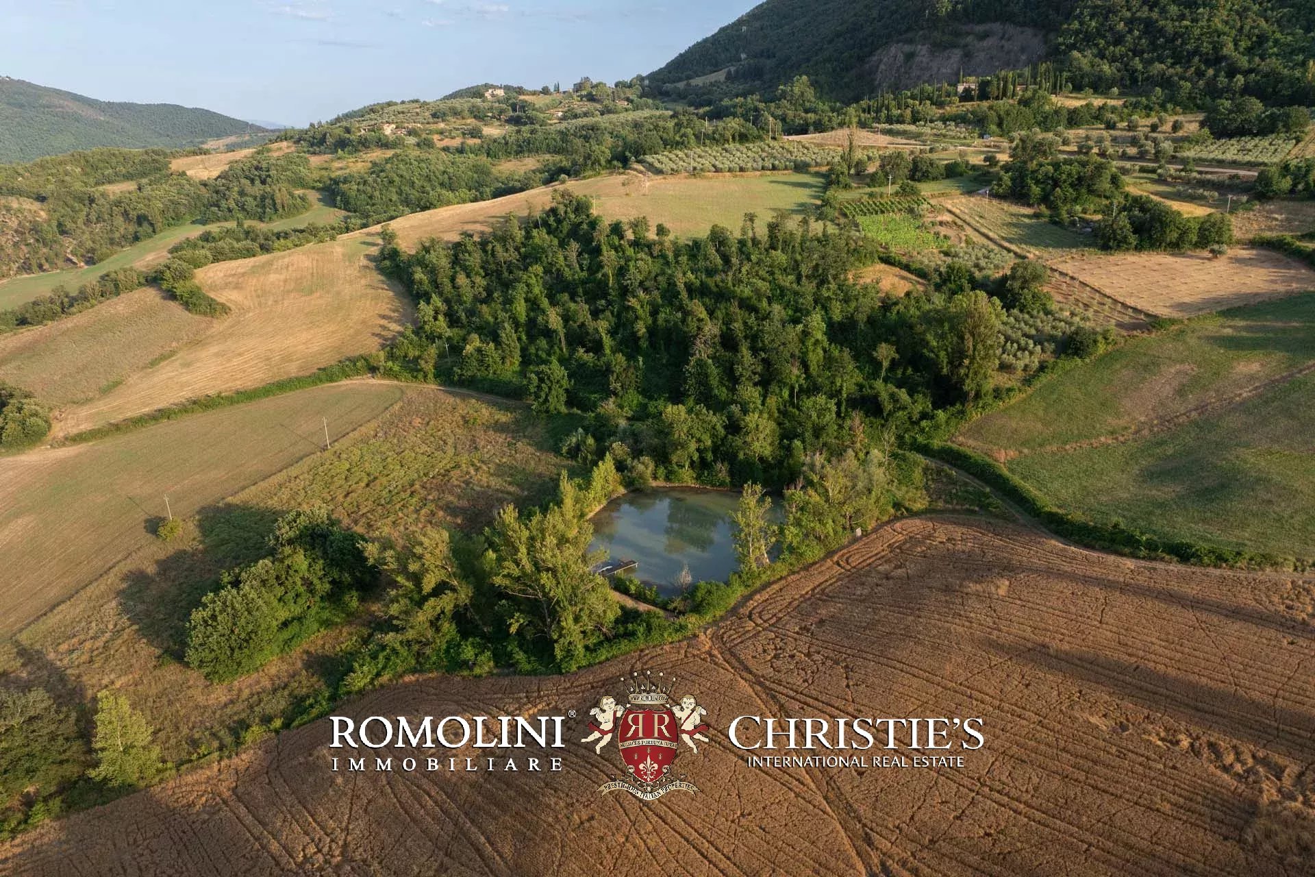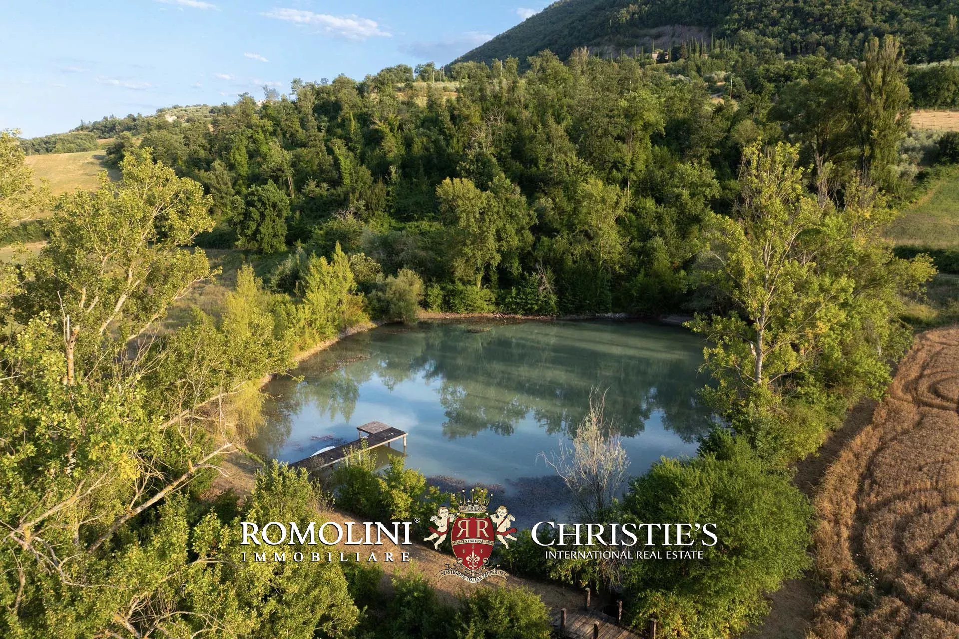 The rest of the property, on the other hand, is mostly covered by woods (27.4 ha) and arable land (25.2 ha partly covered by trees), with a small olive grove (about 1.0 ha) producing an excellent extra virgin olive oil. South of the castle is a private lake with a pier.