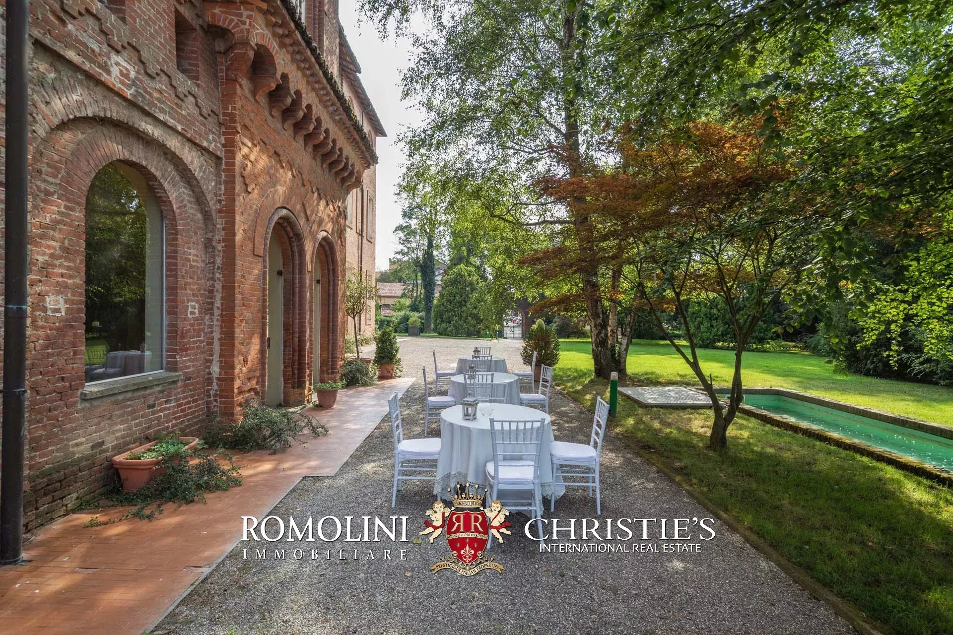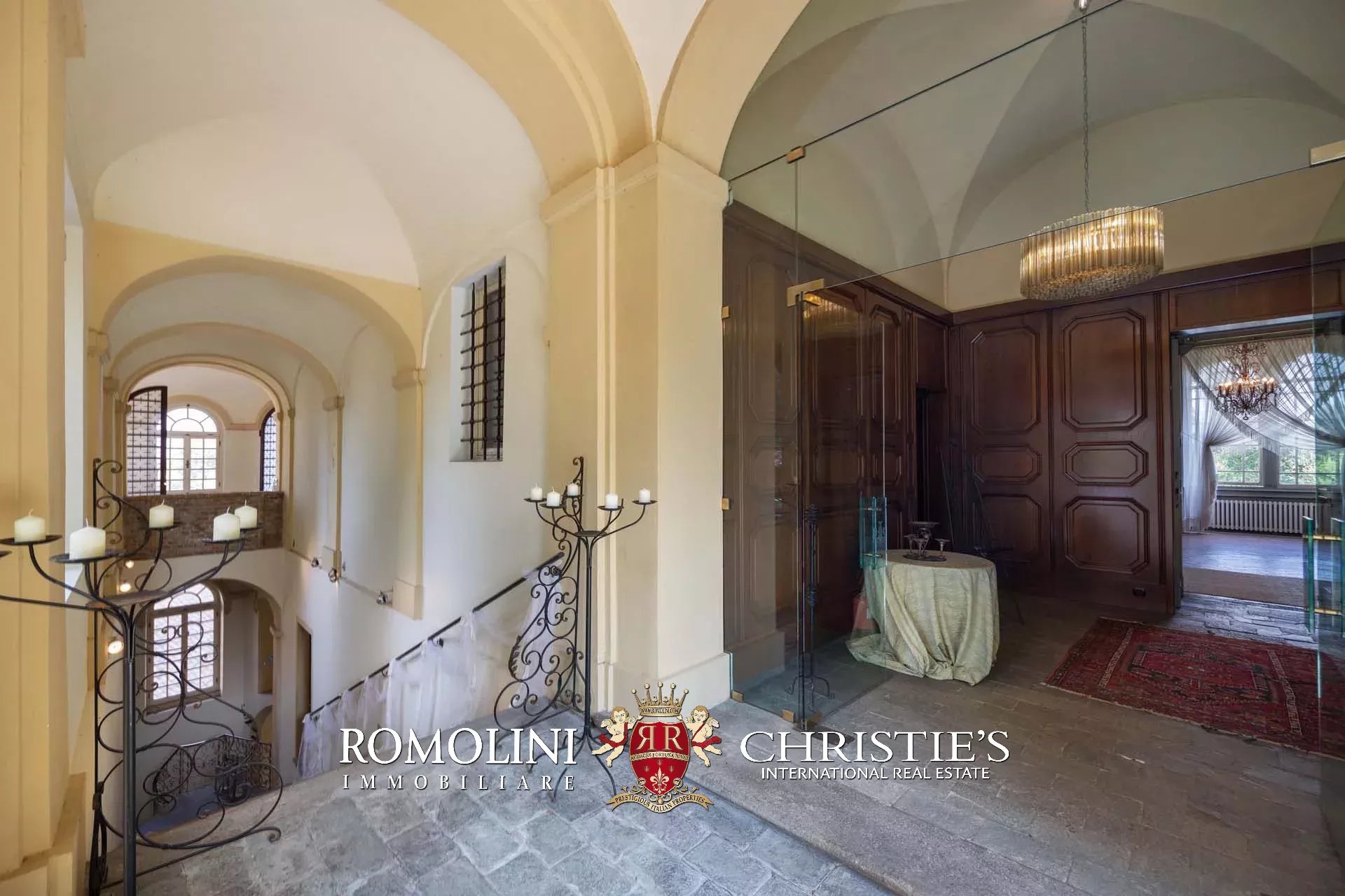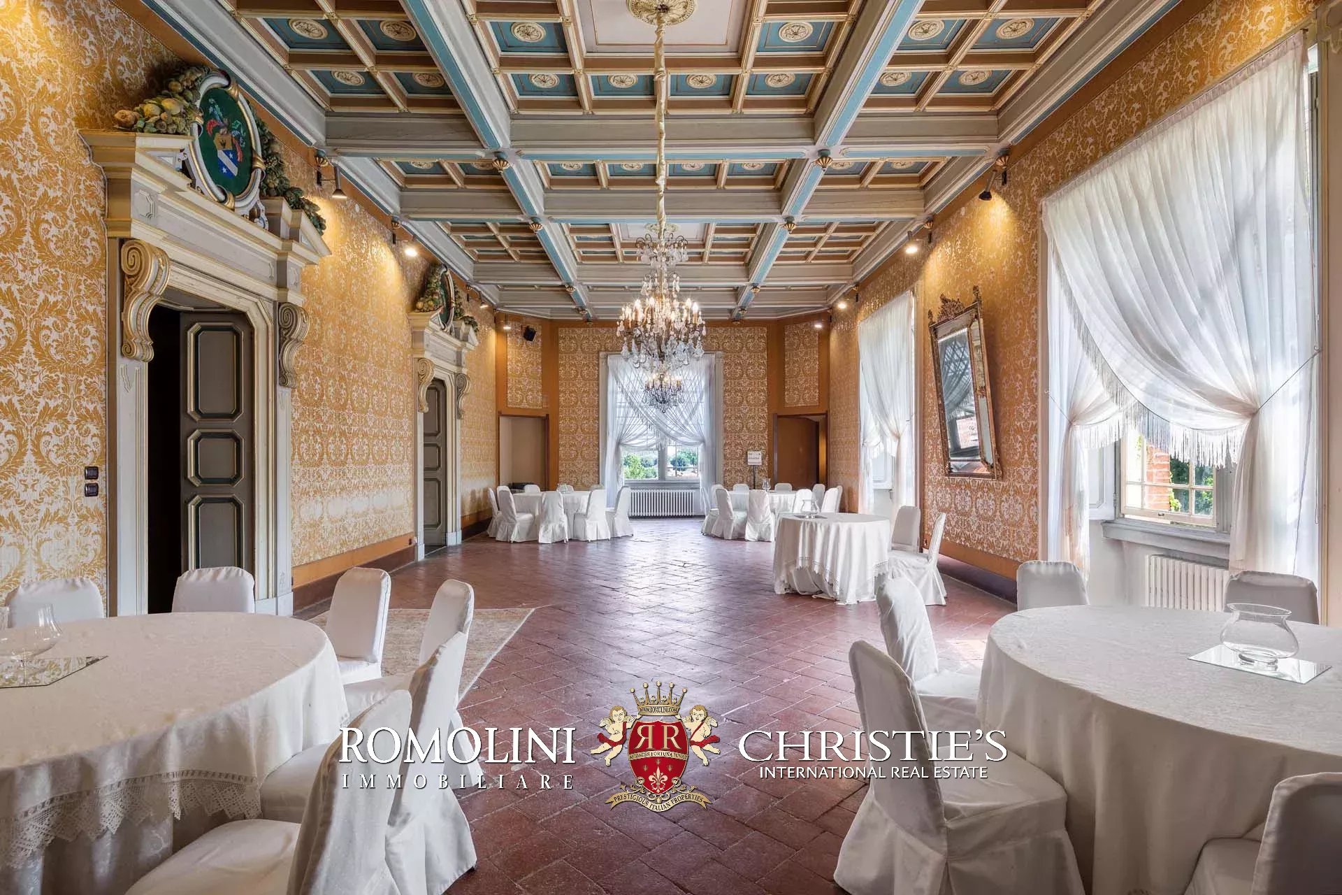 At the borders of Monferrato, in Piedmont, we find this beautiful noble castle with park. The finely restored building, offers a total of 10 bedrooms and 14 bathrooms and is currently a boutique hotel with congress hall and restaurant. The outdoor areas, roughly 6,900 sqm covered for the most part by a well-maintained park, are the ideal frame for al fresco events and ceremonies. In 1908 the building was awarded the certification of National monument for its great historic and artistic value.