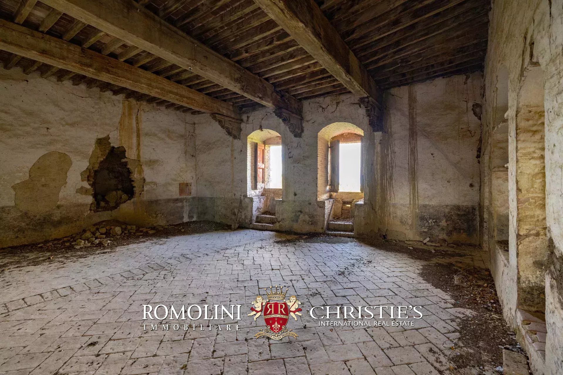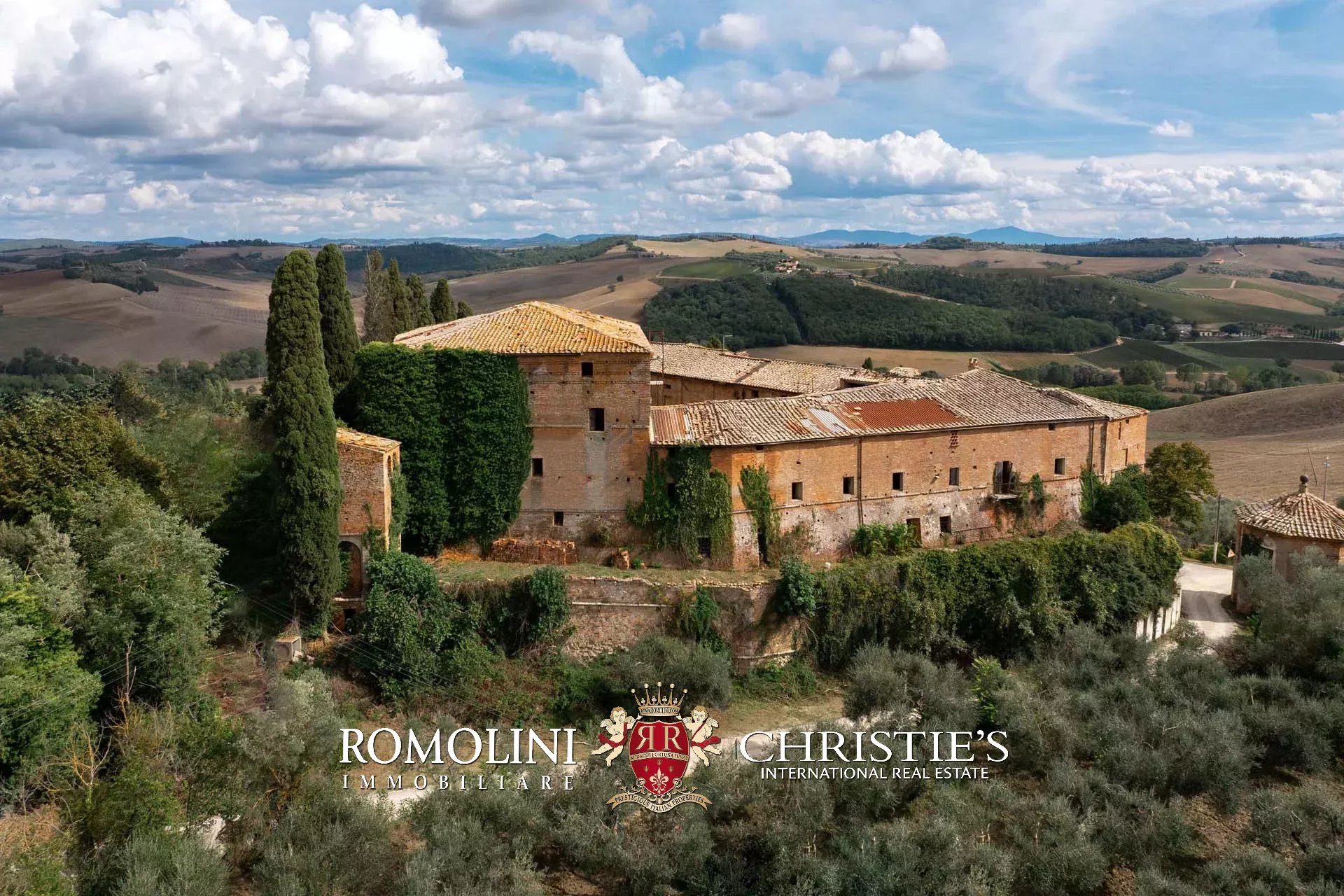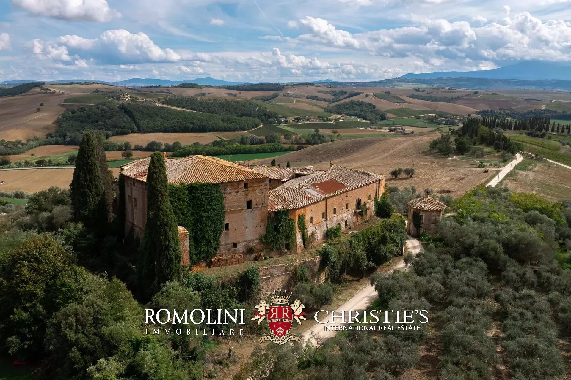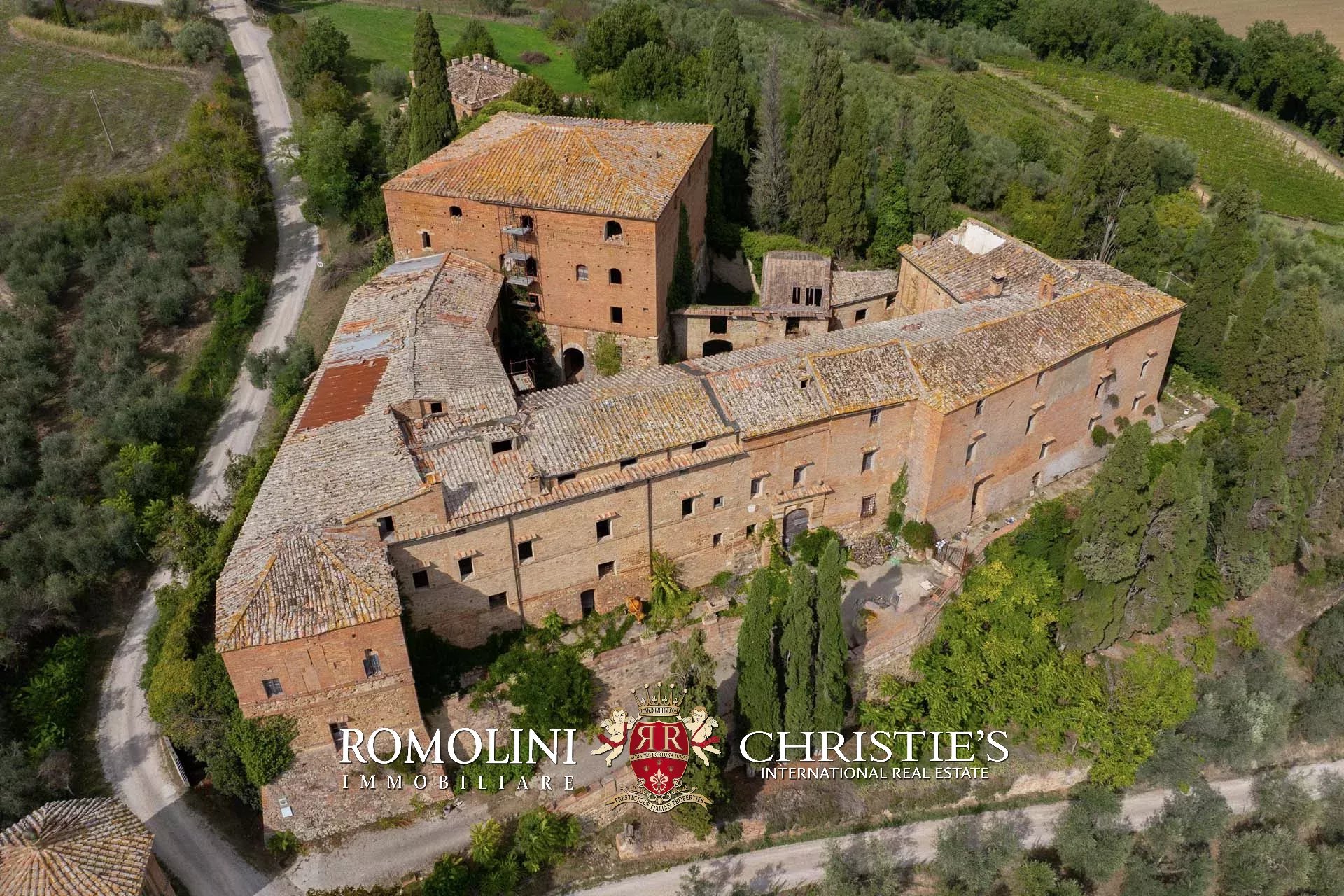 In the heart of Valdorcia, in a panoramic position not far from the medieval town of Montalcino, imposing 15th-century castle to be renovated for sale. The property (over 3,600 sqm) is currently unused but has great potential for development both in the residential sense (luxury private home) and in the commercial sense for the creation of a luxury boutique hotel (up to 25 bedrooms with bathrooms). A private chapel is included in the complex.
