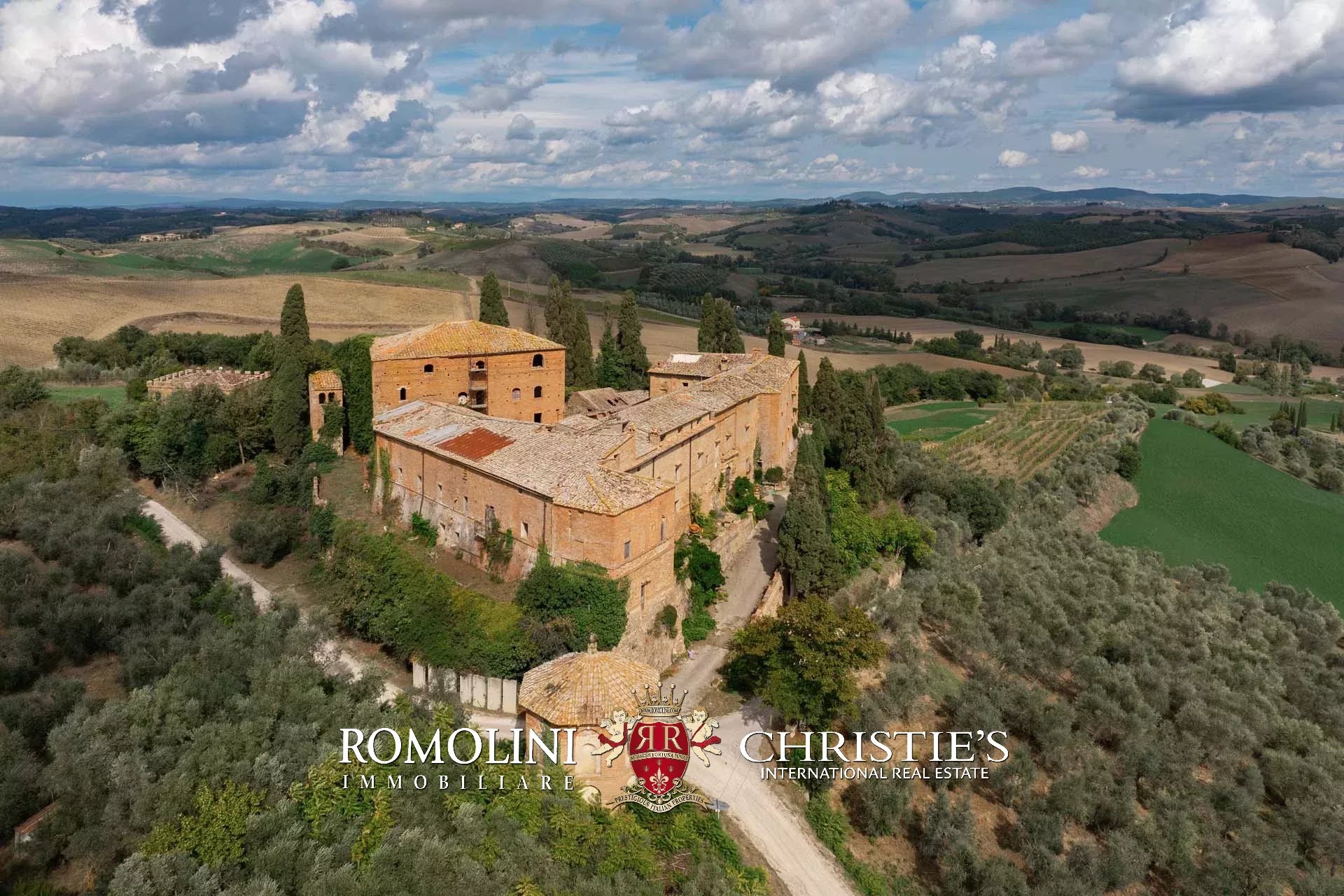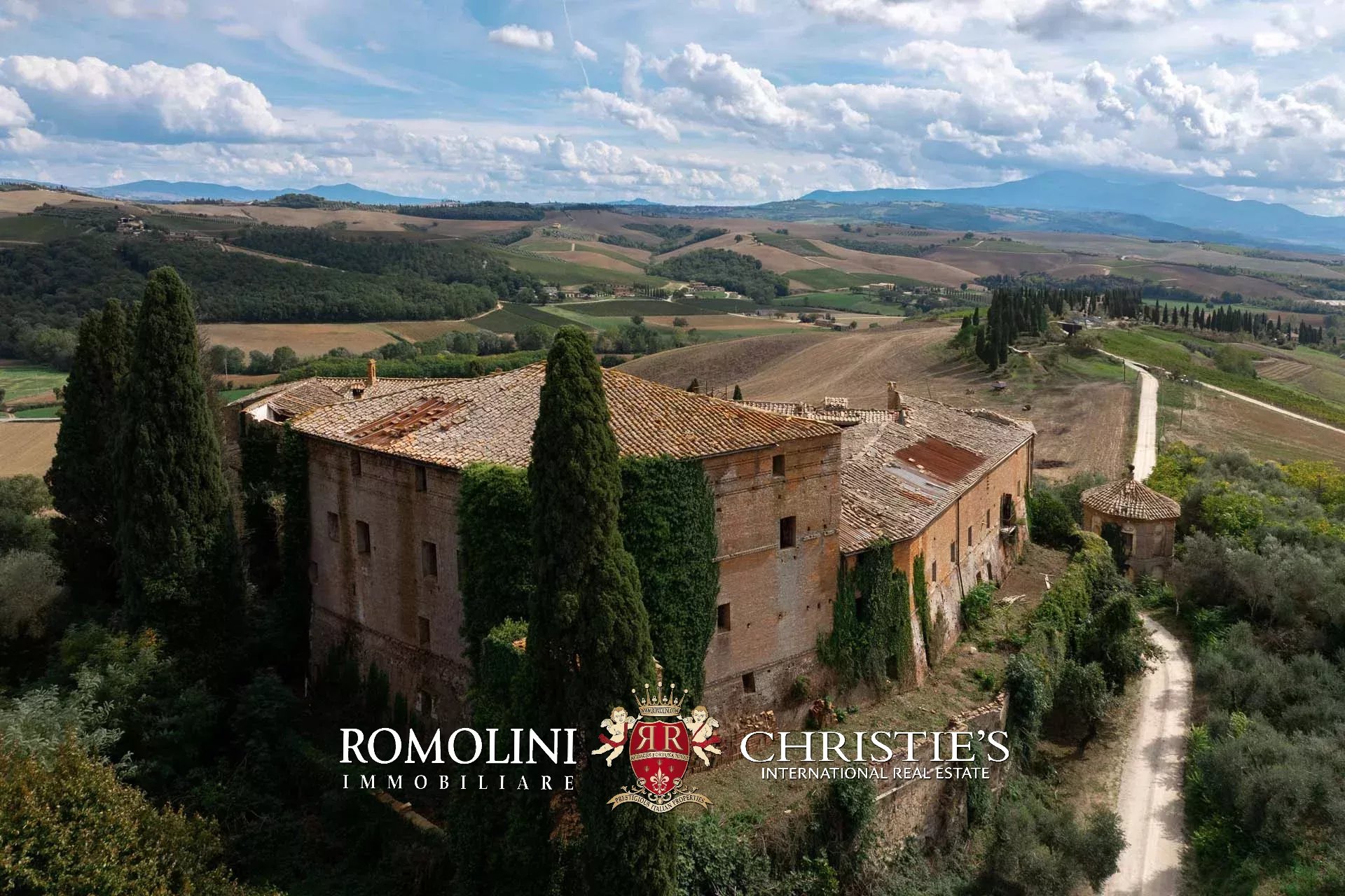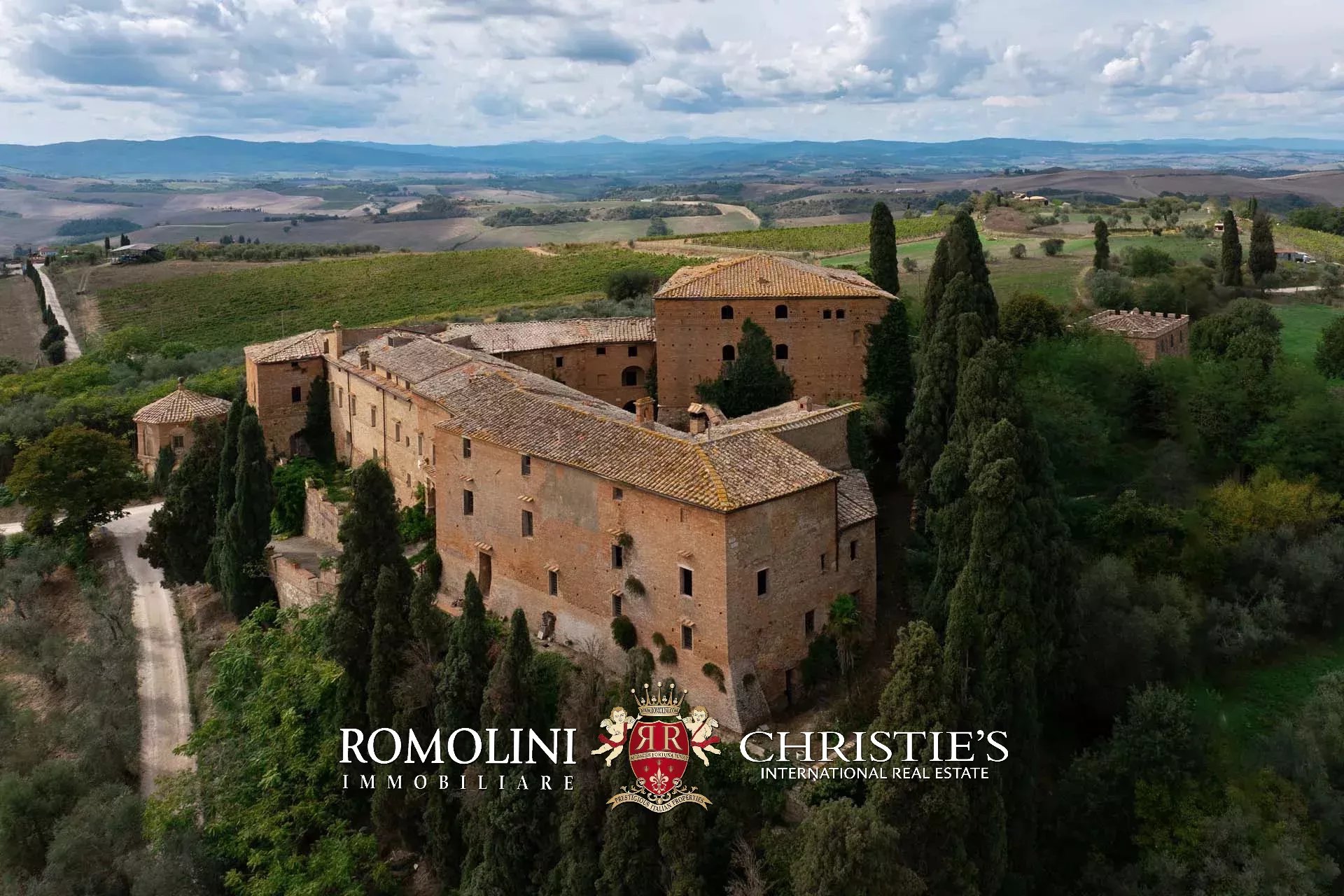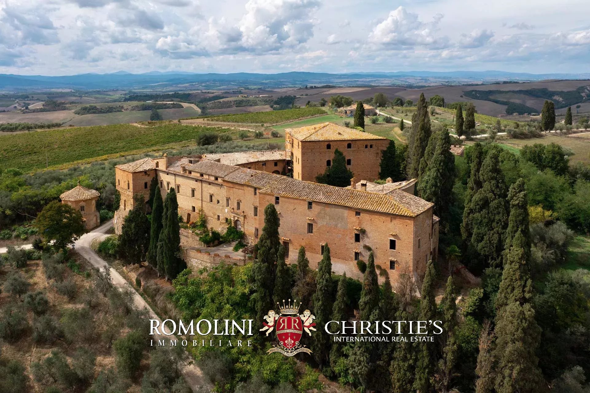 In the heart of Valdorcia, in a panoramic position not far from the medieval town of Montalcino, imposing 15th-century castle to be renovated for sale. The property (over 3,600 sqm) is currently unused but has great potential for development both in the residential sense (luxury private home) and in the commercial sense for the creation of a luxury boutique hotel (up to 25 bedrooms with bathrooms). A private chapel is included in the complex.