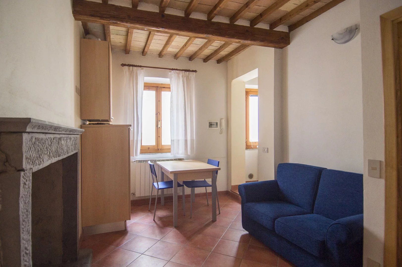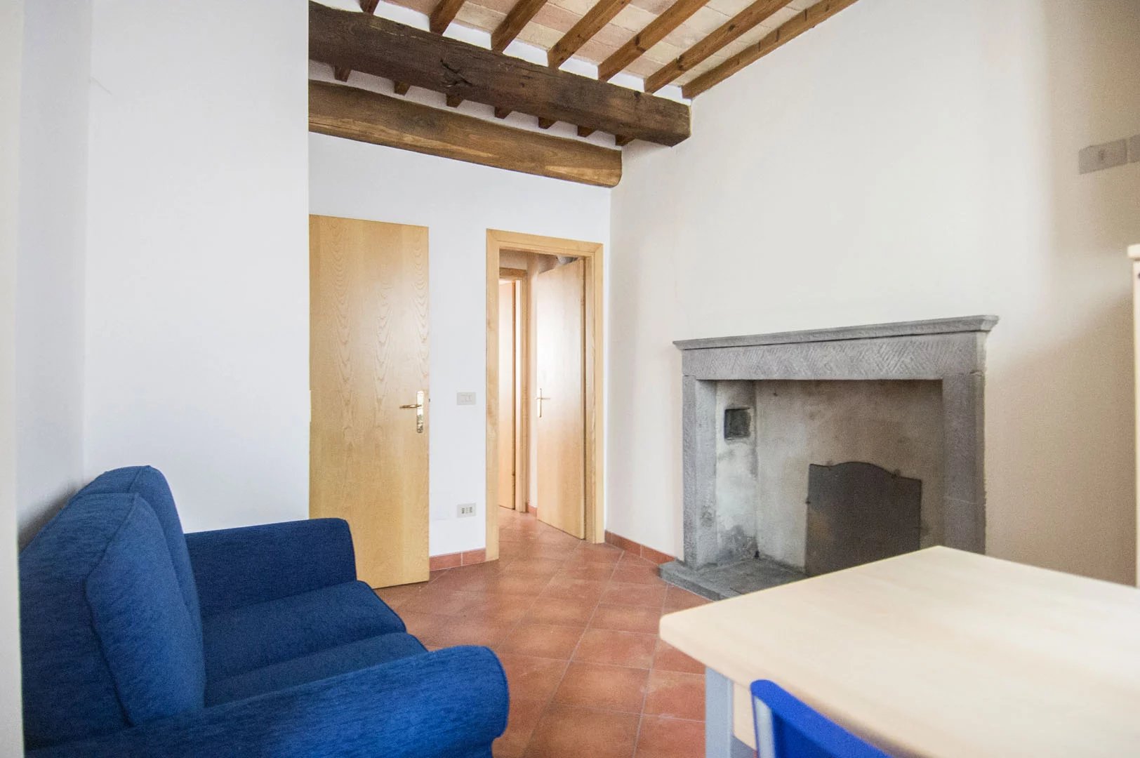 The building was recently restored and boasts several traits shared with other buildings of the historical centers of Tuscany: stone steps, terracotta floors, stone fireplaces and wooden beams.