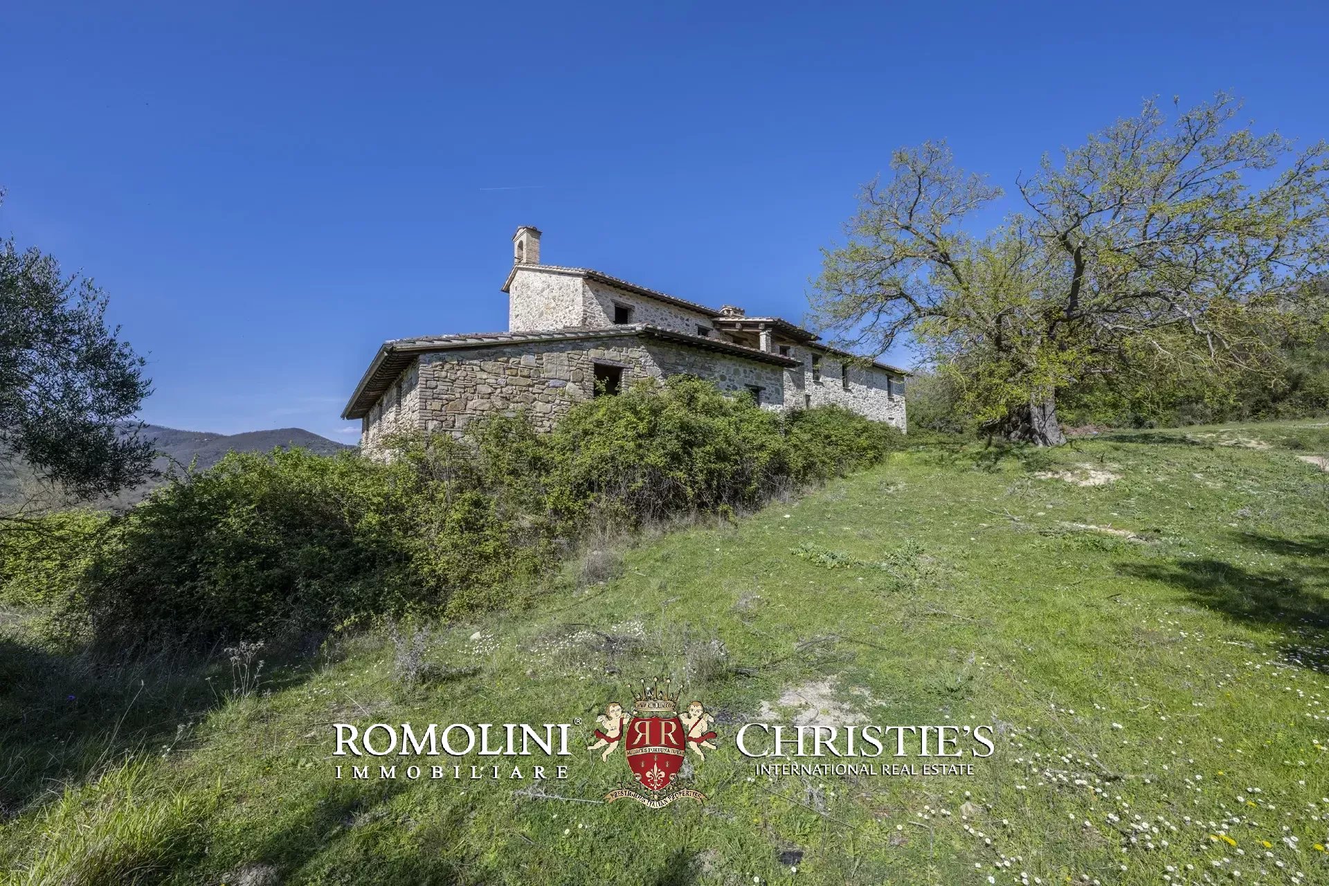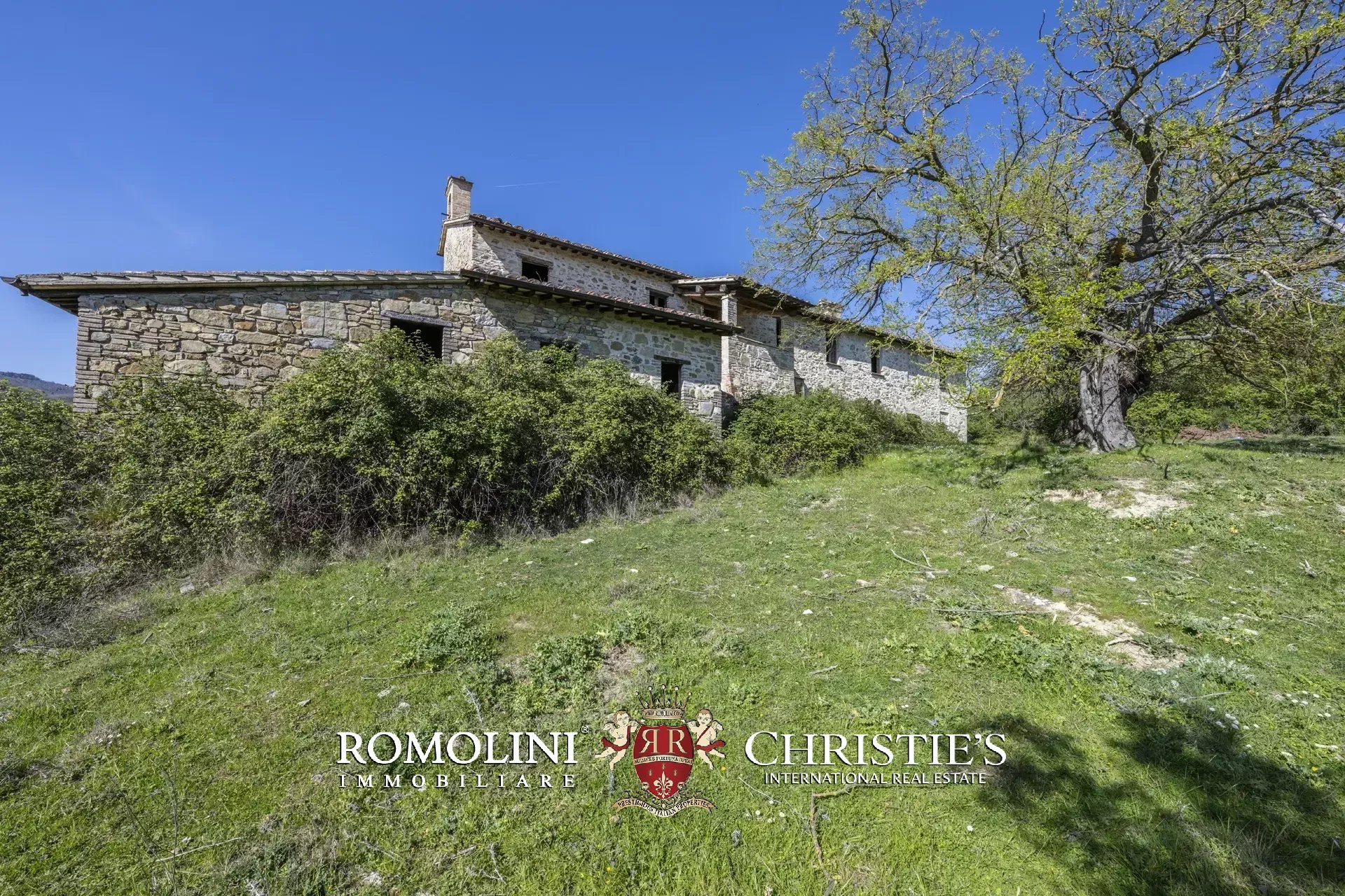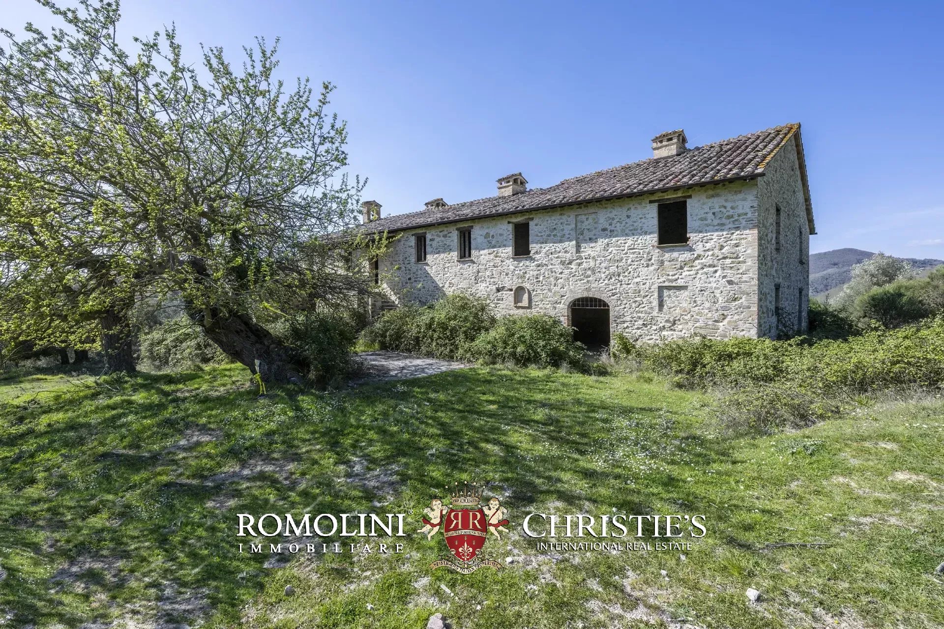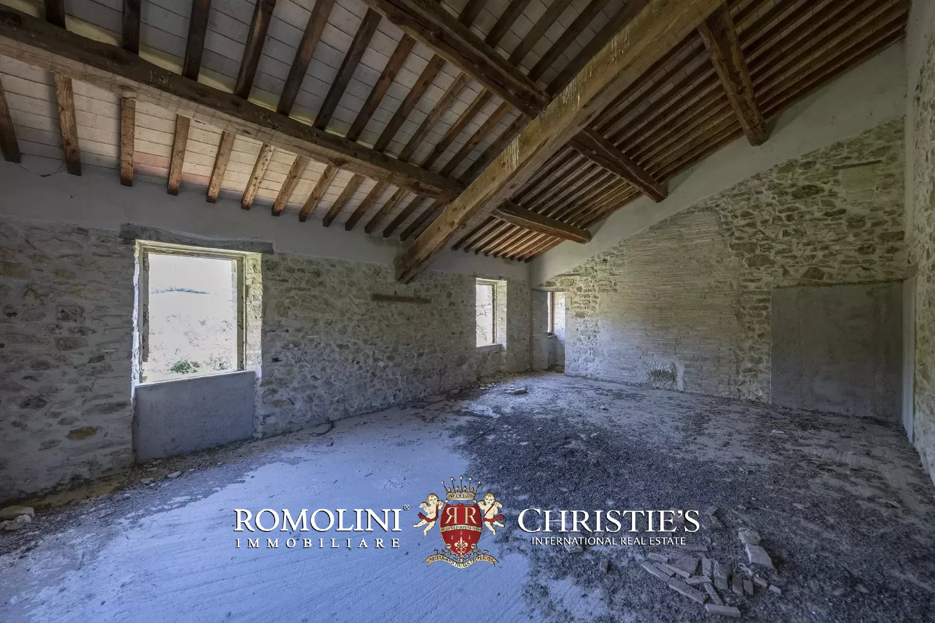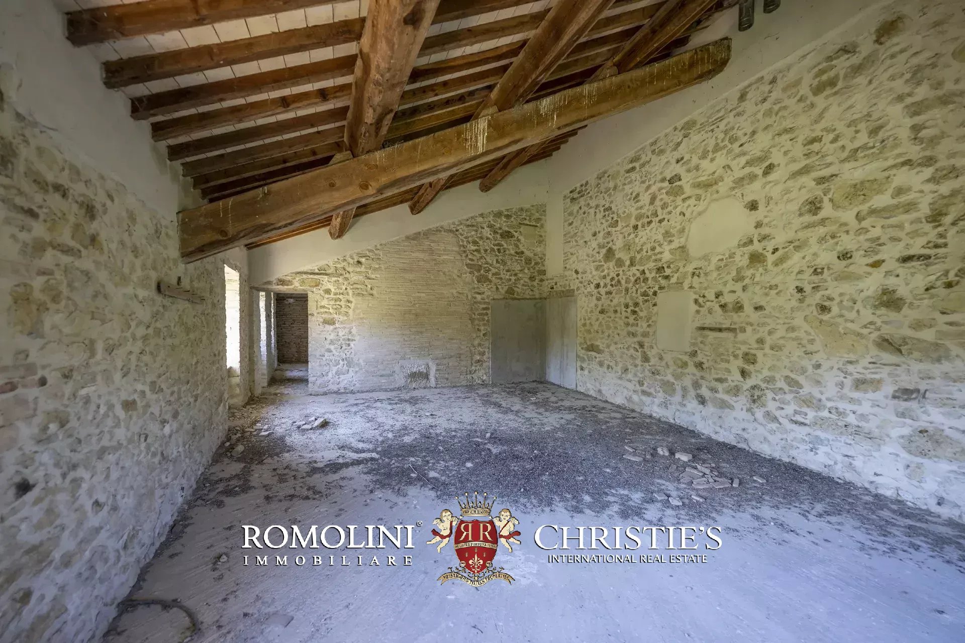 On the hills of Magione, not far from Lake Trasimeno in Umbria, farmhouse to be renovated with 49.6 hectares of land for sale. The building (over 600 m²) is structurally solid, with roofs recently redone and walls in excellent condition. The interiors, however, require complete renovation, which offers broad flexibility to the new owners. The proposed project involves dividing the farmhouse into nine independent apartments, designed for guest accommodations and transforming the house into a rental property.