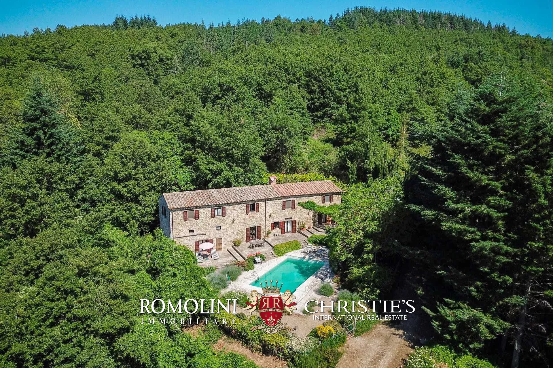 Set on a fantastic spot, on a quiet and isolated position, with breathtaking views over the rolling hills of the upper Tiber Valley, a beautiful old stone farmhouse with surrounding garden. The house is set on two floors and comprised as follows: