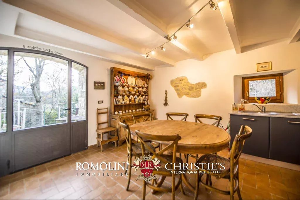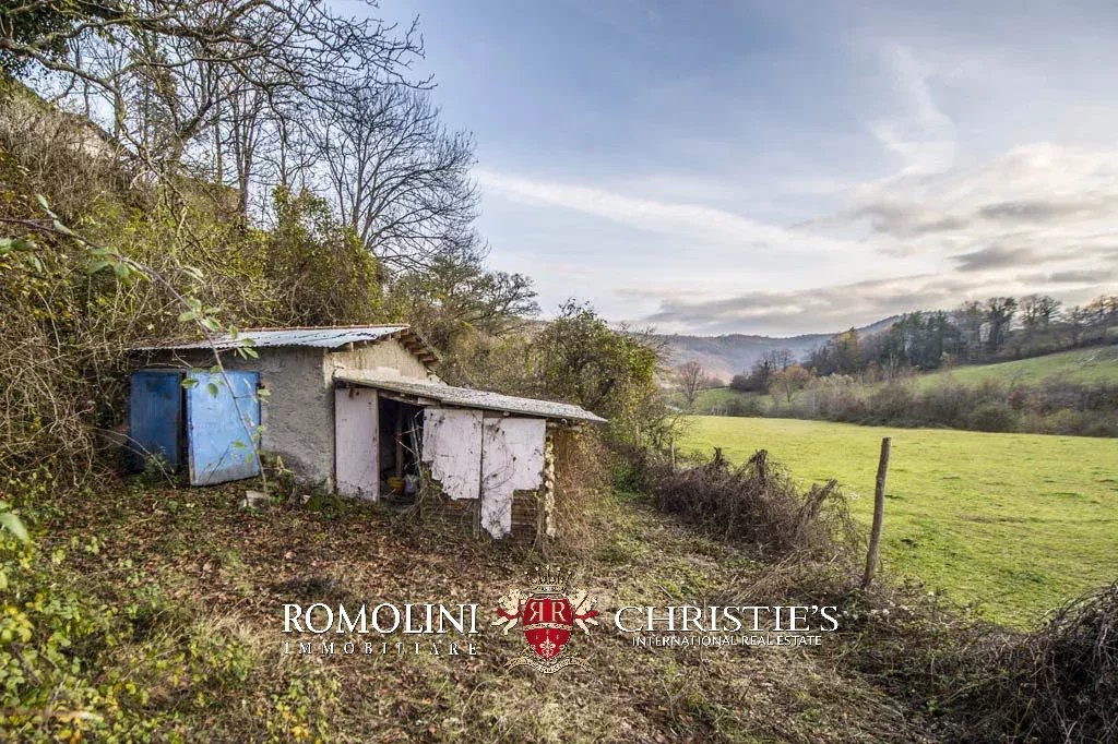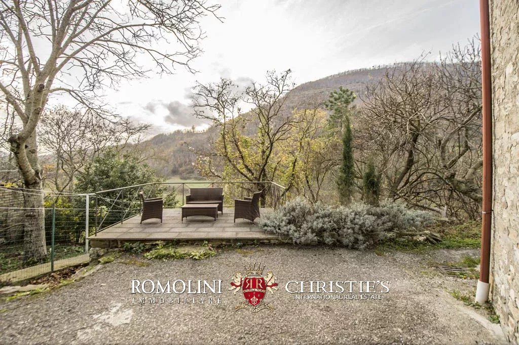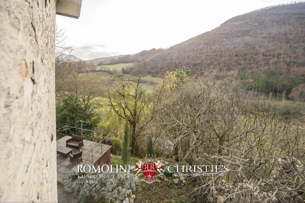 In Tuscany, only a few km from the centre of Caprese Michelangelo, on a hilly and panoramic position, end-of-terrace stone country house with panoramic terrace, surrounding land and wood shed. Furniture is included in the selling price.