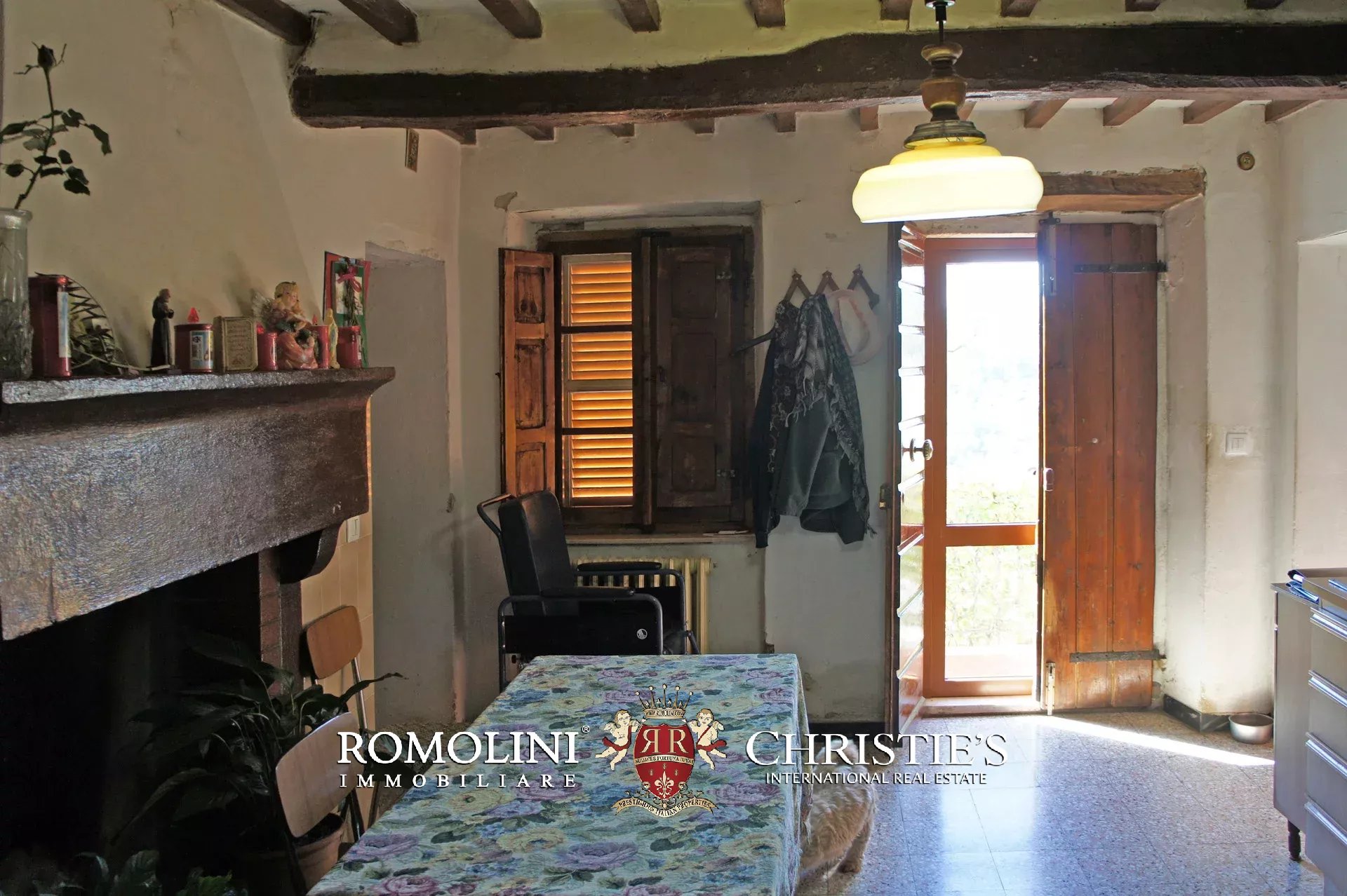 Built of authentic Tuscan stone, the farmhouse features exposed beams that enhance its rustic charm. Two fireplaces, perfect for heating the rooms, create a cozy atmosphere.
