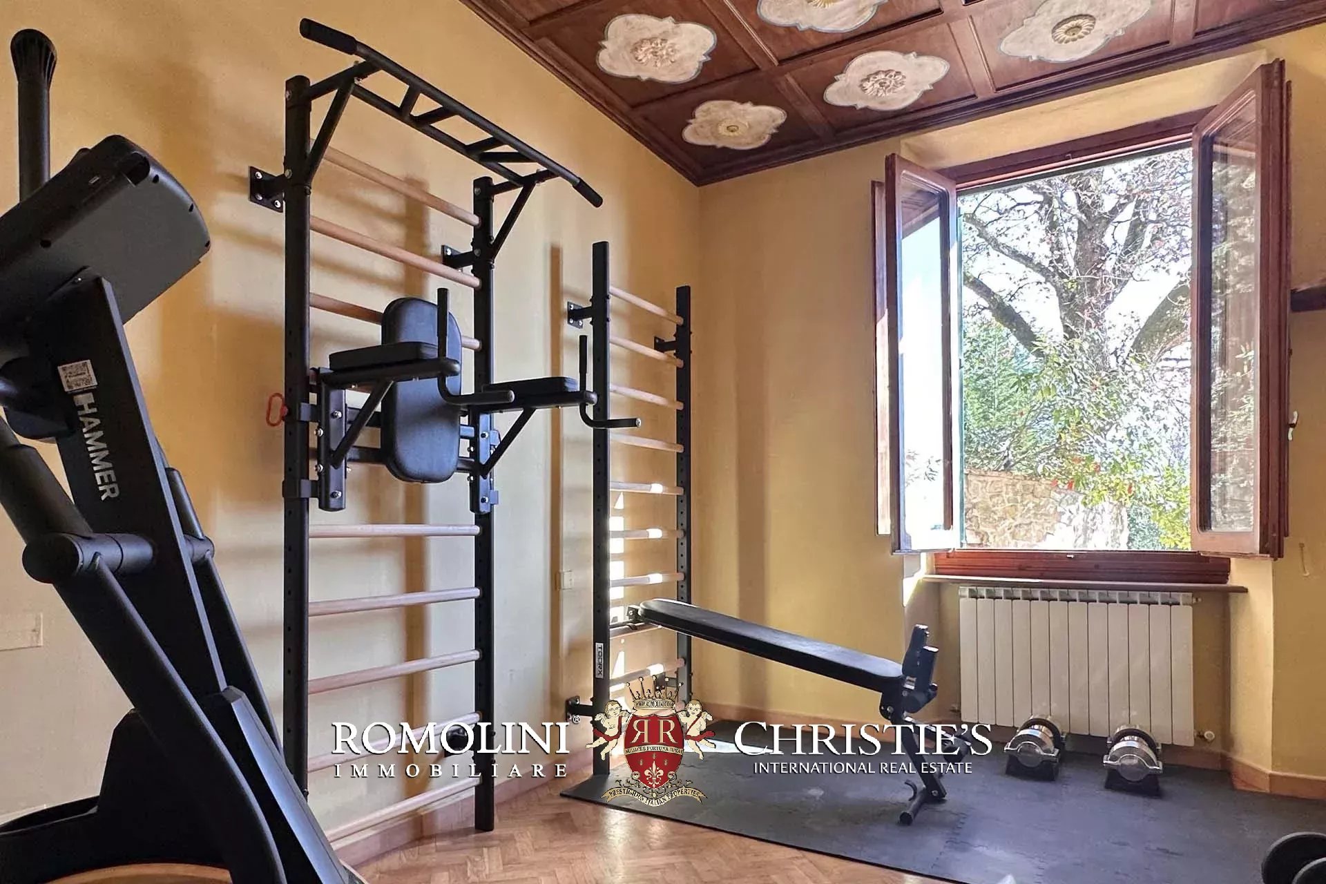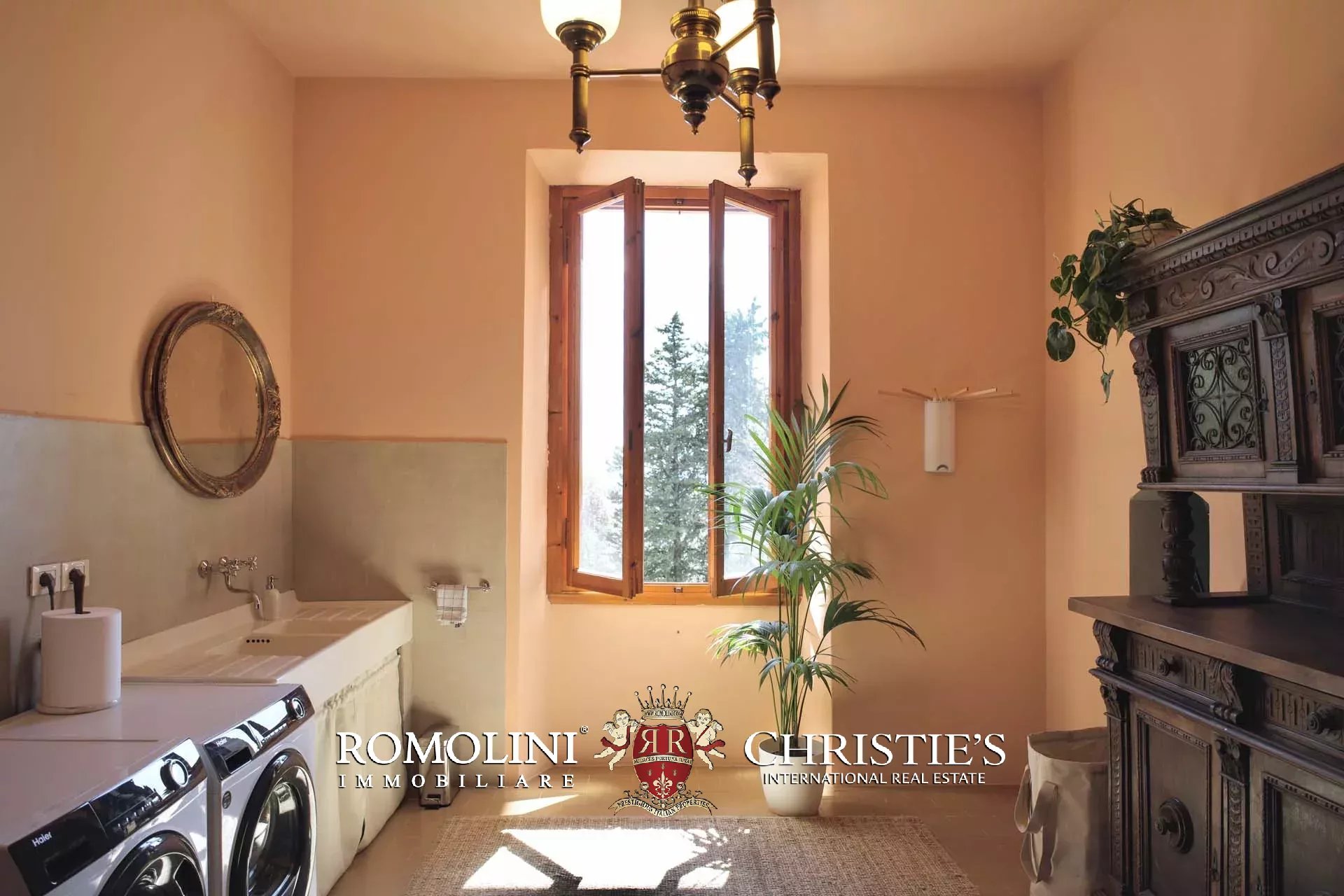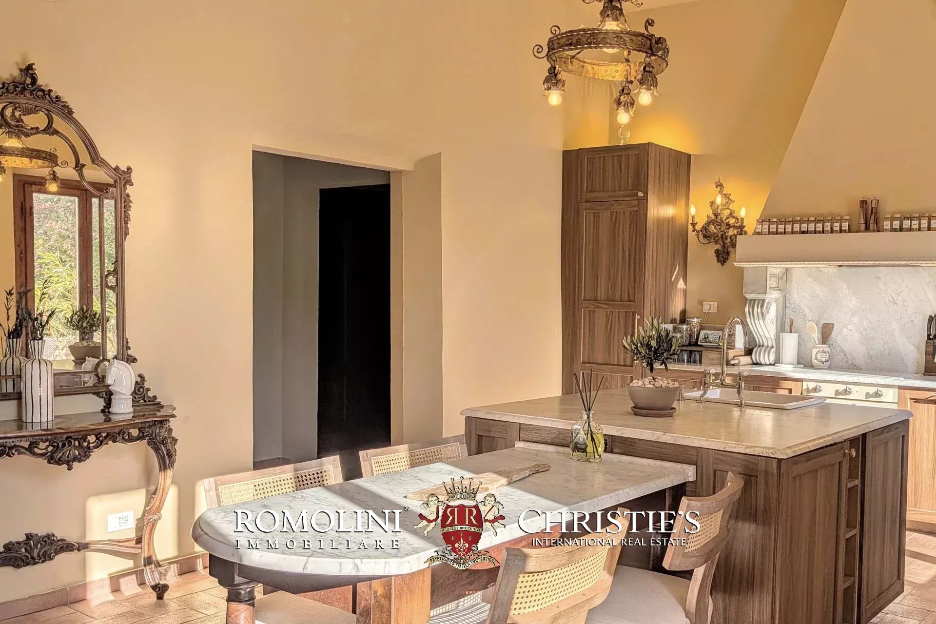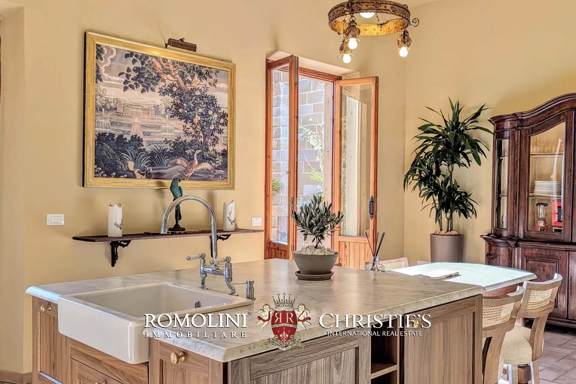 The restoration of the villa, completed in early 2026, has been expertly balanced between the finest in contemporary Italian interior design, along with maintaining the antique characteristics that make this particular villa so unique. It offers the latest smart home tech, with WiFi controlled security, AC throughout, and a smart lock system. The property receives its running water from a private water source on the land, and the villa is heated and cooled with a fully electric system, meaning that the possible addition of solar panels would make the estate entirely self-sufficient.