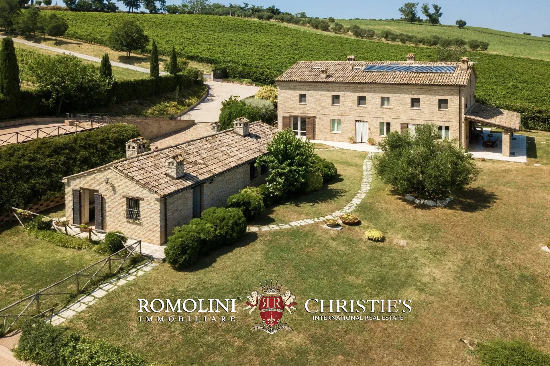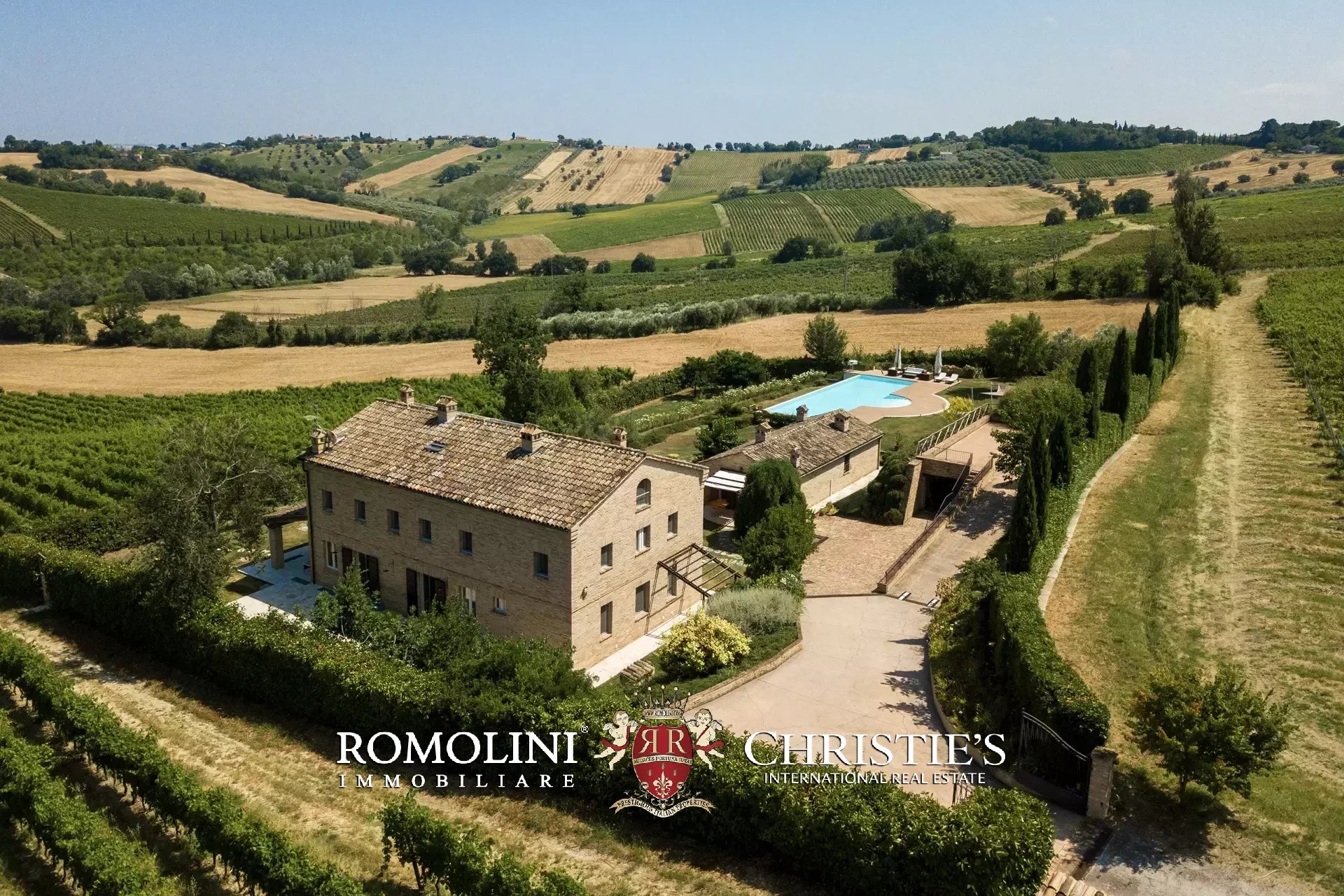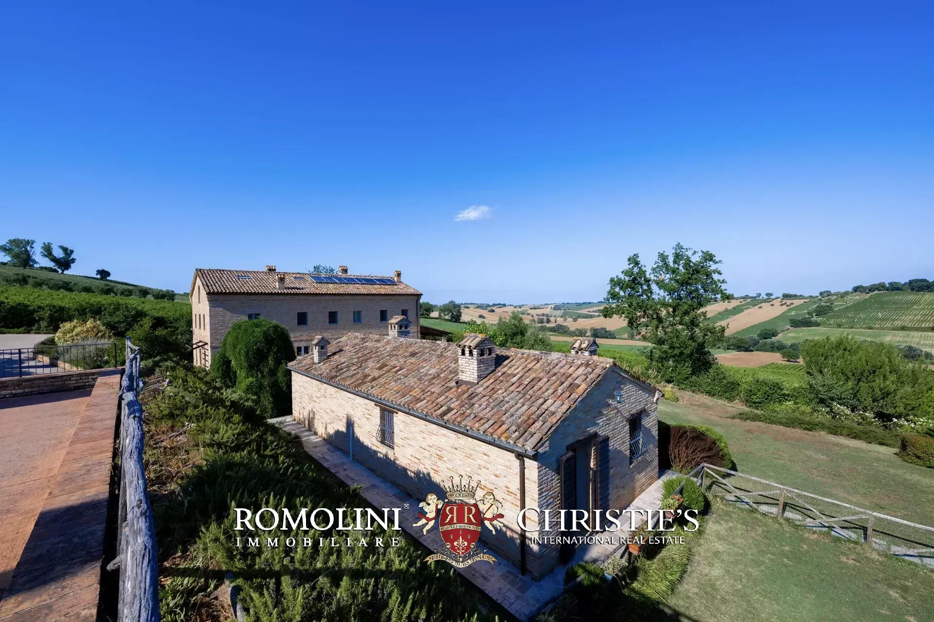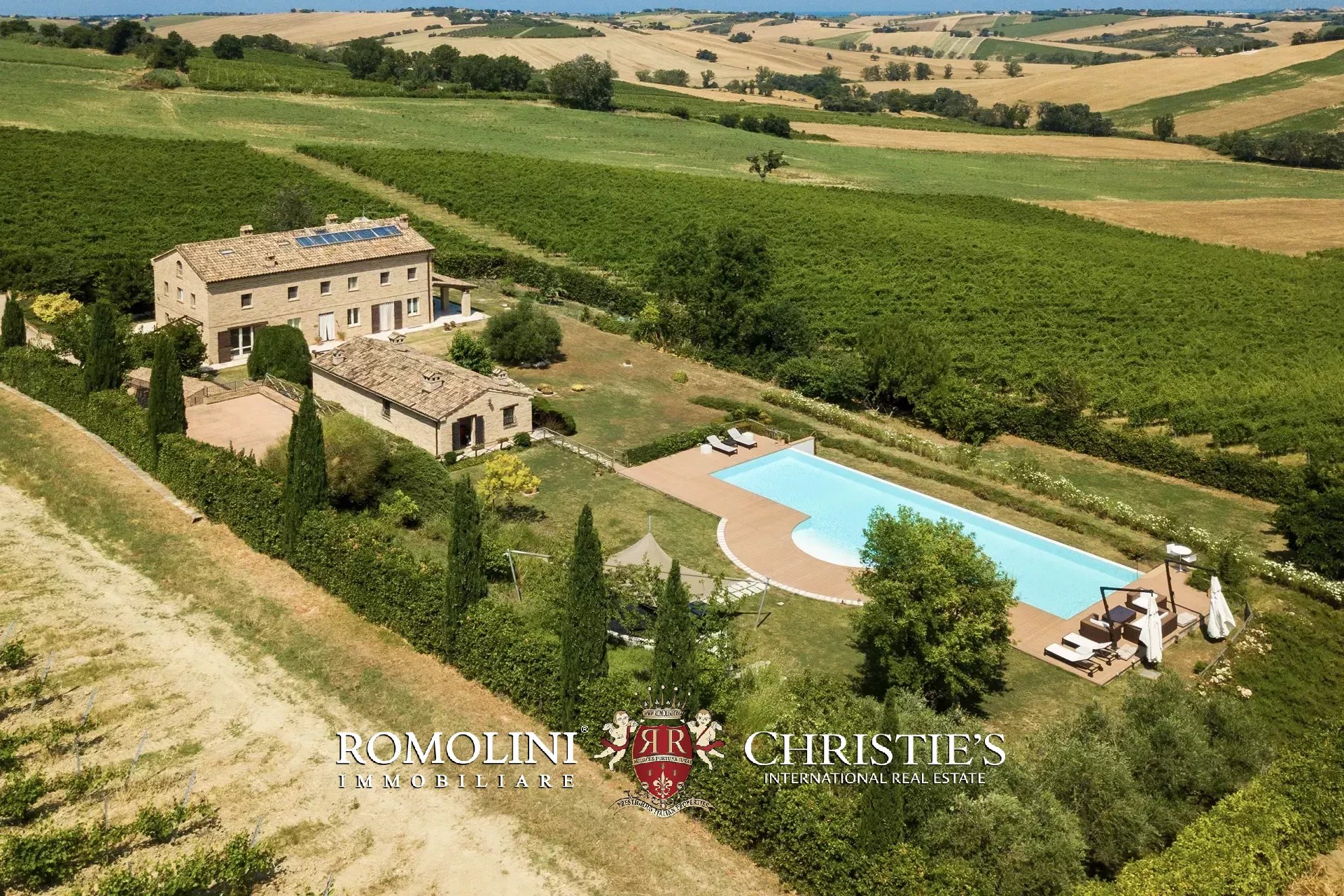 In a very panoramic position on the hills between Jesi and Senigallia, surrounded by the historic Lacrima vineyards, luxury villa with swimmingpool for sale. The property consists of three separate buildings (over 600 sqm in total) and is perfect both as an income property and as a luxury private residence.