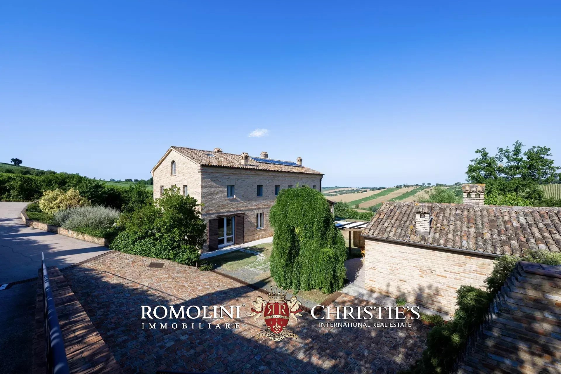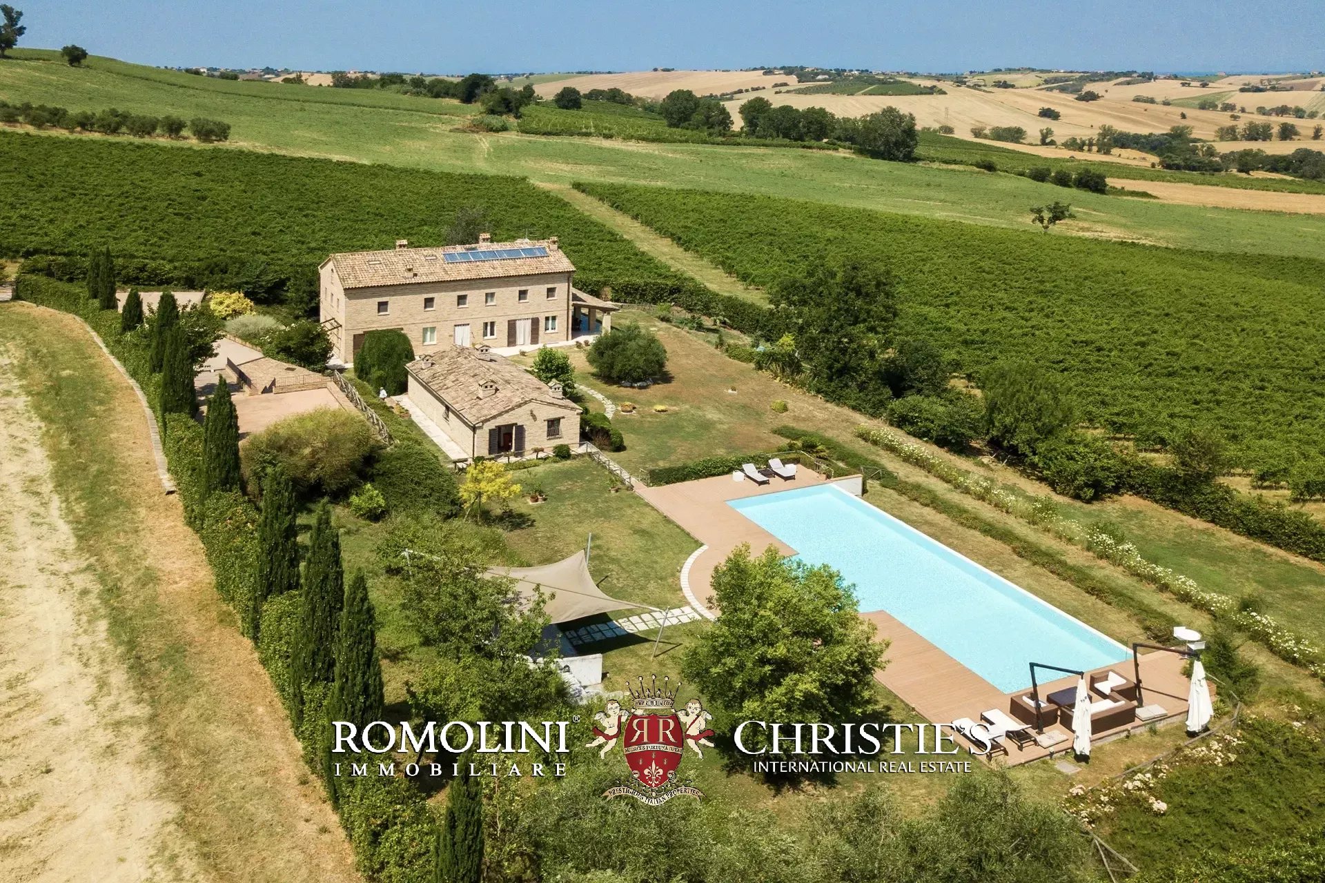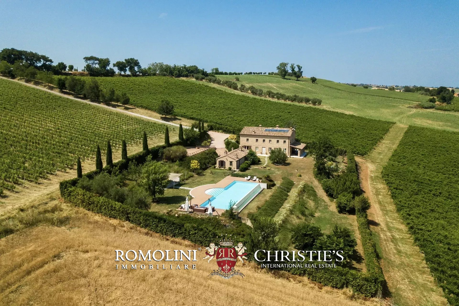 In a very panoramic position on the hills between Jesi and Senigallia, surrounded by the historic Lacrima vineyards, luxury villa with swimmingpool for sale. The property consists of three separate buildings (over 600 sqm in total) and is perfect both as an income property and as a luxury private residence.