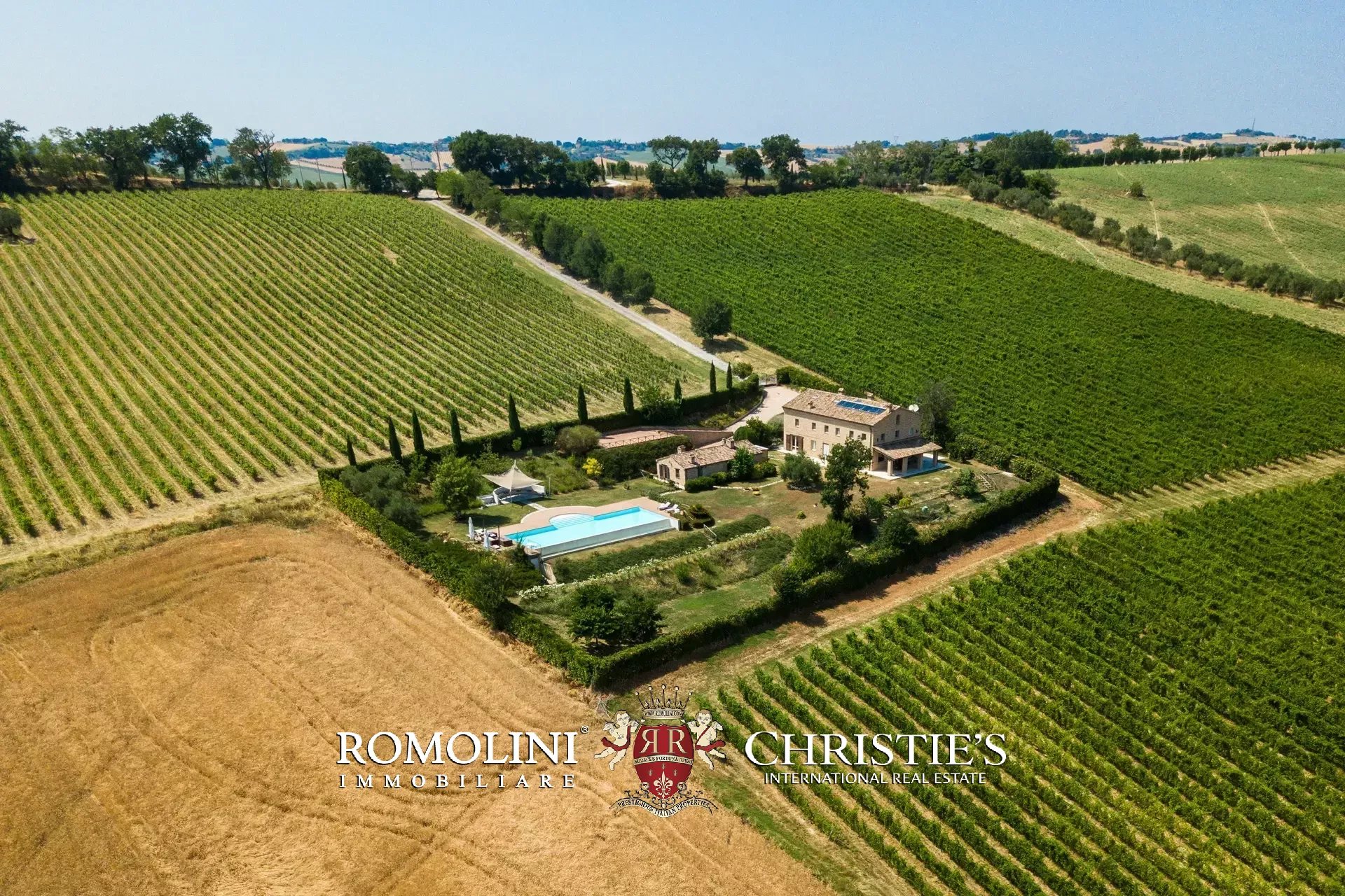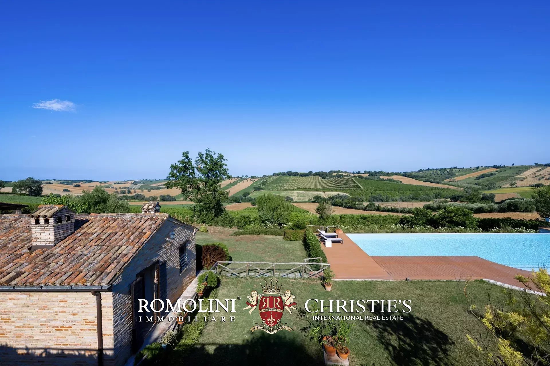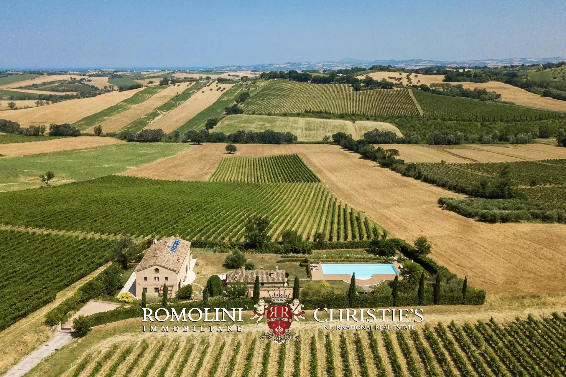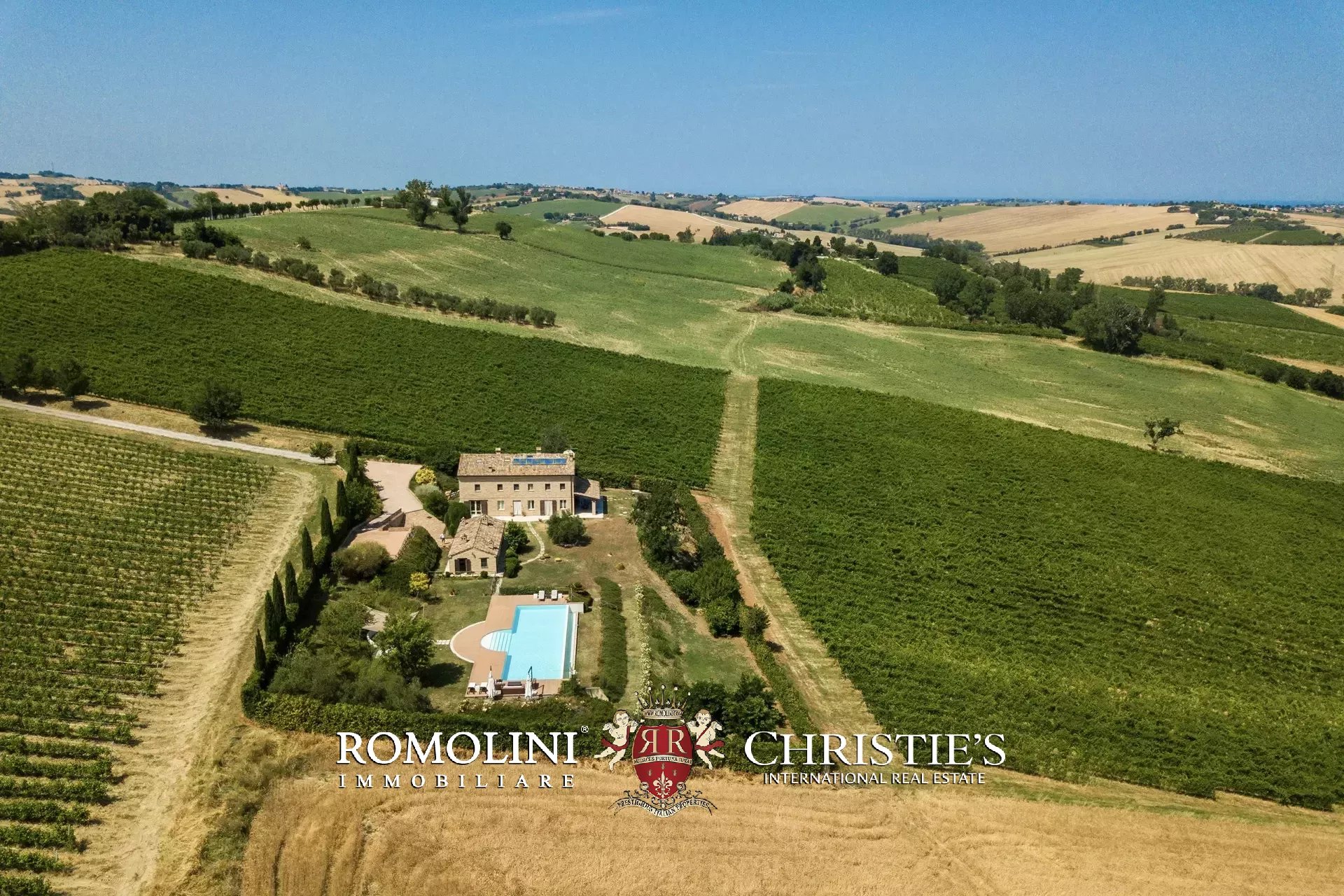In a very panoramic position on the hills between Jesi and Senigallia, surrounded by the historic Lacrima vineyards, luxury villa with swimmingpool for sale. The property consists of three separate buildings (over 600 sqm in total) and is perfect both as an income property and as a luxury private residence.