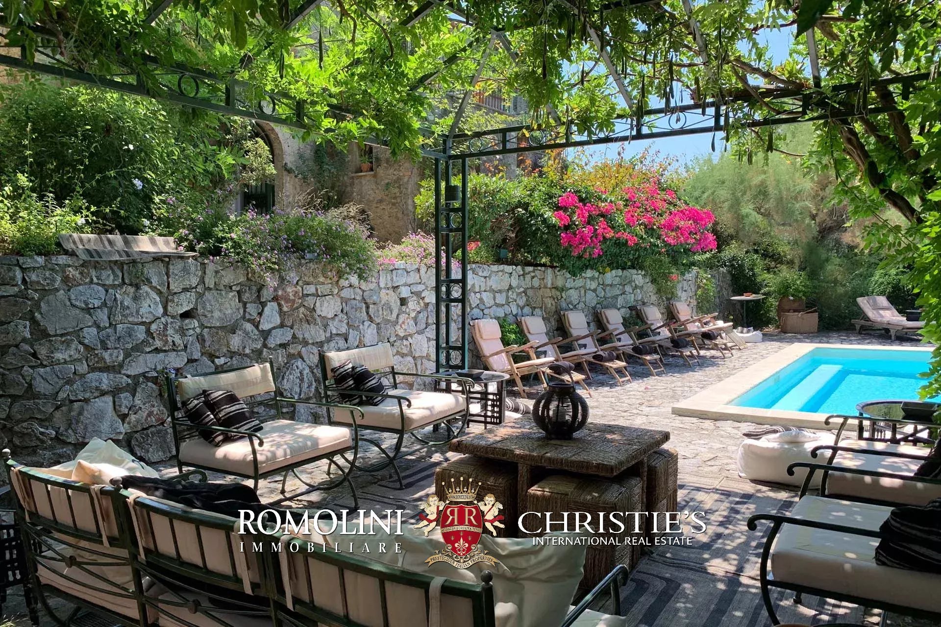 The main villa (490 sqm – 5,272 sqft, 4 bedrooms and 4 bathrooms) dates back to the first half of the 19th century. The building we see nowadays is the result of a masterful work of recovery and renovation of a partially ruined building. The valorization work was carried out by designer Giorgio Pes (1931 – 2010) who was able to rebuild the structure without distorting it, repurposing cornices, half pilasters, columns, tympanums and using local workshops to reproduce hand-painted ceramics and majolica (following the tradition of artisans from Naples, Salerno and Capodimonte).