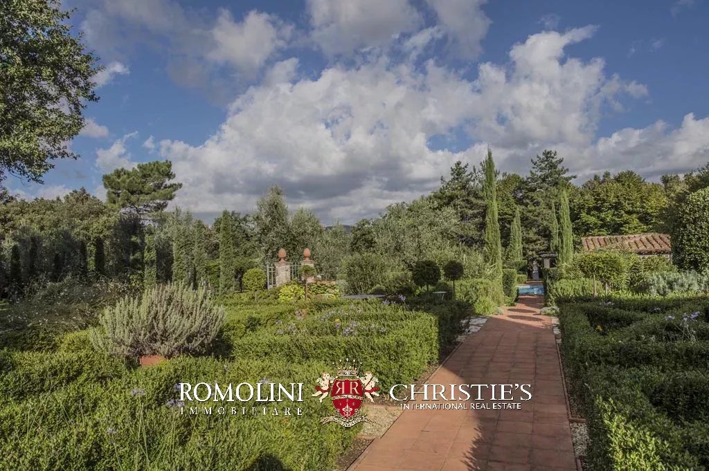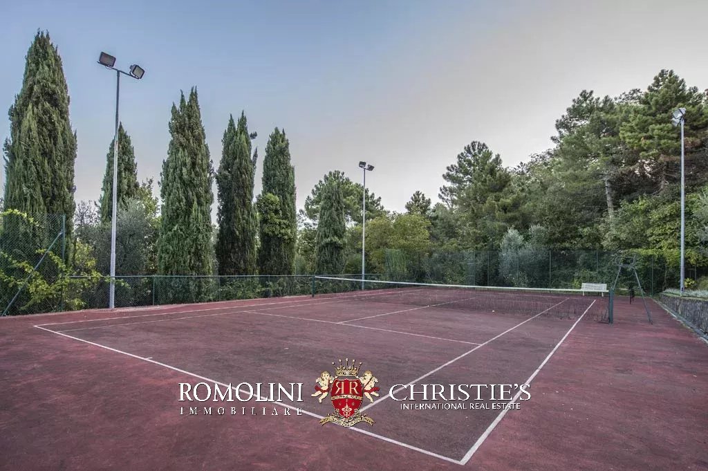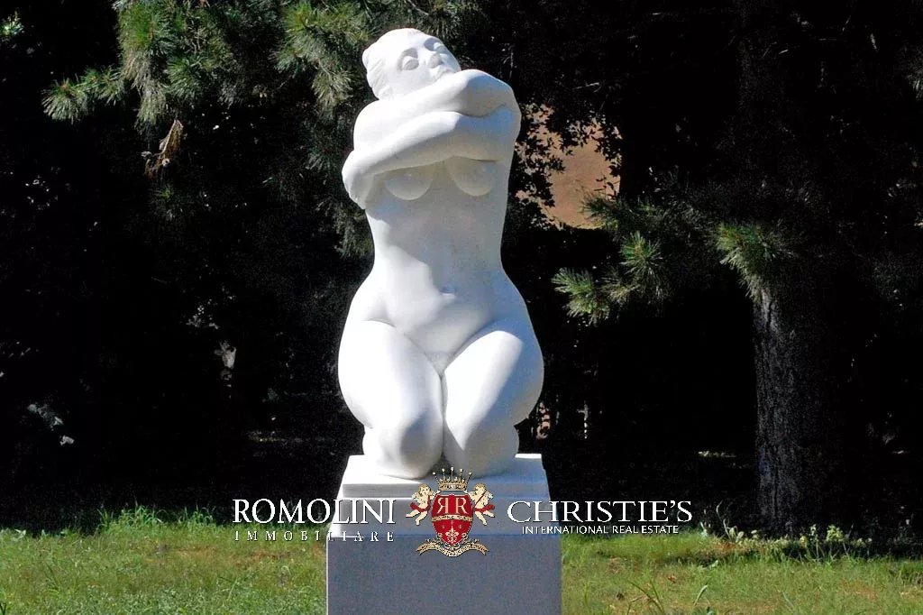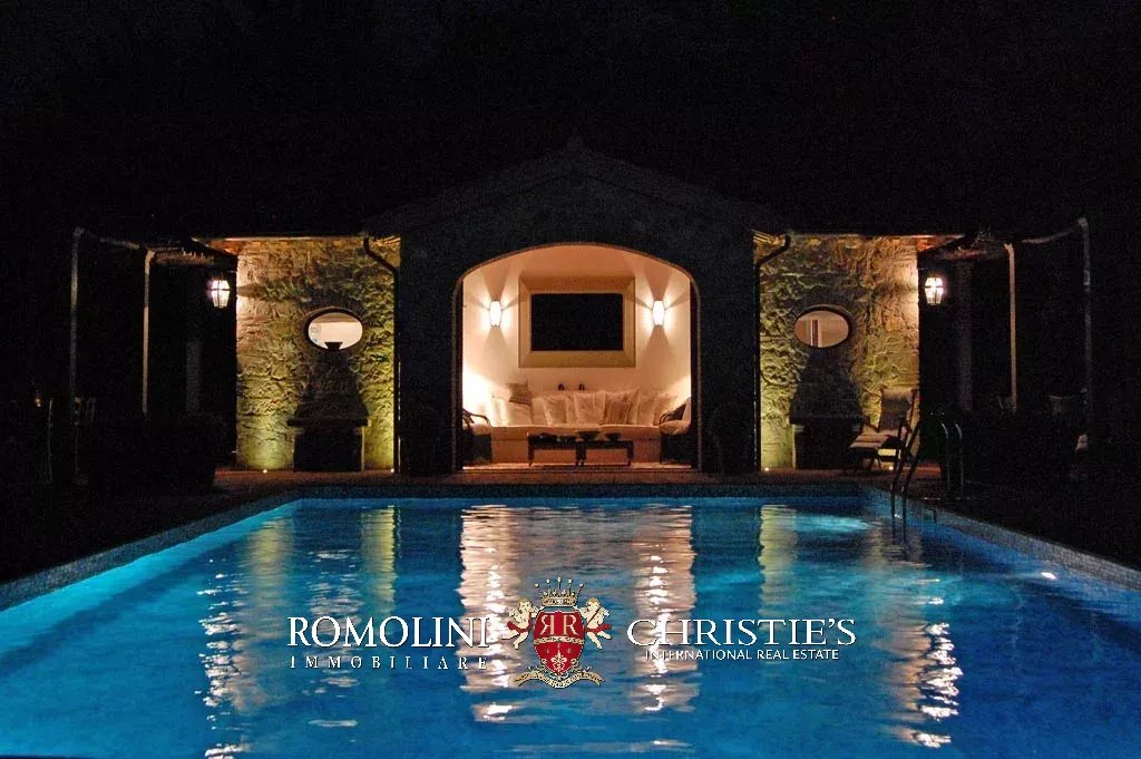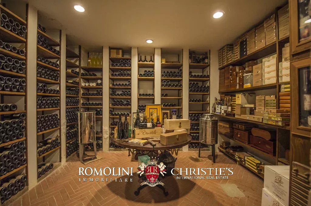 The property, surrounded by 22000 square metres of garden with 80 olive trees, is completed by an underground parking area of 400 square metres with a conditioned cellar for wine and oil storage and a room for cigar preservation.