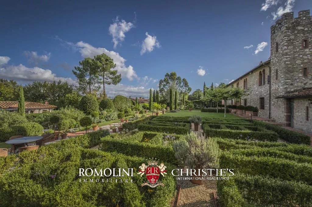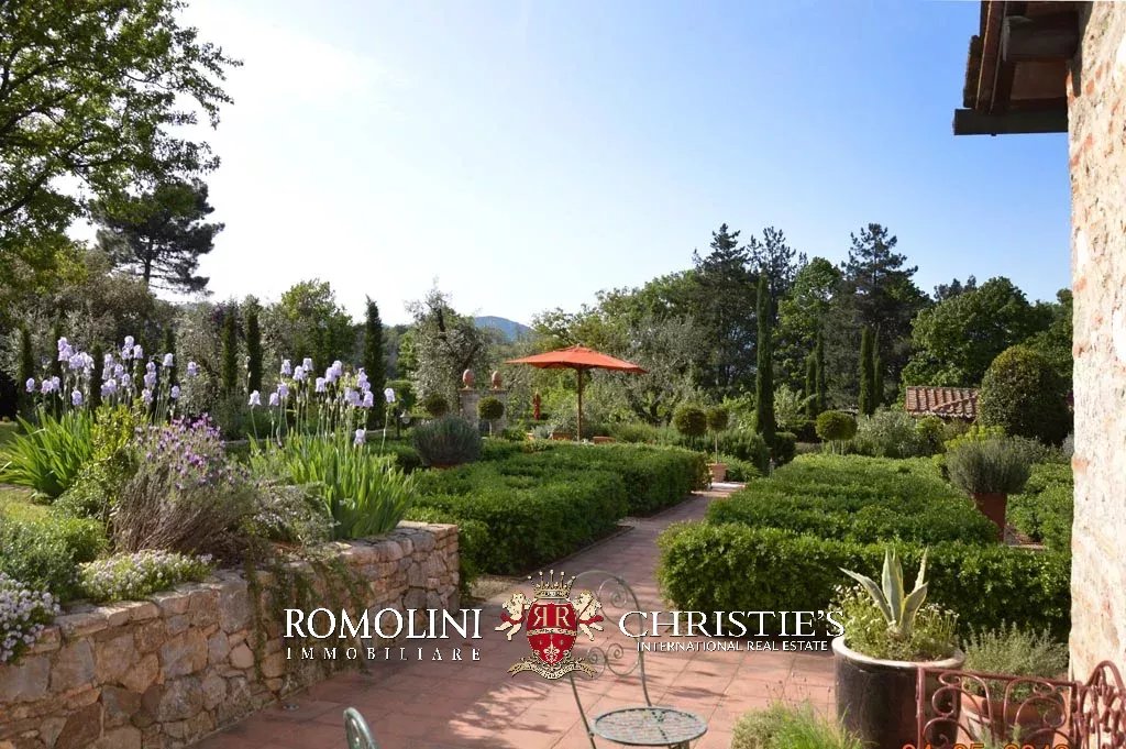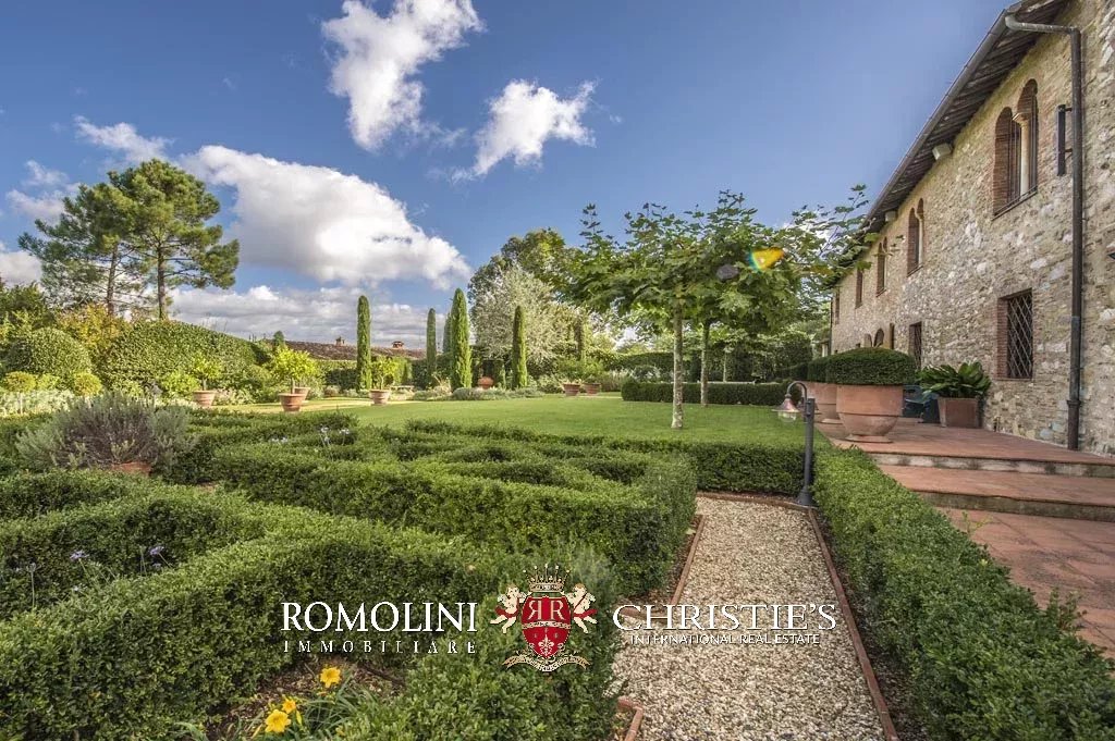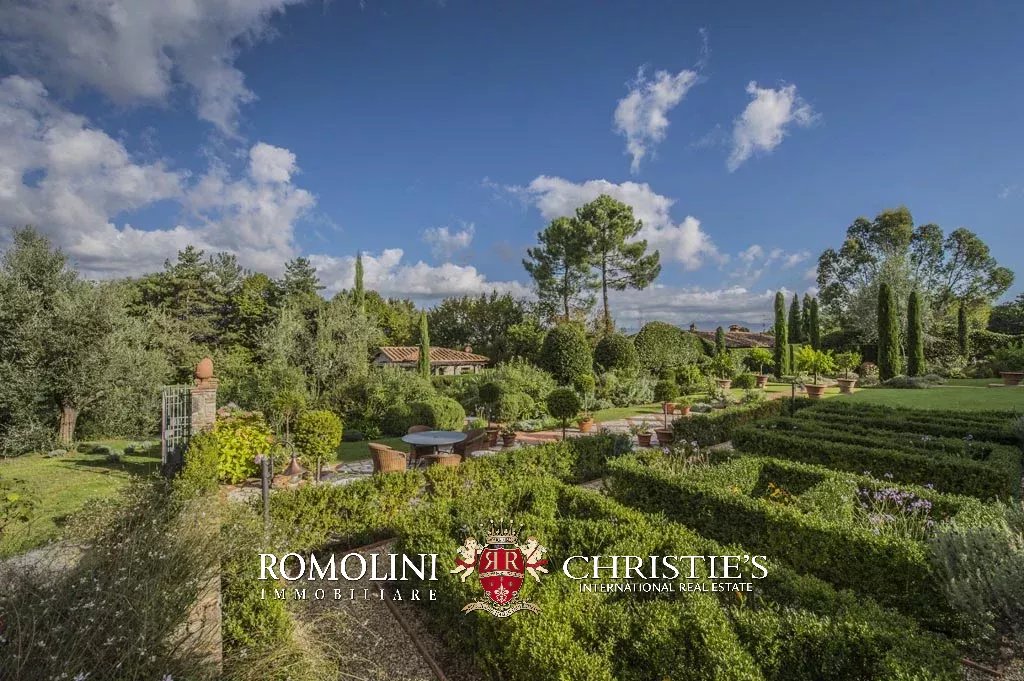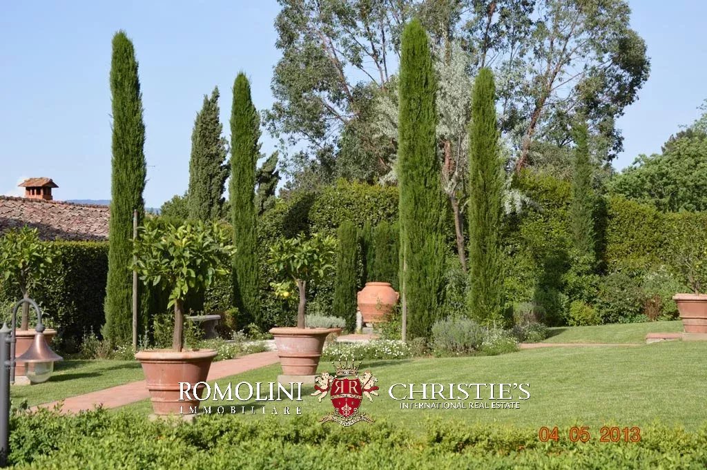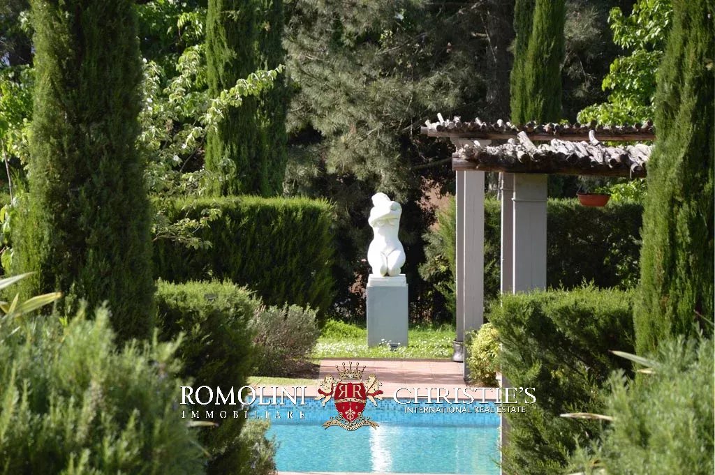 The property, surrounded by 22000 square metres of garden with 80 olive trees, is completed by an underground parking area of 400 square metres with a conditioned cellar for wine and oil storage and a room for cigar preservation.
