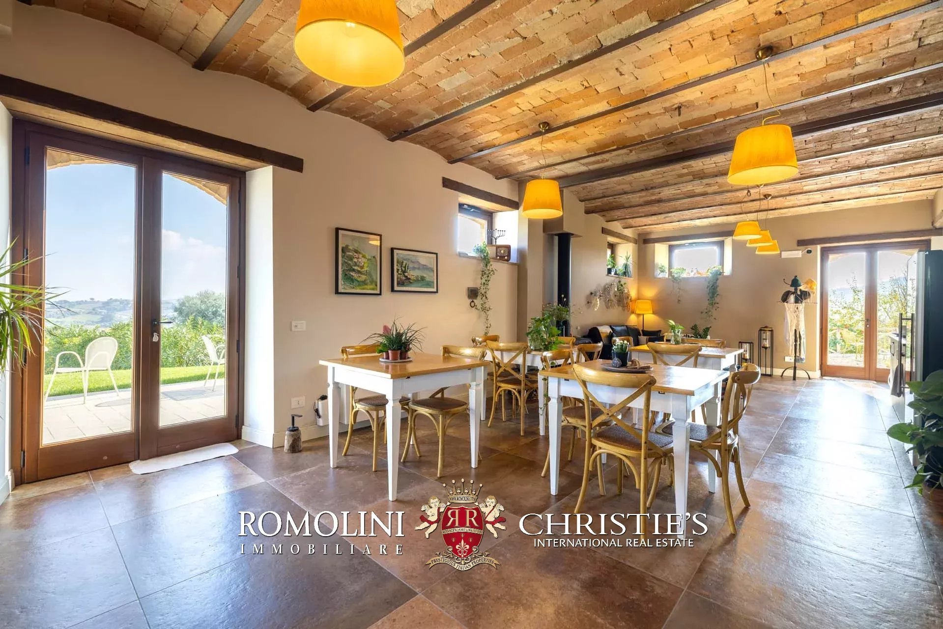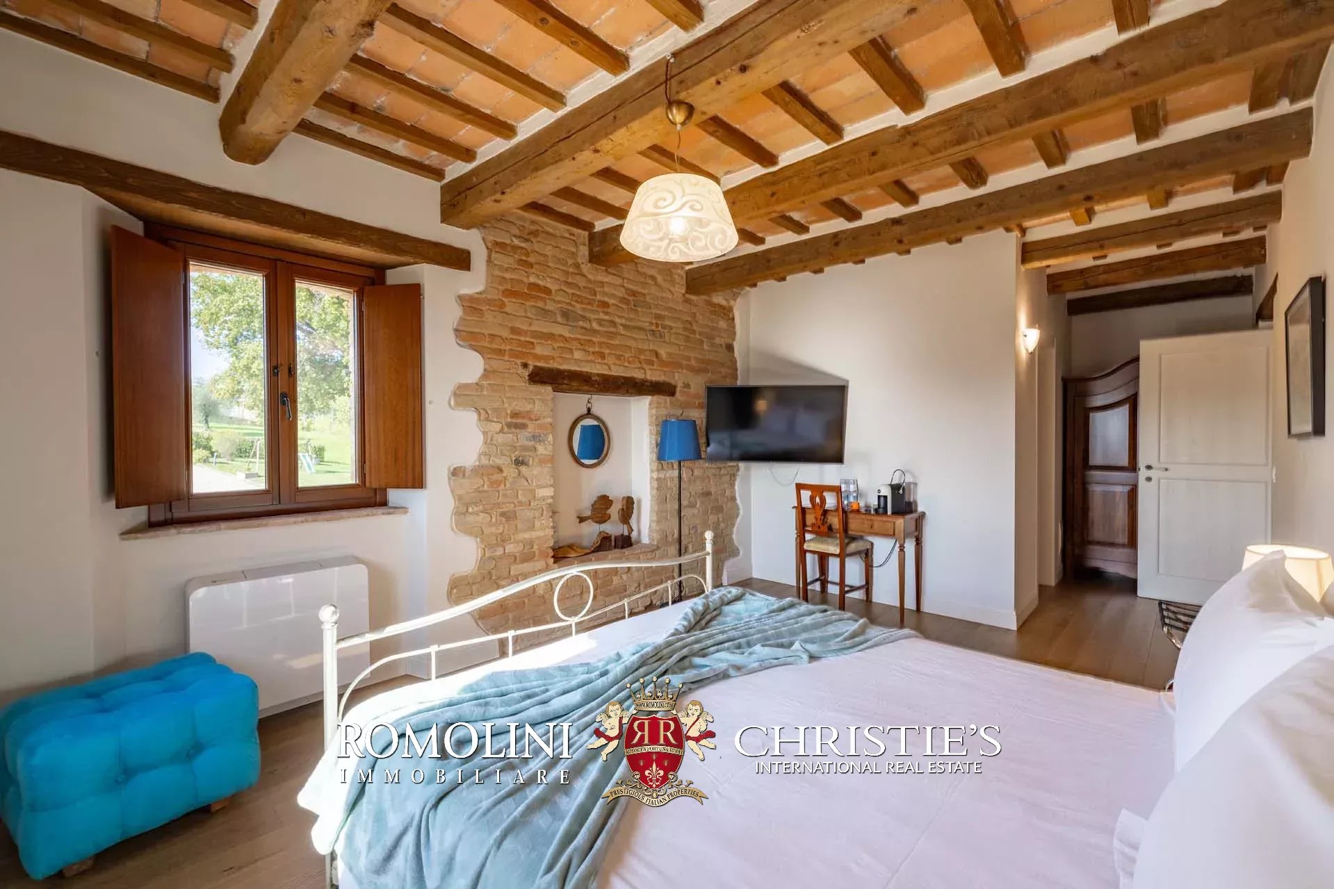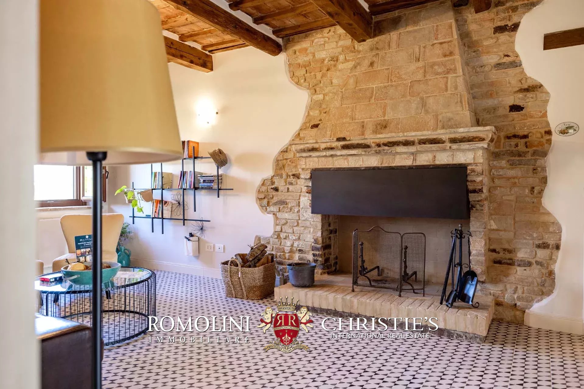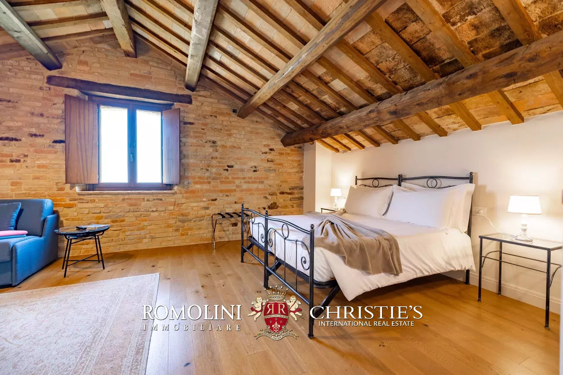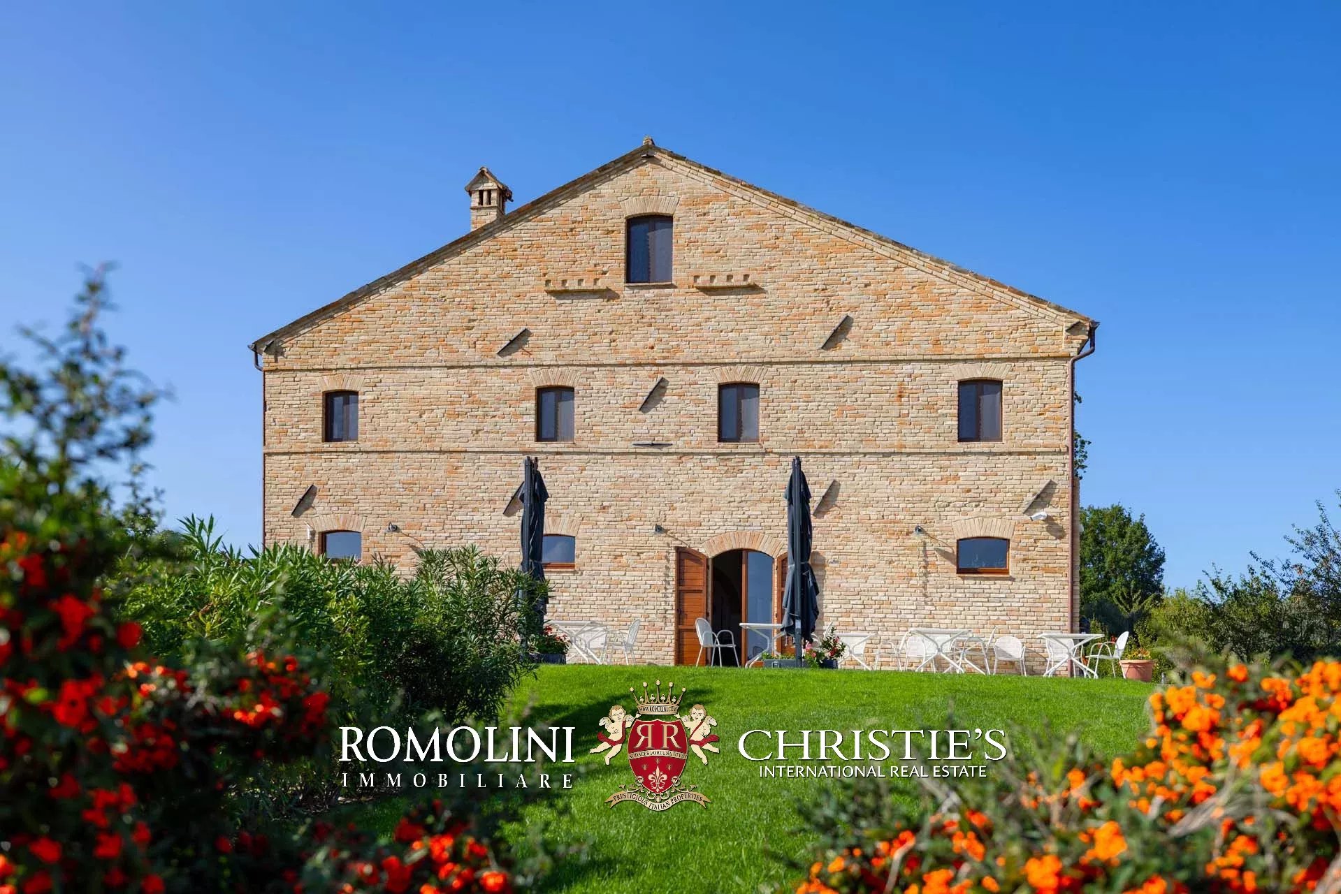 The farmhouse (485 m² – 5,219 ft², 6 bedrooms and 8 bathrooms) is a brick building, typical of the Marche region, structured on three floors. The building has been entirely renovated from a practically abandoned farmhouse: the typical finishes of the rural structure have been preserved (such as the beautiful brick vaults on the ground floor) with the addition of modern elements to ensure maximum comfort for guests. The building also has a photovoltaic system (4.5 kW) and solar panels (12 kW) for domestic hot water production.