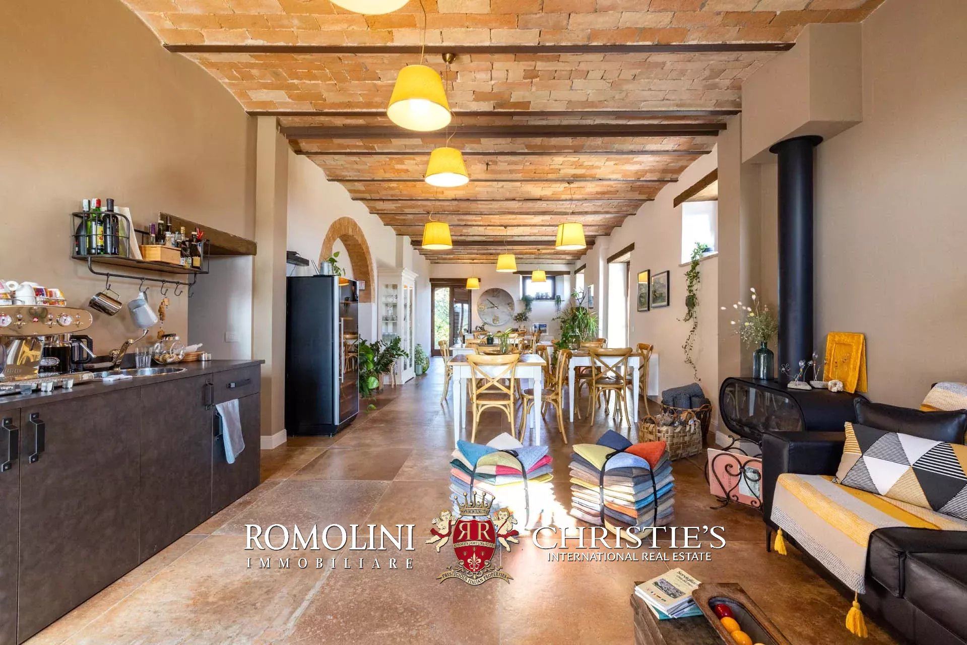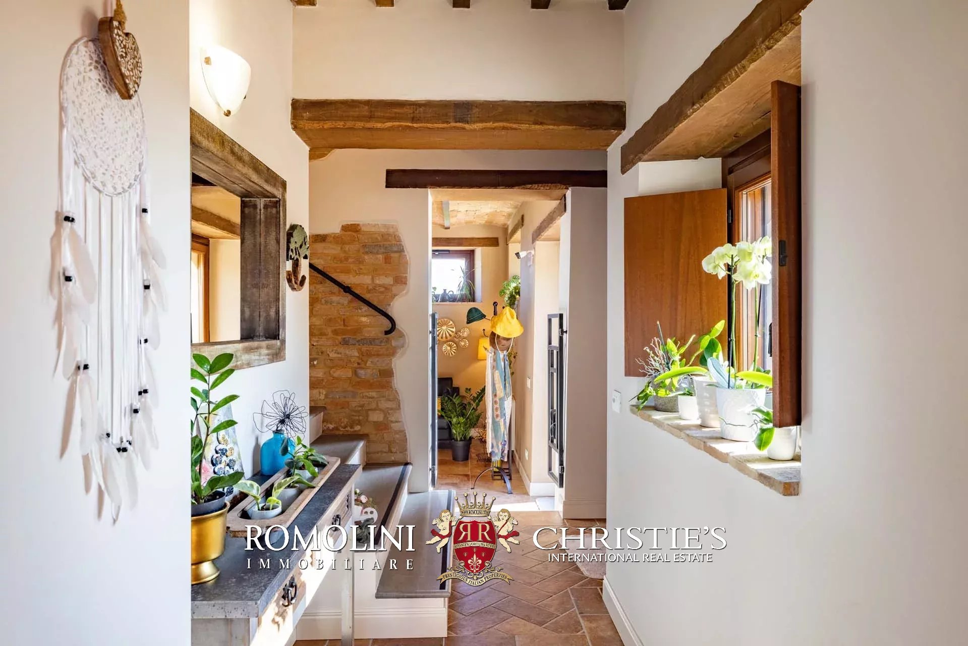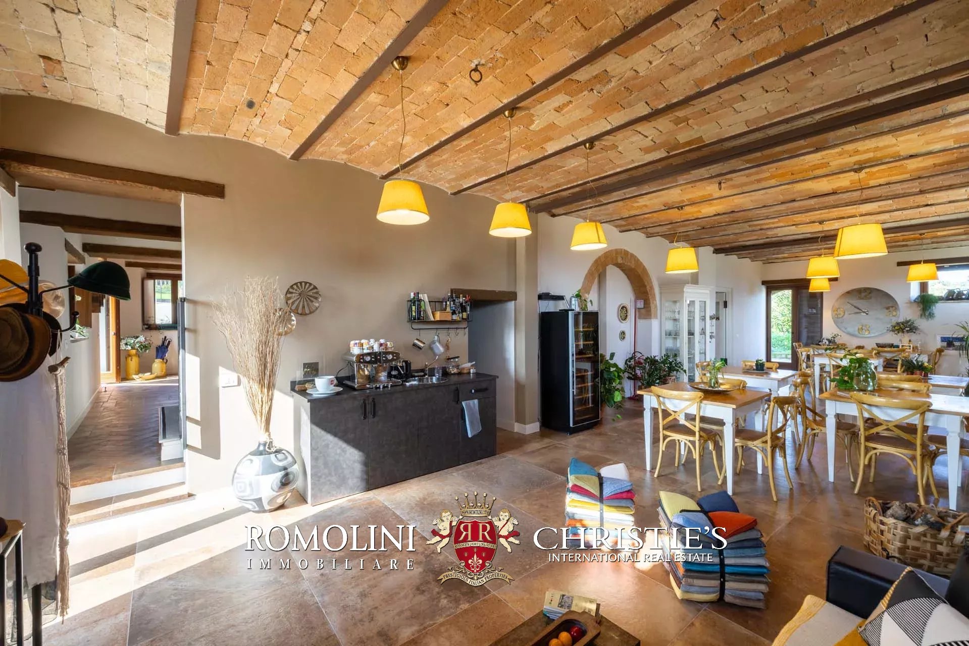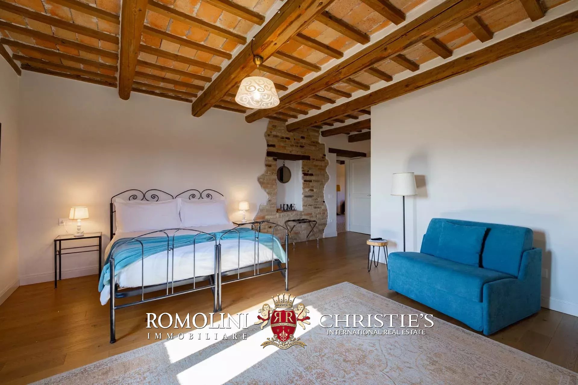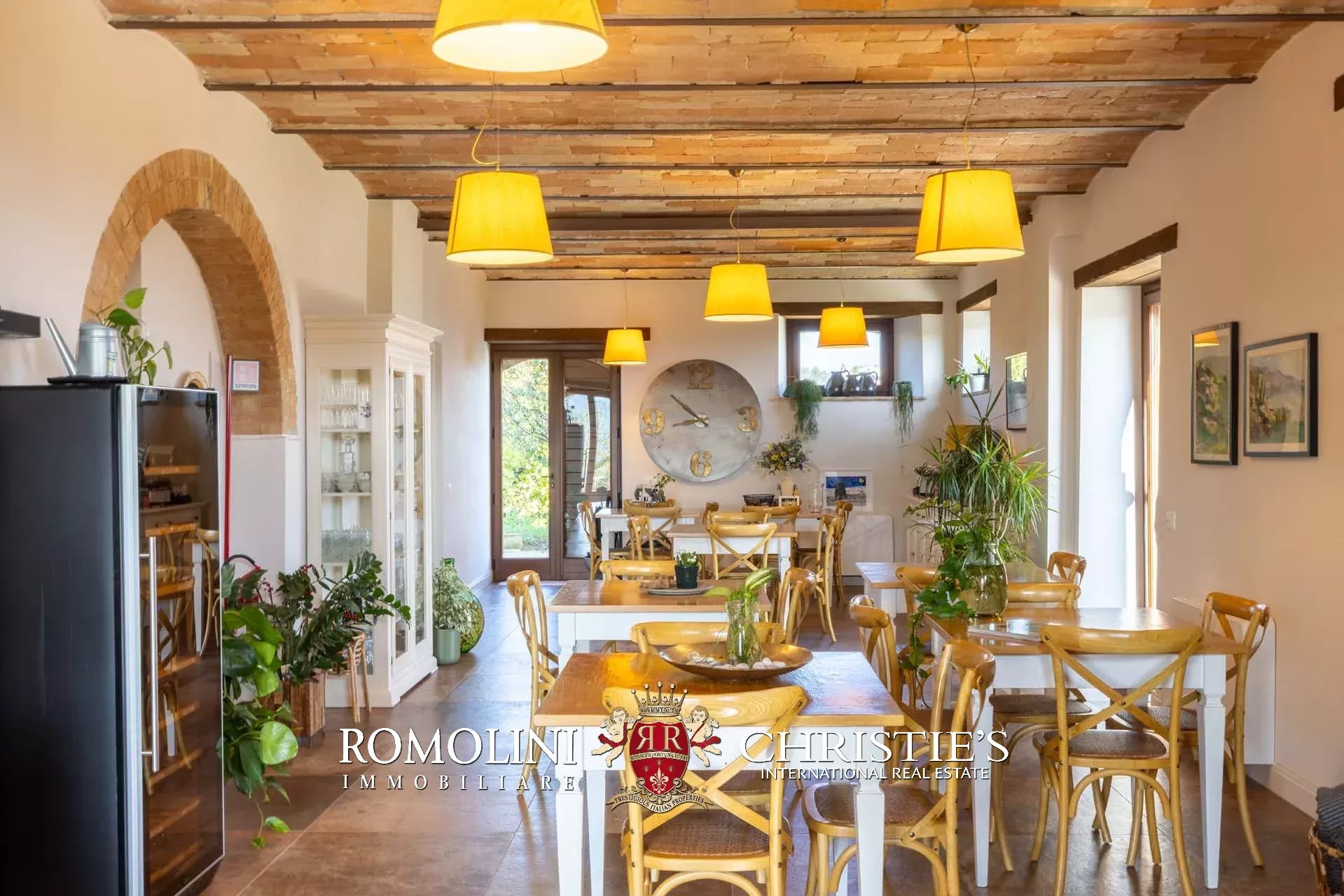 The farmhouse (485 m² – 5,219 ft², 6 bedrooms and 8 bathrooms) is a brick building, typical of the Marche region, structured on three floors. The building has been entirely renovated from a practically abandoned farmhouse: the typical finishes of the rural structure have been preserved (such as the beautiful brick vaults on the ground floor) with the addition of modern elements to ensure maximum comfort for guests. The building also has a photovoltaic system (4.5 kW) and solar panels (12 kW) for domestic hot water production.
