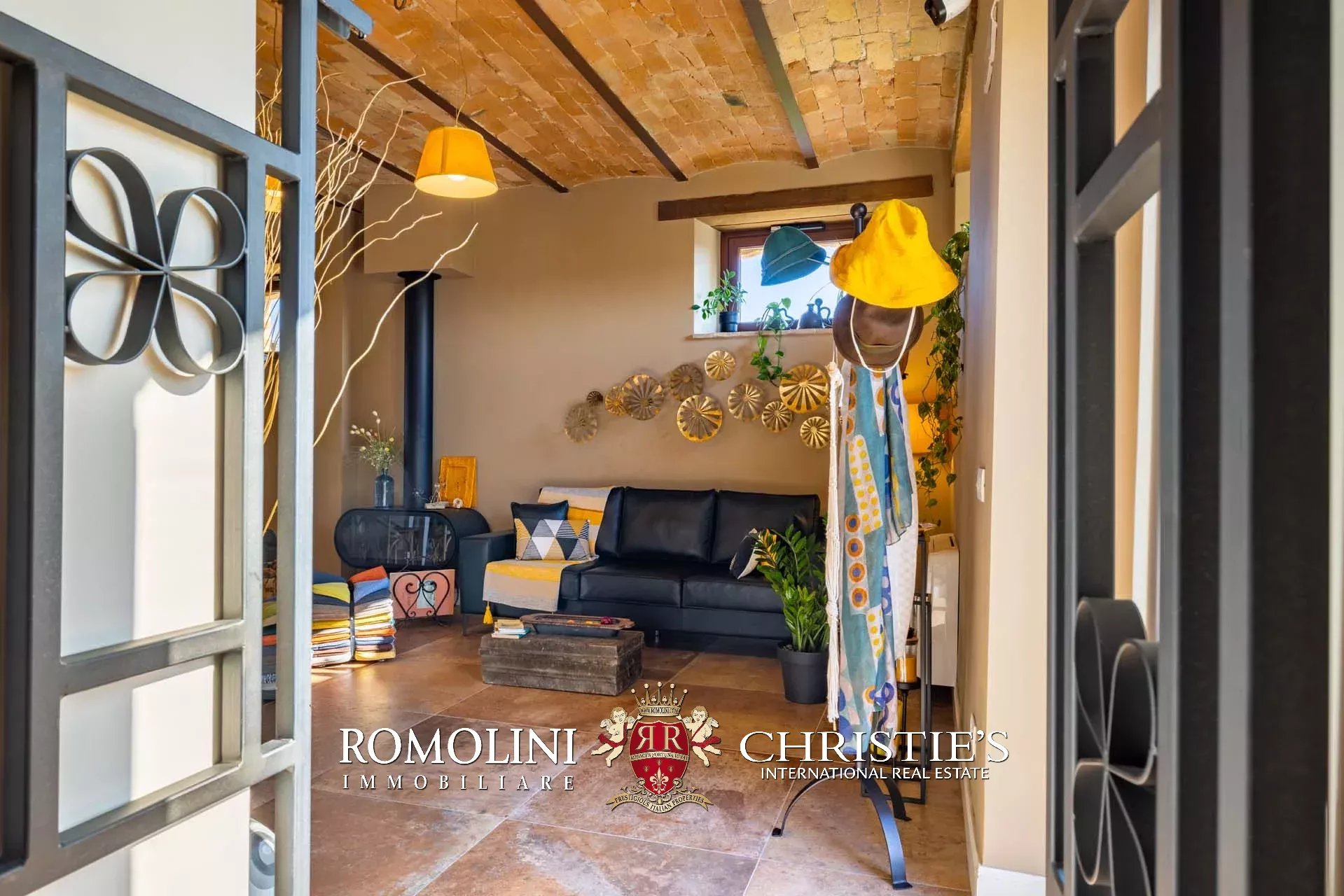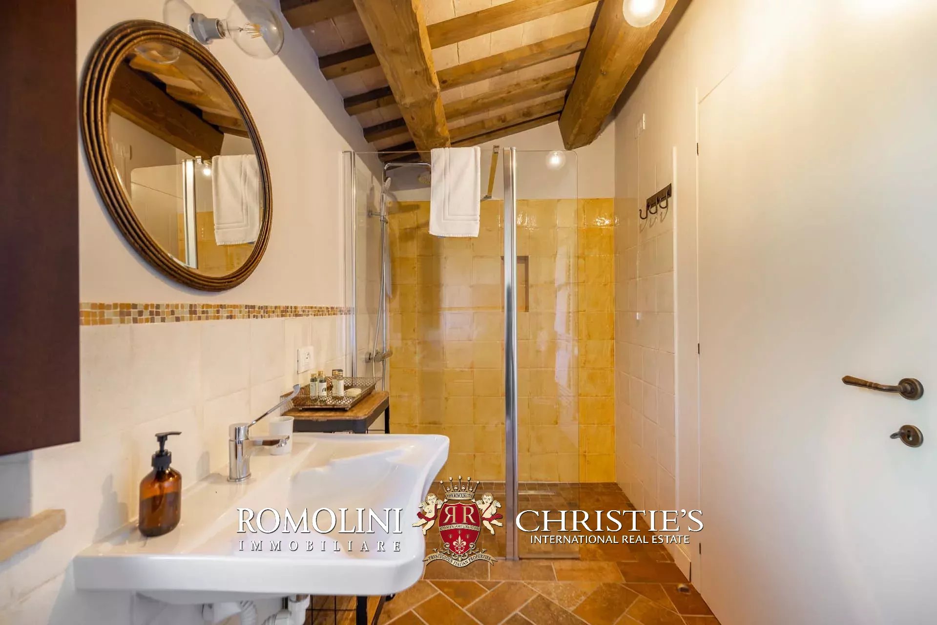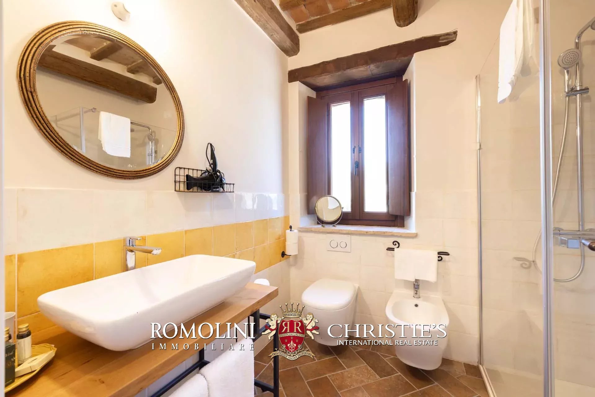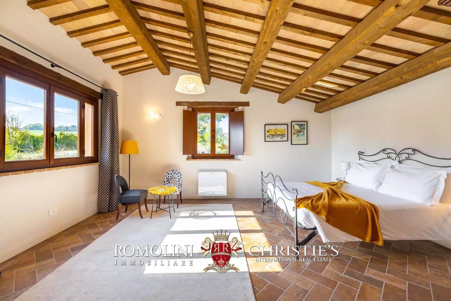 The farmhouse (485 m² – 5,219 ft², 6 bedrooms and 8 bathrooms) is a brick building, typical of the Marche region, structured on three floors. The building has been entirely renovated from a practically abandoned farmhouse: the typical finishes of the rural structure have been preserved (such as the beautiful brick vaults on the ground floor) with the addition of modern elements to ensure maximum comfort for guests. The building also has a photovoltaic system (4.5 kW) and solar panels (12 kW) for domestic hot water production.
