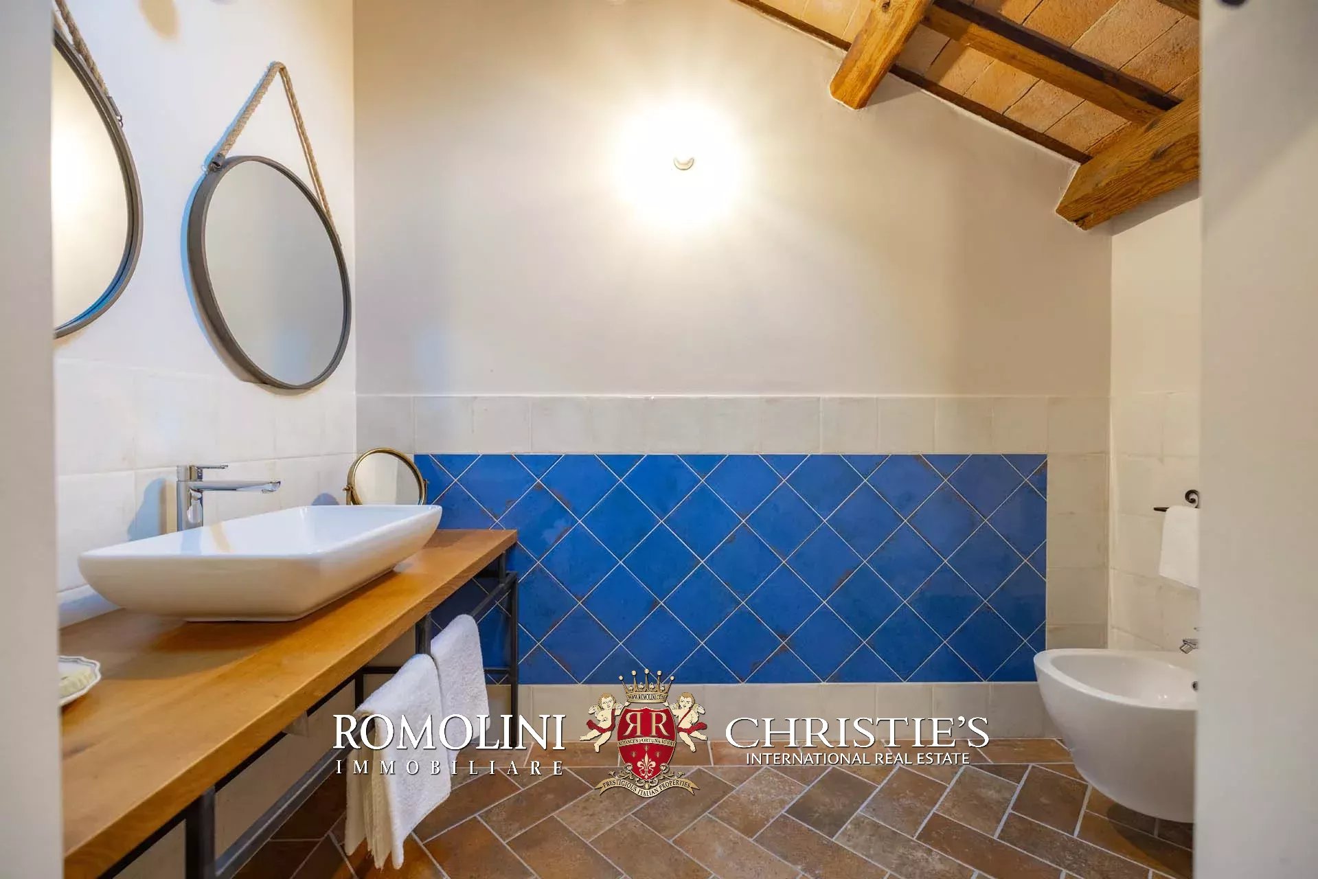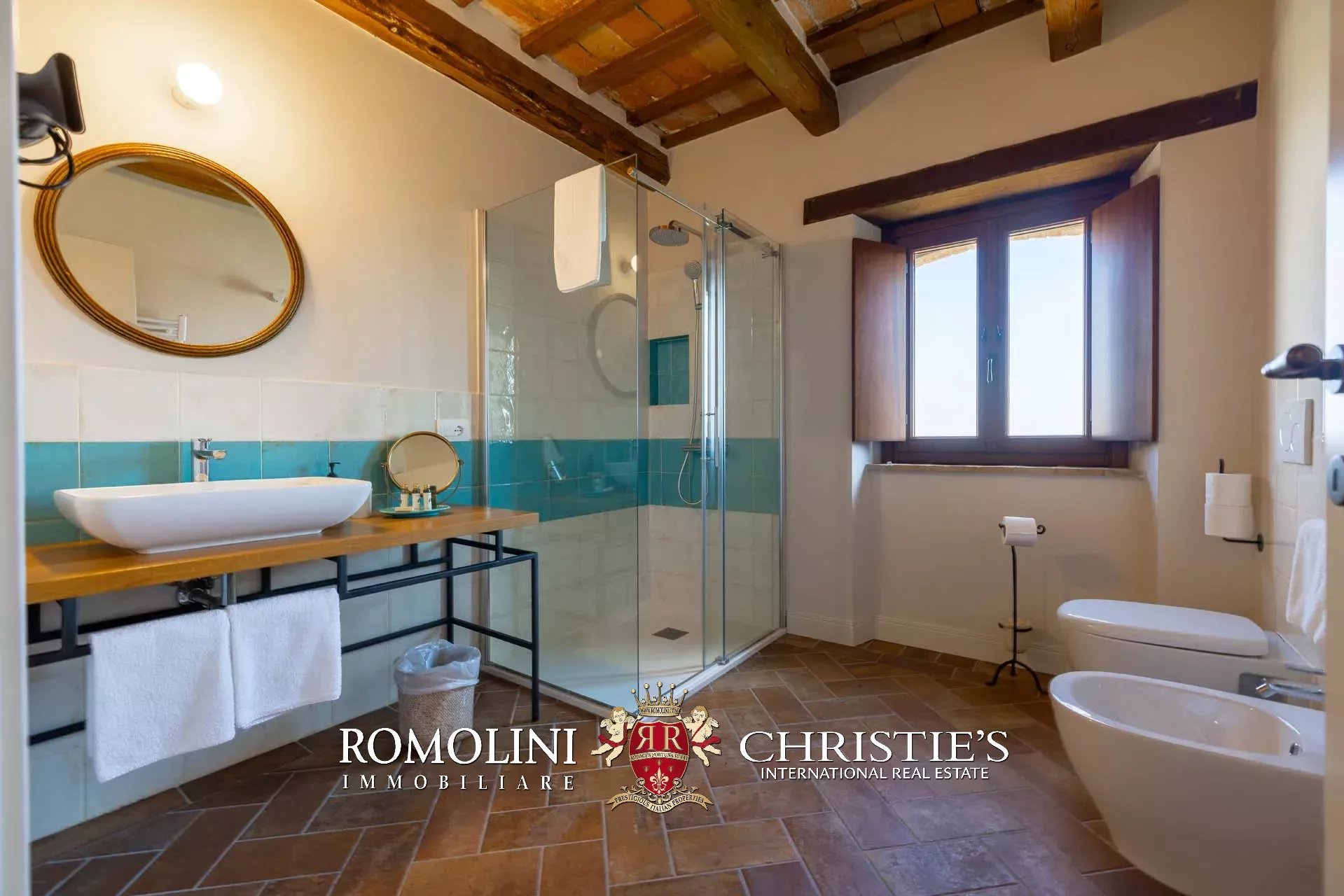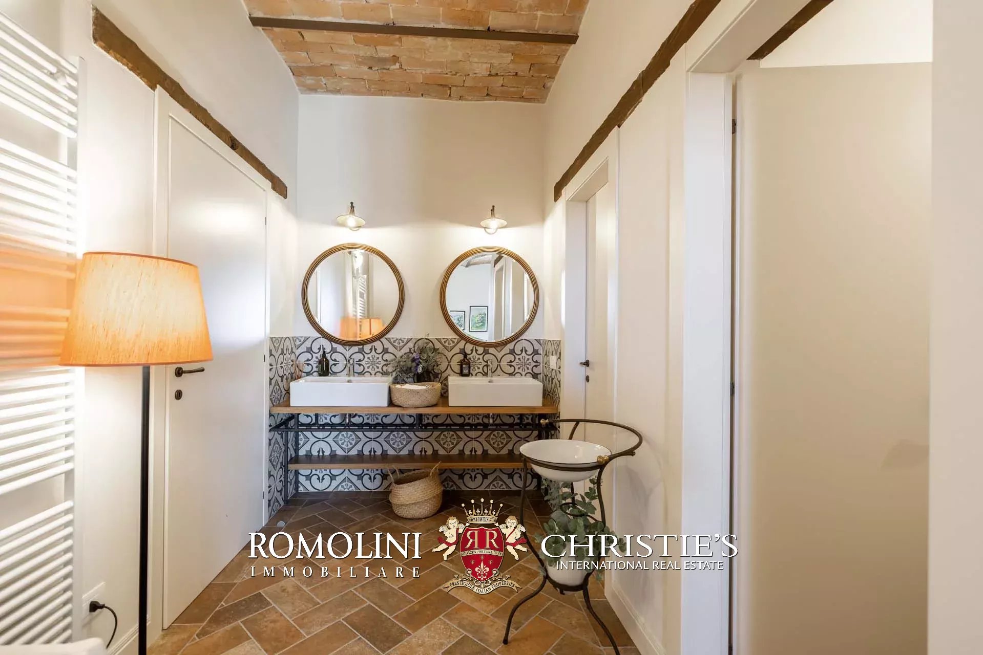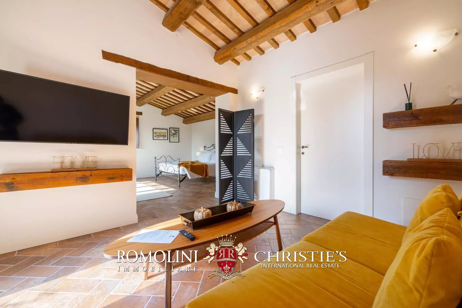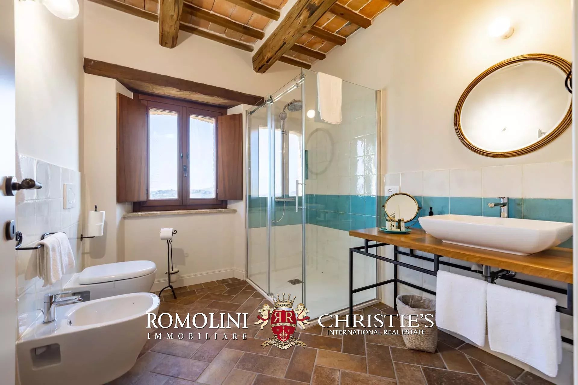 The farmhouse (485 m² – 5,219 ft², 6 bedrooms and 8 bathrooms) is a brick building, typical of the Marche region, structured on three floors. The building has been entirely renovated from a practically abandoned farmhouse: the typical finishes of the rural structure have been preserved (such as the beautiful brick vaults on the ground floor) with the addition of modern elements to ensure maximum comfort for guests. The building also has a photovoltaic system (4.5 kW) and solar panels (12 kW) for domestic hot water production.