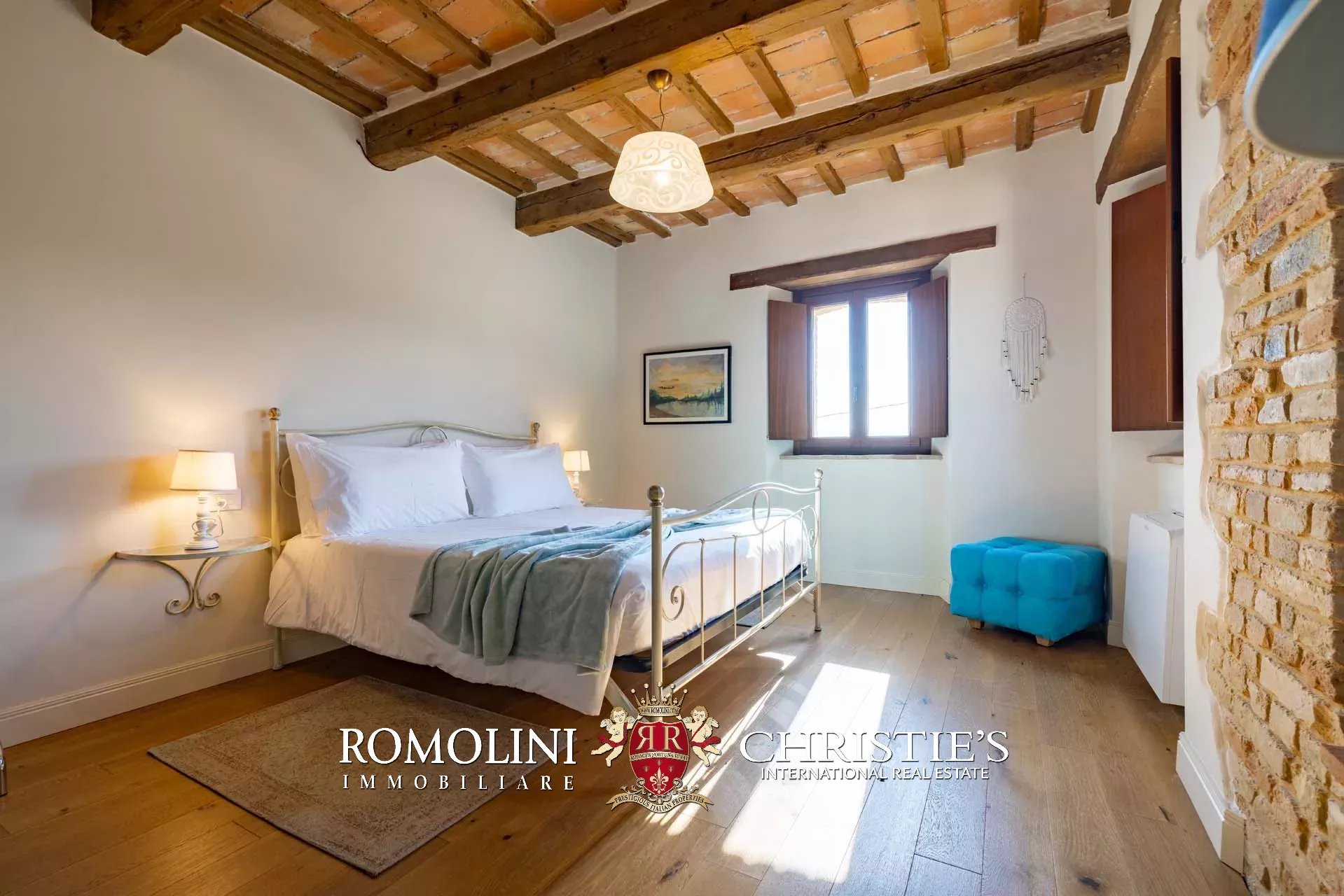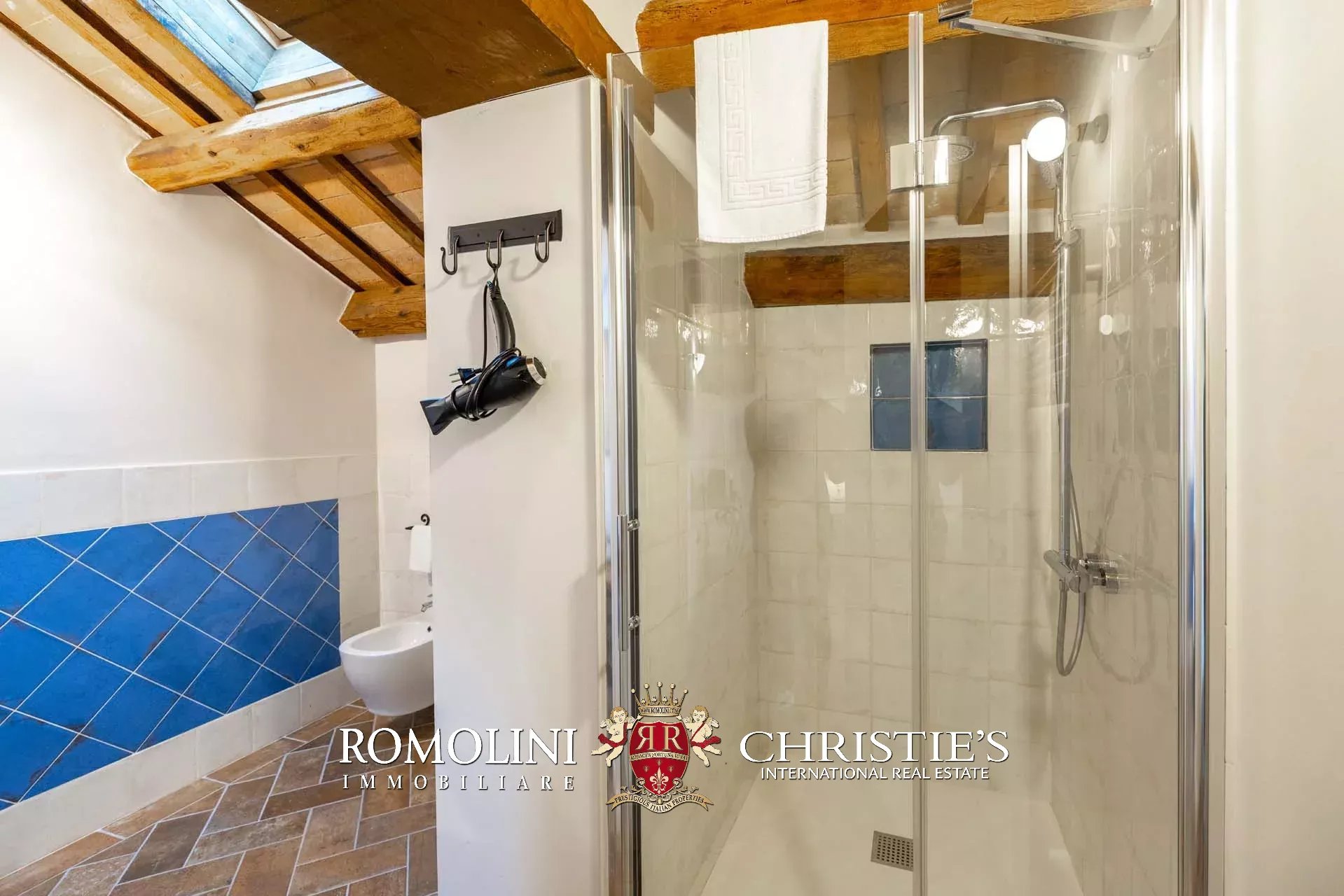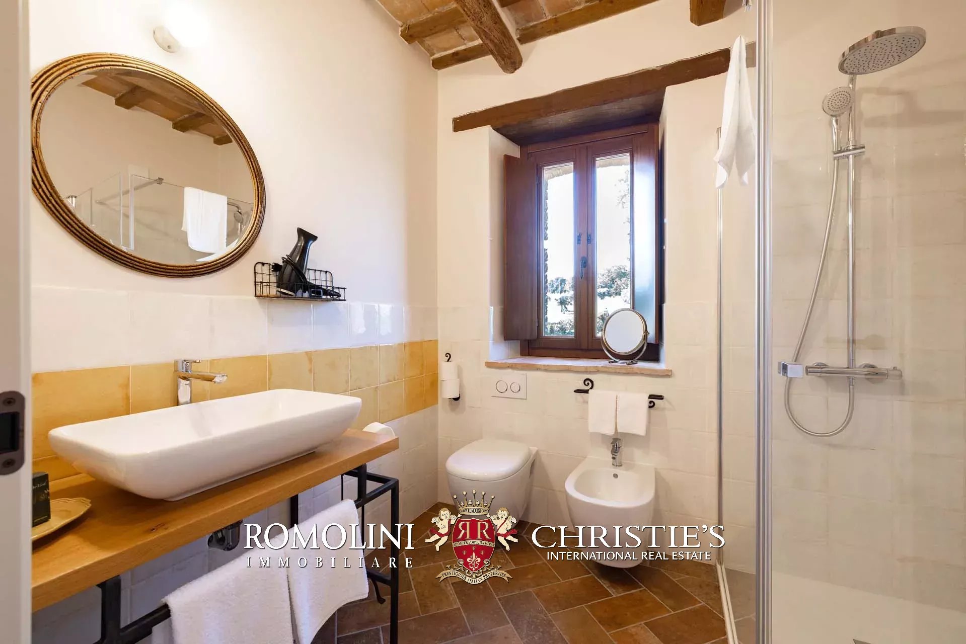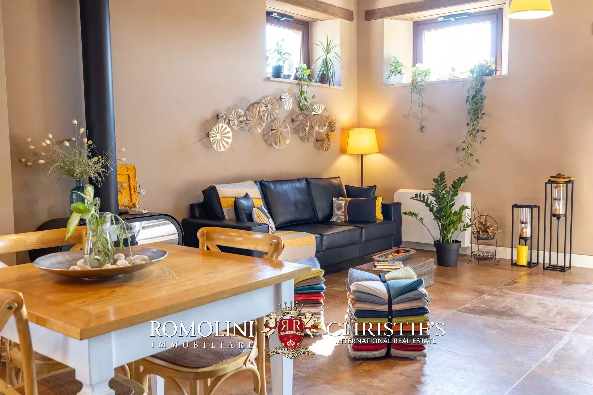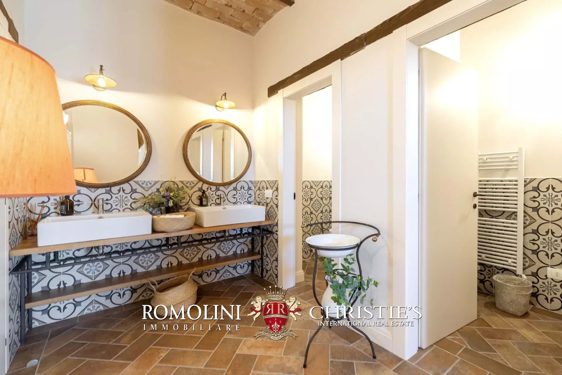 The farmhouse (485 m² – 5,219 ft², 6 bedrooms and 8 bathrooms) is a brick building, typical of the Marche region, structured on three floors. The building has been entirely renovated from a practically abandoned farmhouse: the typical finishes of the rural structure have been preserved (such as the beautiful brick vaults on the ground floor) with the addition of modern elements to ensure maximum comfort for guests. The building also has a photovoltaic system (4.5 kW) and solar panels (12 kW) for domestic hot water production.