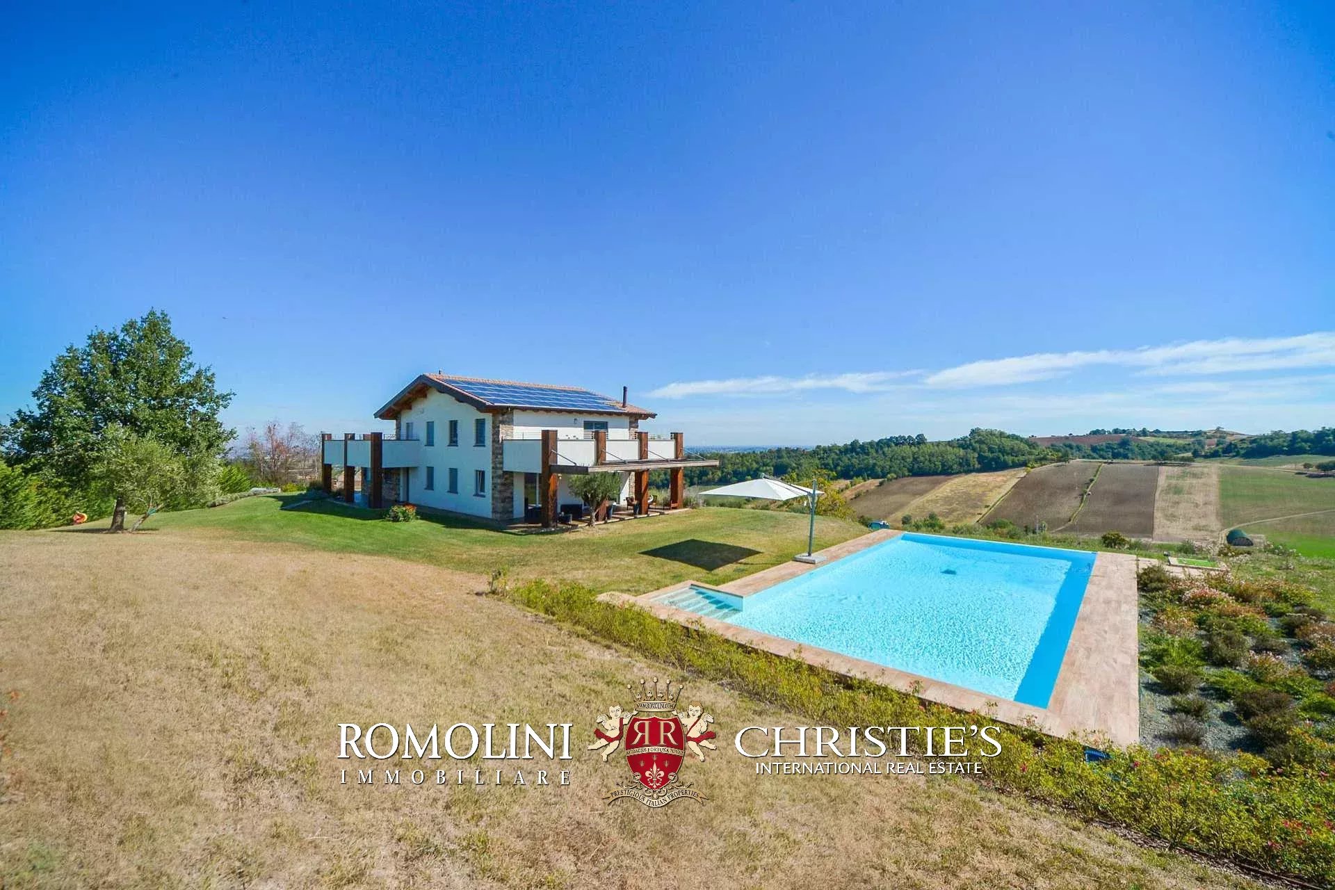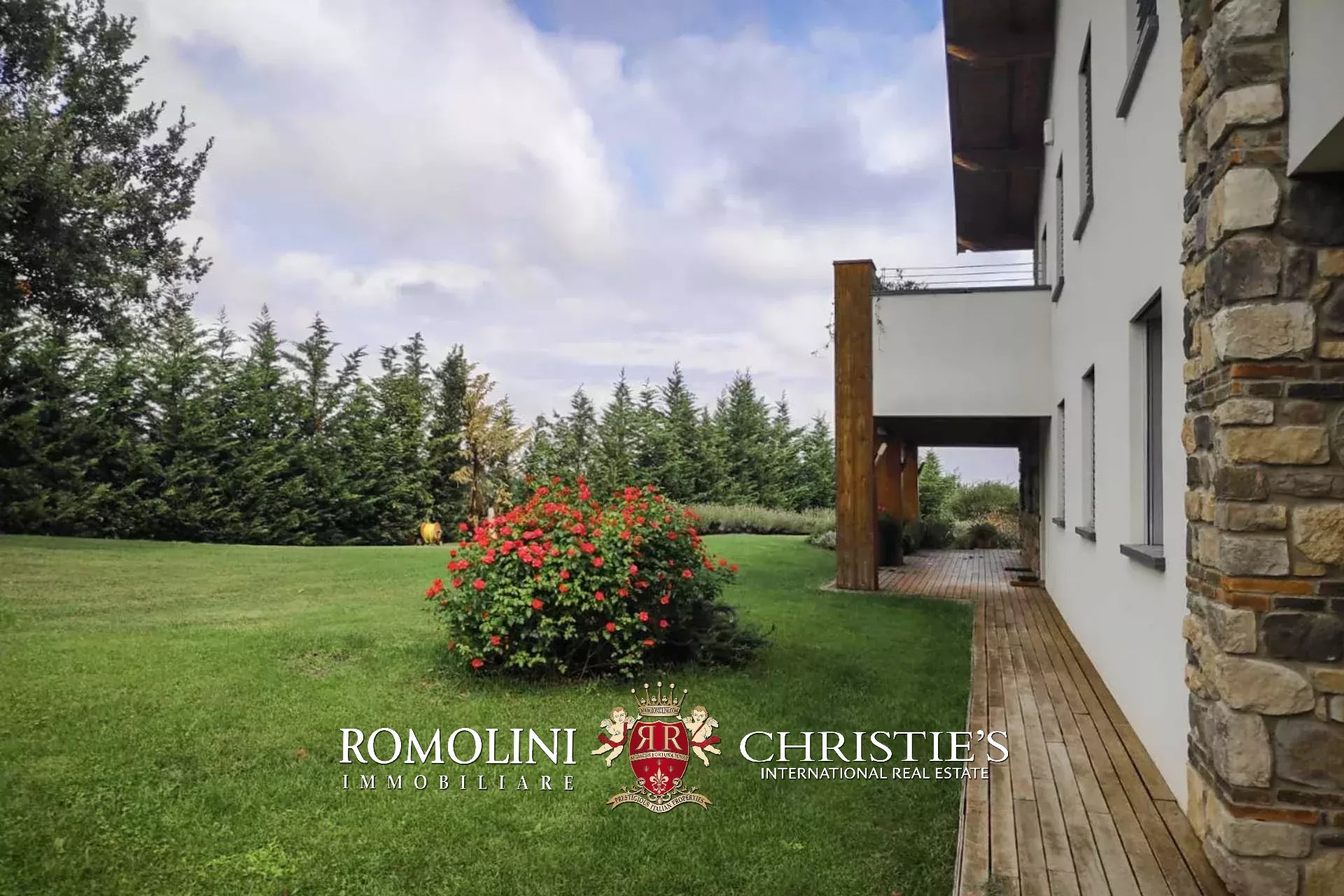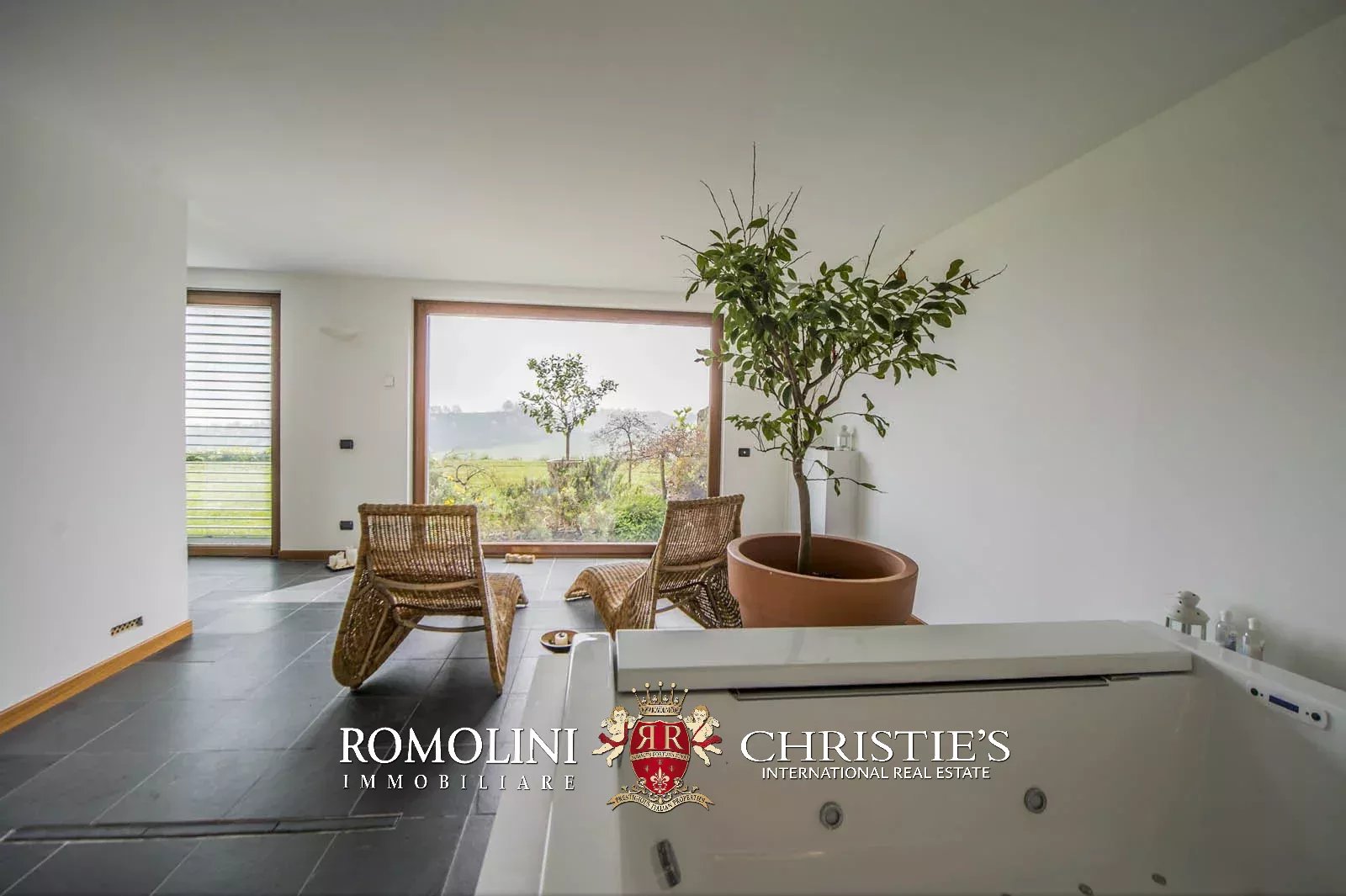 Modern villa with pool, olive grove and fruit orchard in Emilia-Romagna, in the province of Parma.