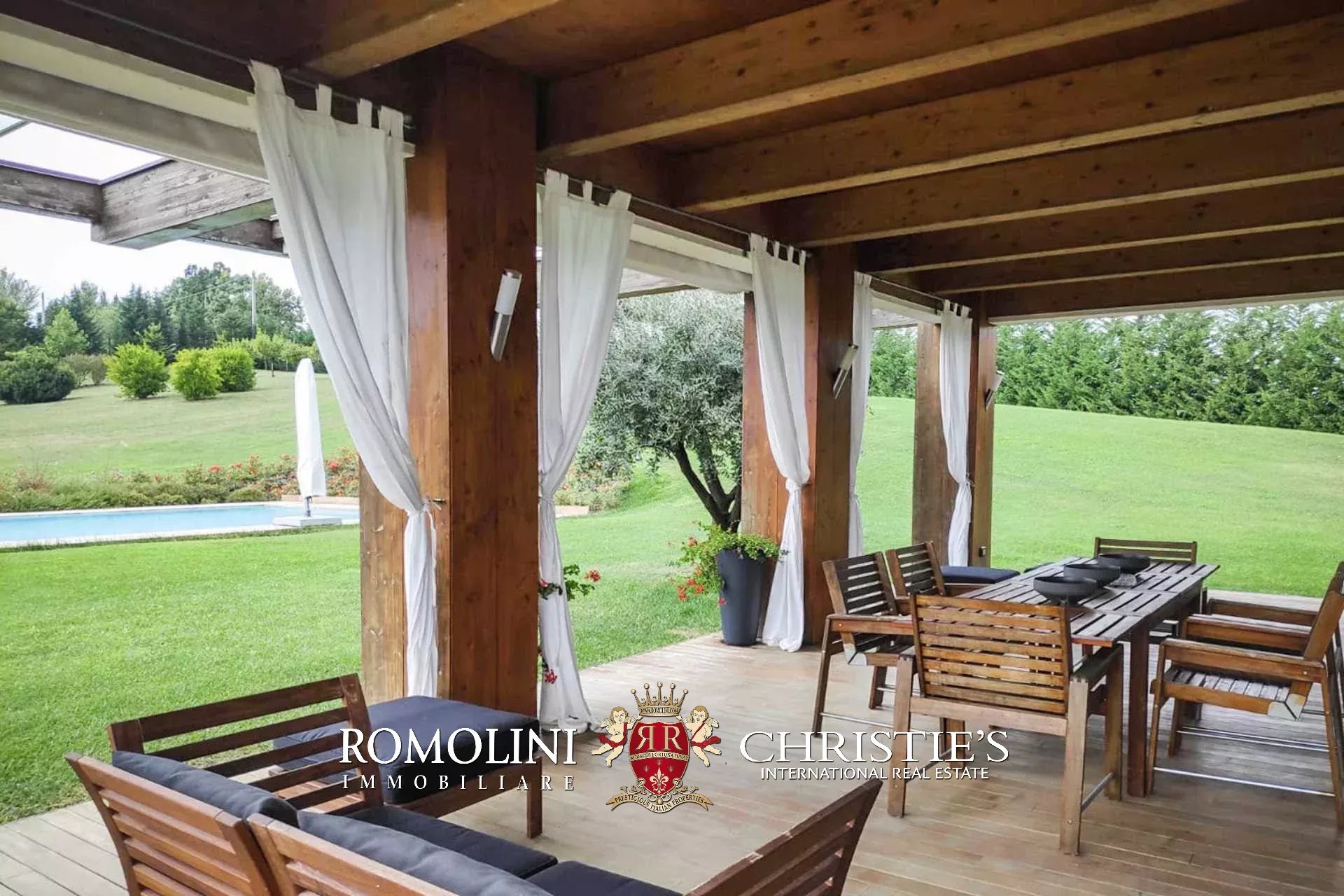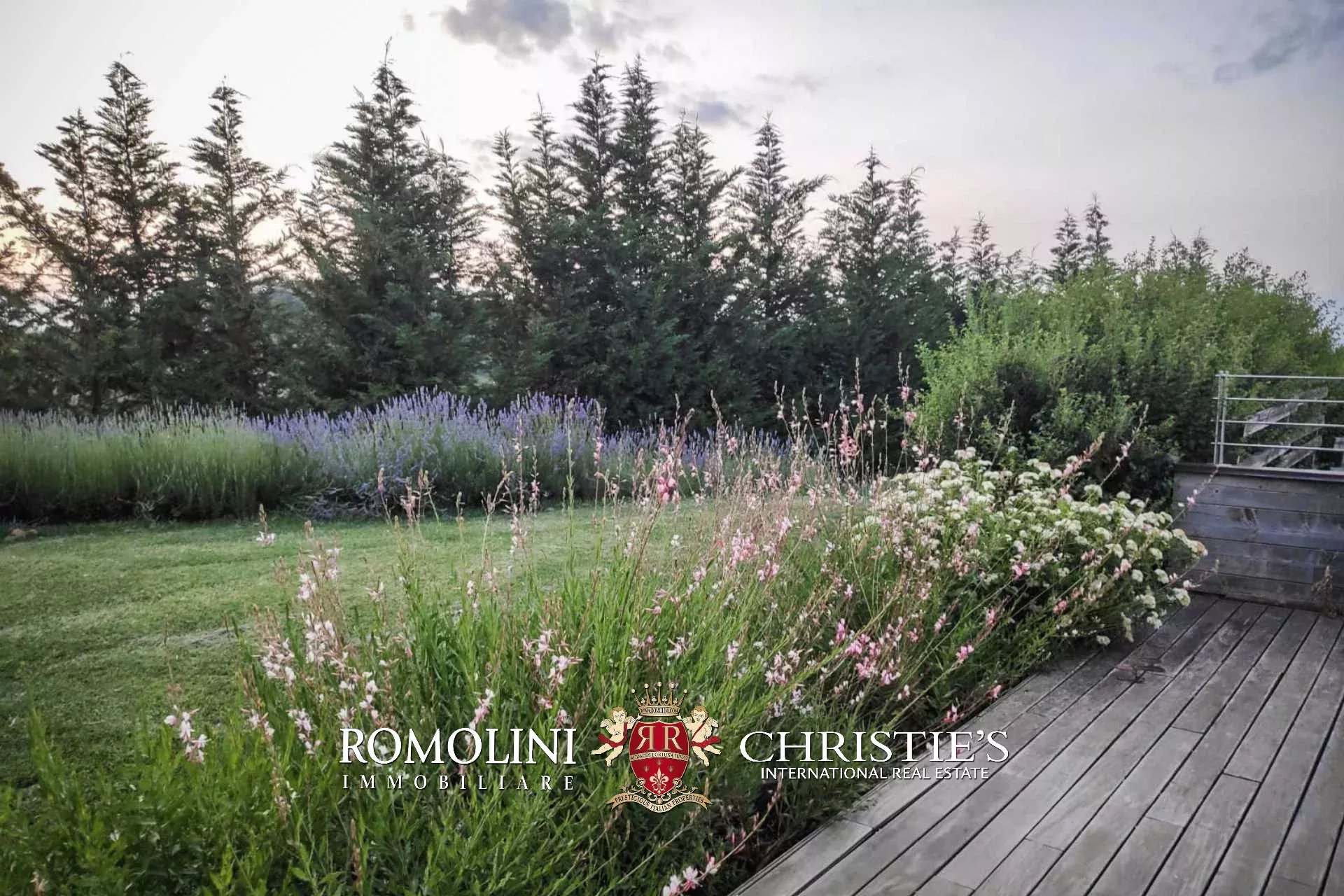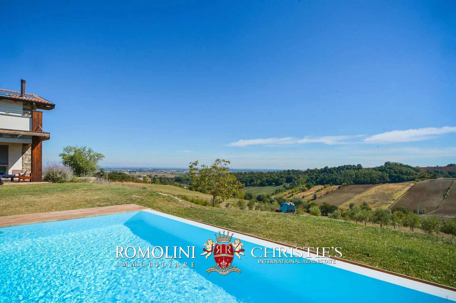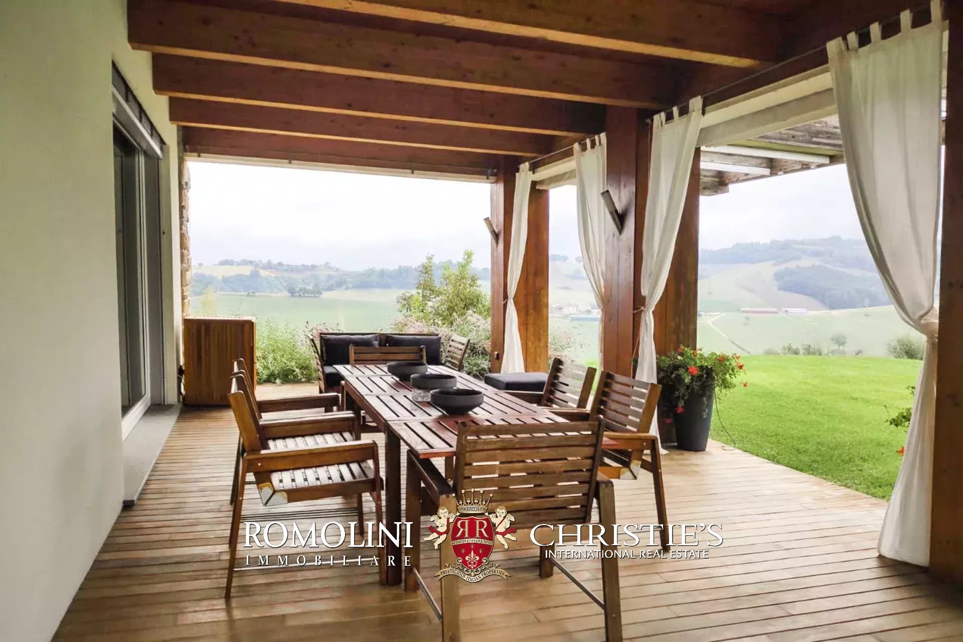 Modern villa with pool, olive grove and fruit orchard in Emilia-Romagna, in the province of Parma.