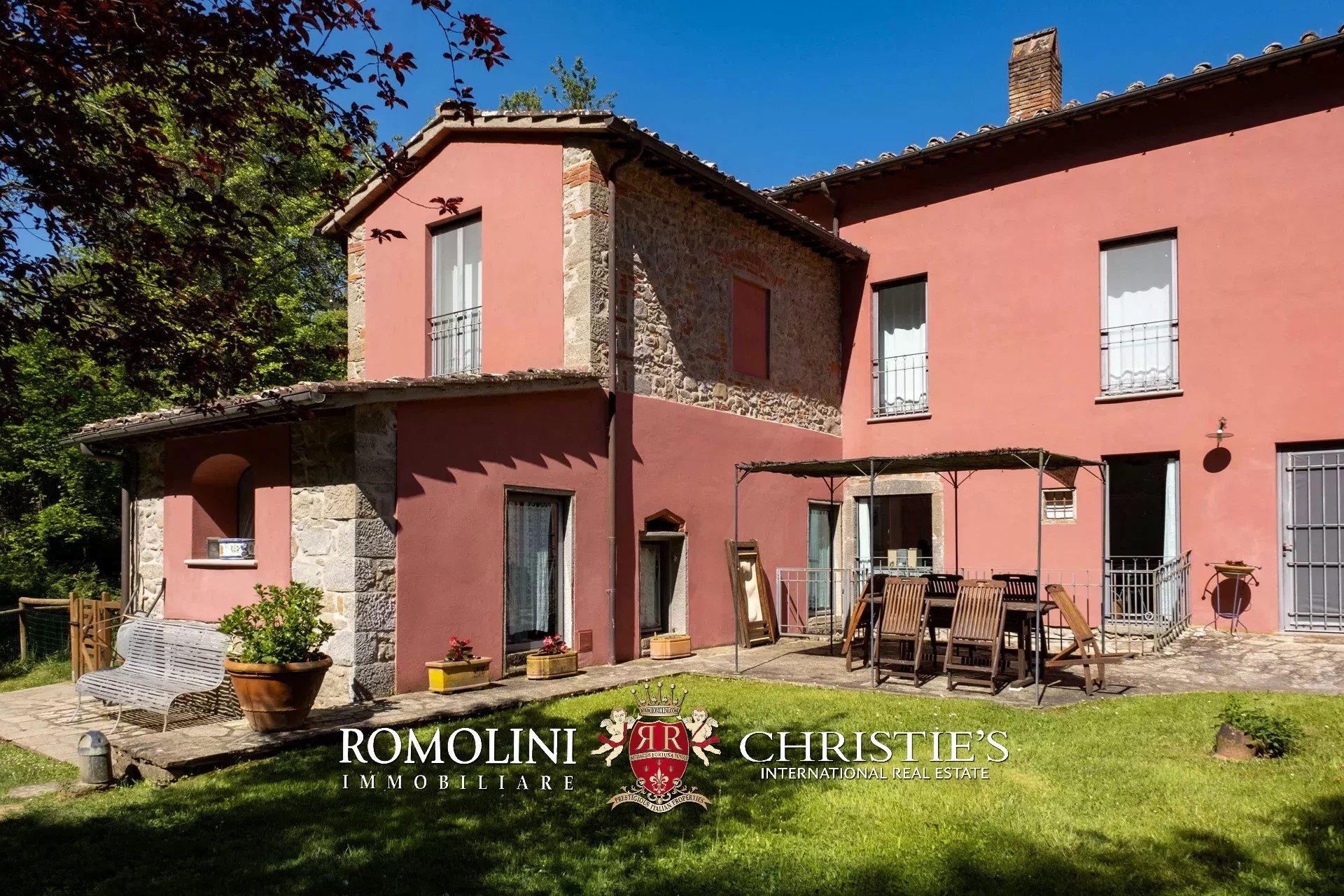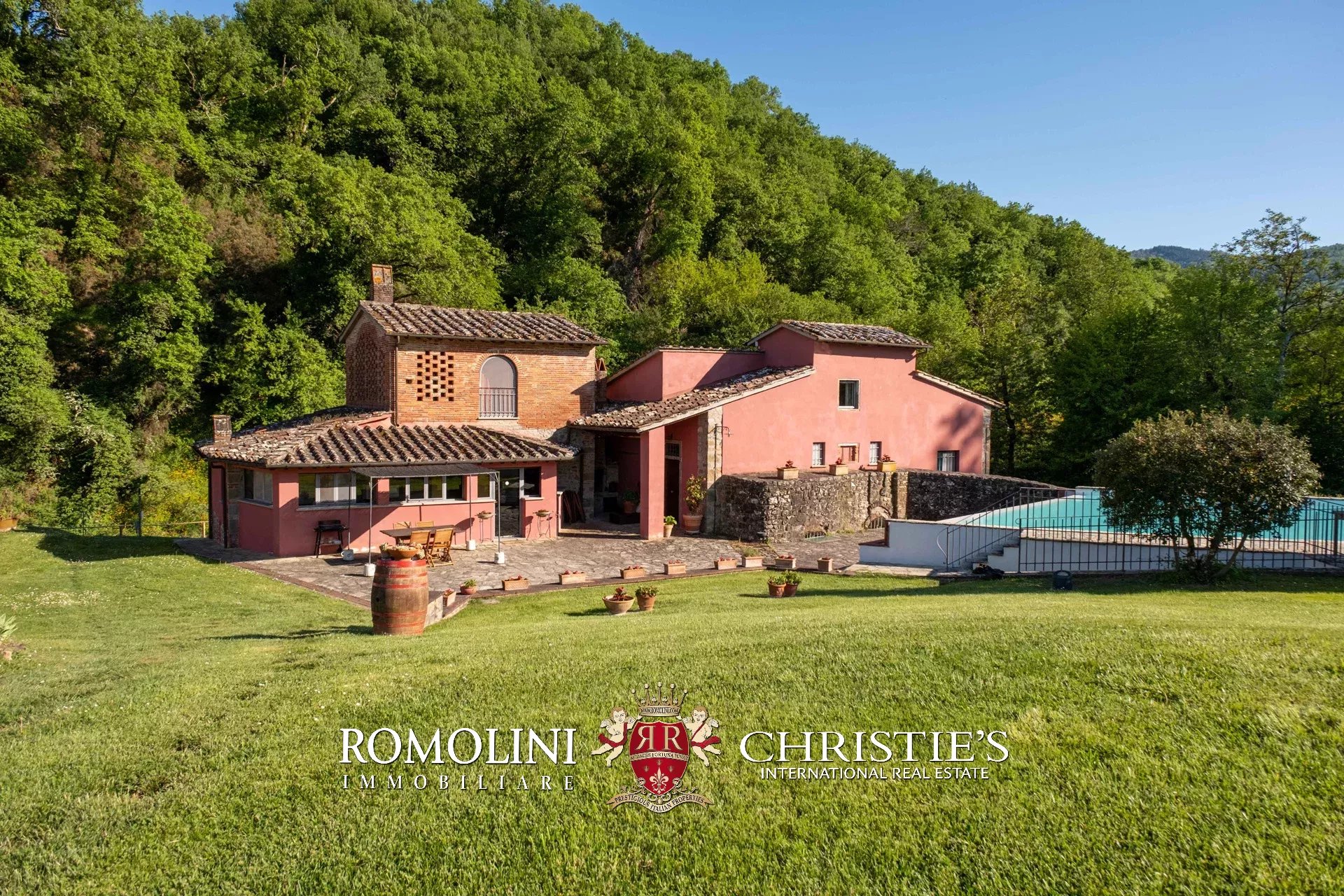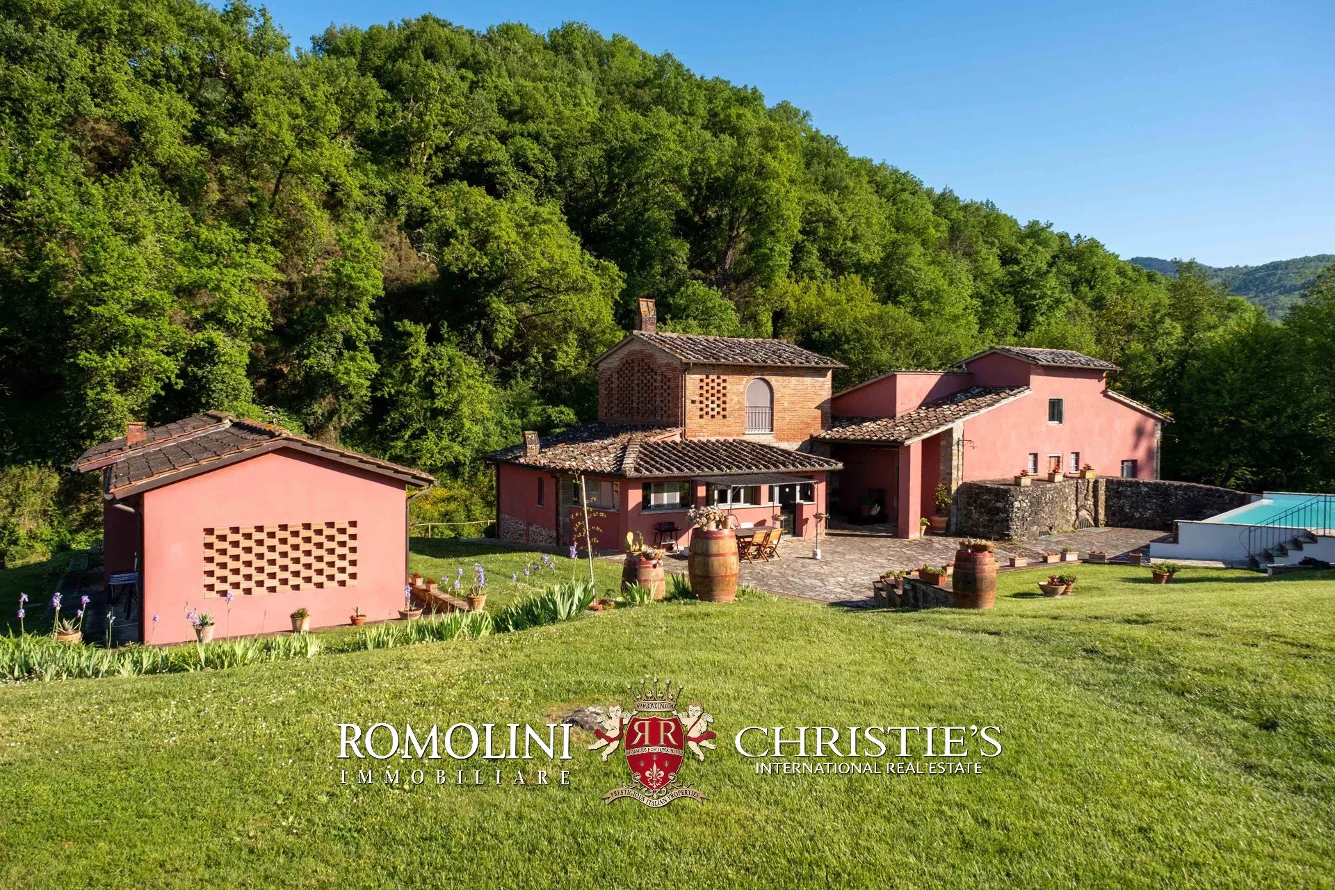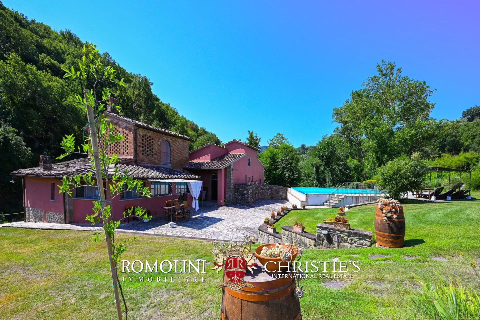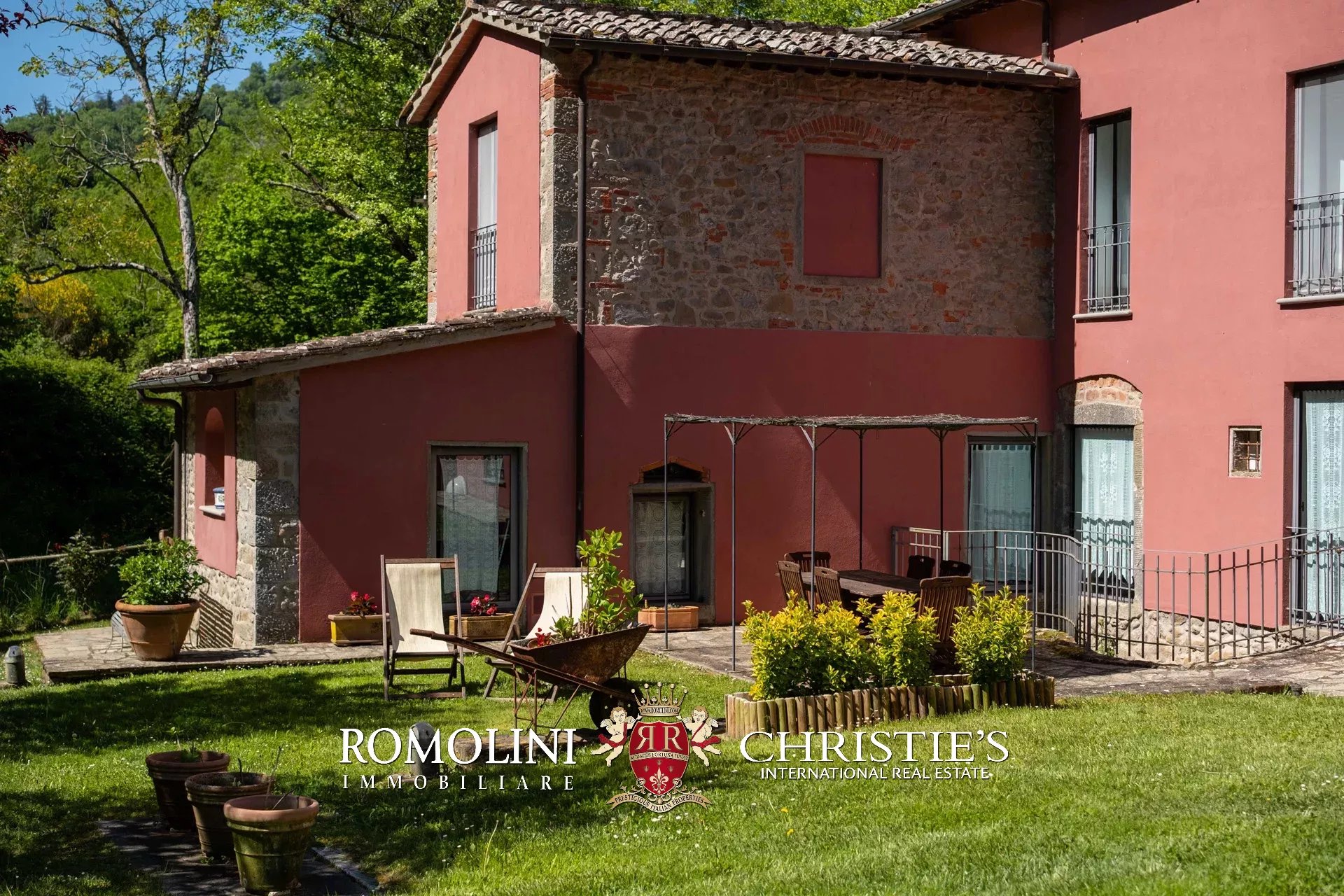 Straddling Valdarno and Chianti Classico, not far from well-known centers such as Bucine and Gaiole, former 18th-century mill for sale. The property, surrounded by vineyards and olive groves typical of the area, is currently divided into four apartments (8 rooms in total) and is surrounded by a beautiful 5,700-m² garden with swimming pool and parking for guests.