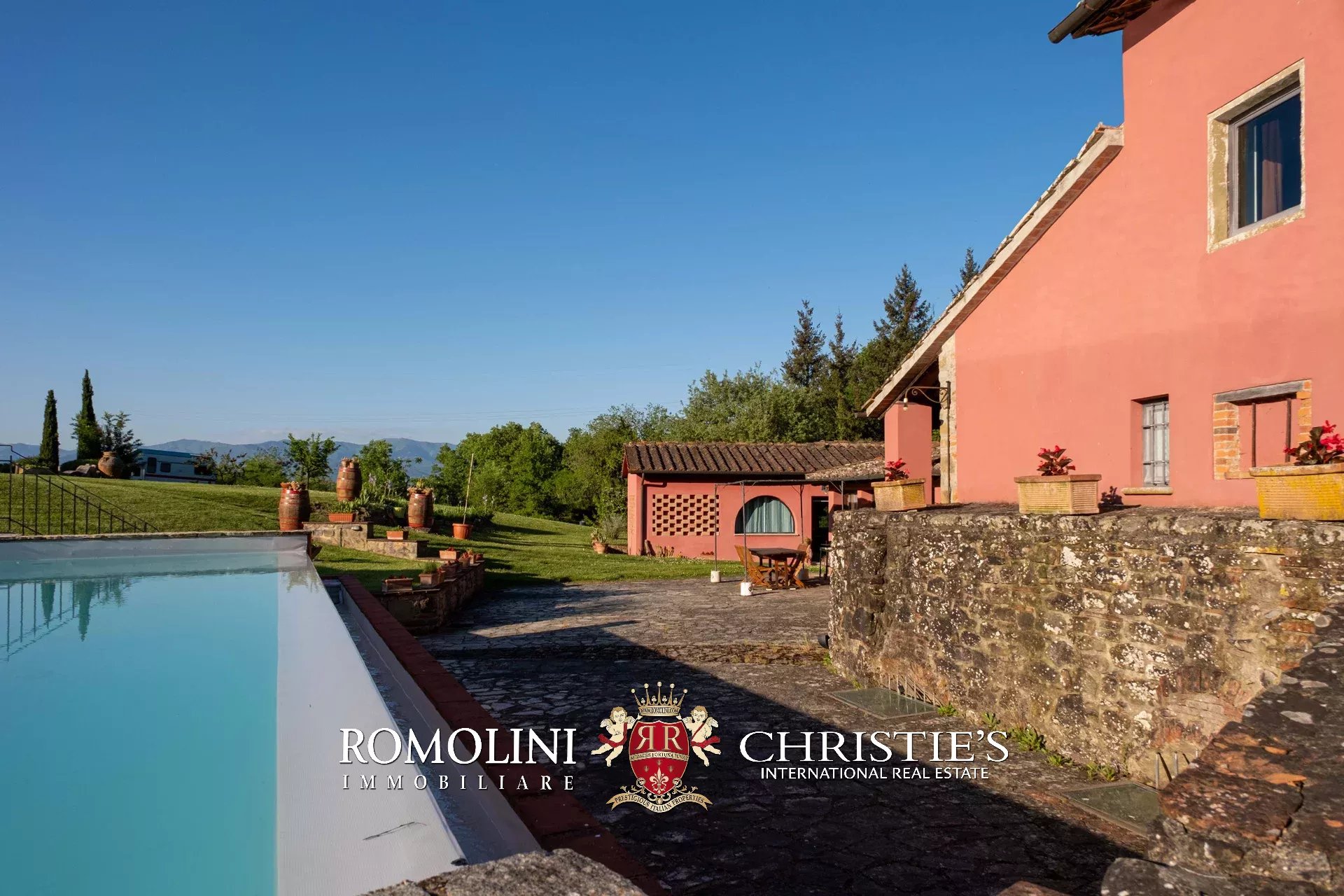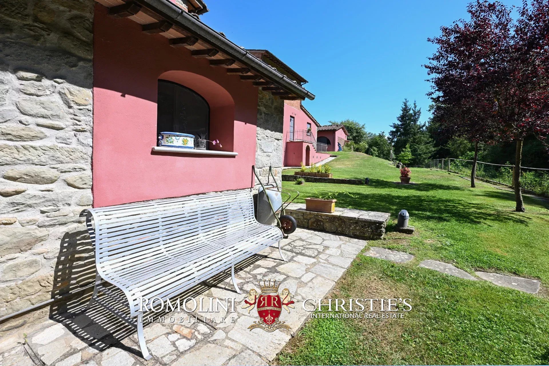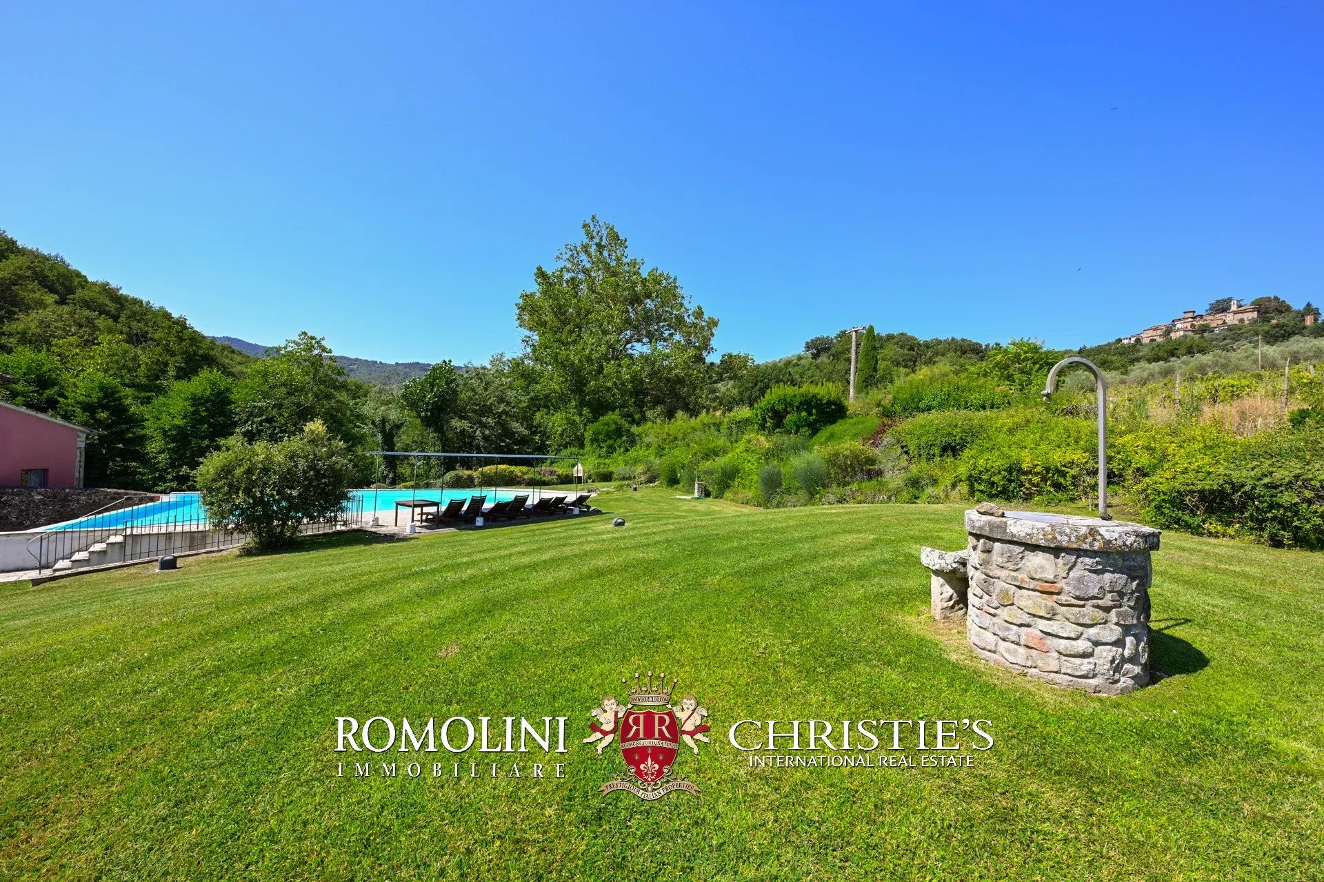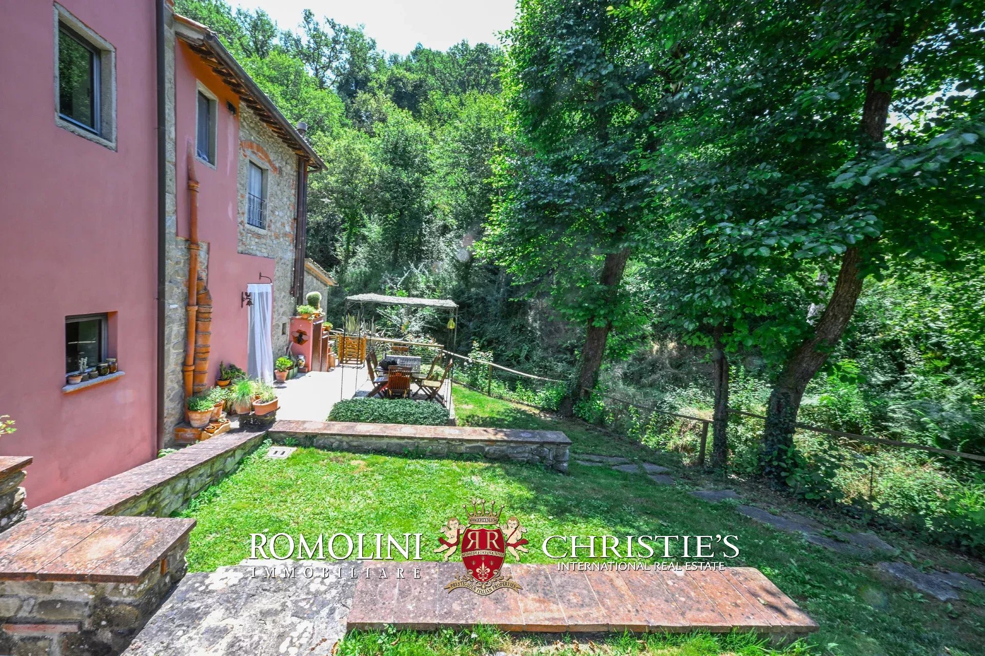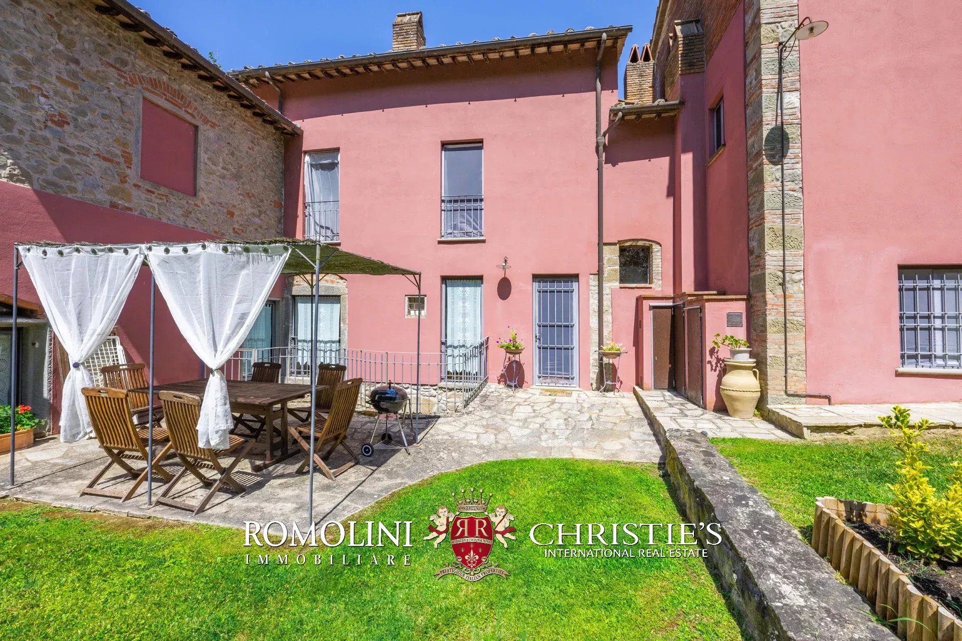 Straddling Valdarno and Chianti Classico, not far from well-known centers such as Bucine and Gaiole, former 18th-century mill for sale. The property, surrounded by vineyards and olive groves typical of the area, is currently divided into four apartments (8 rooms in total) and is surrounded by a beautiful 5,700-m² garden with swimming pool and parking for guests.