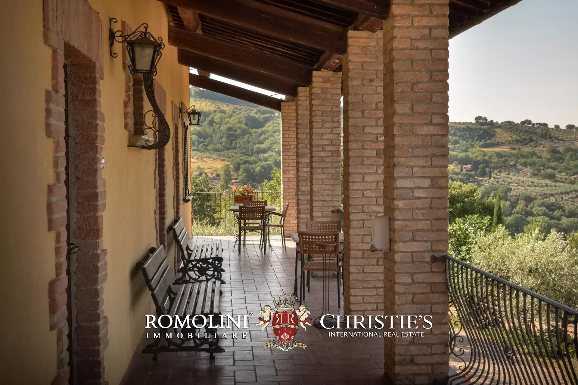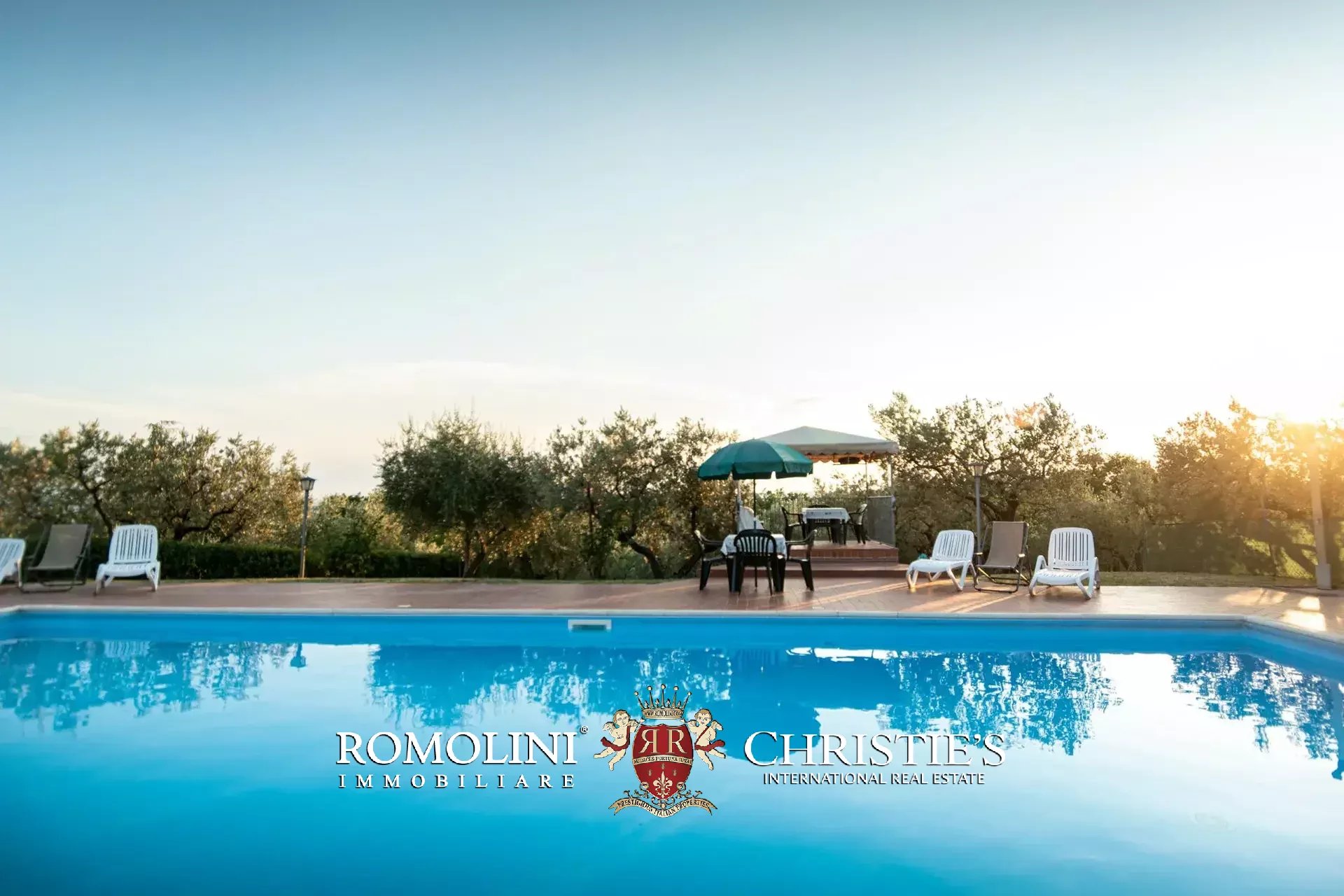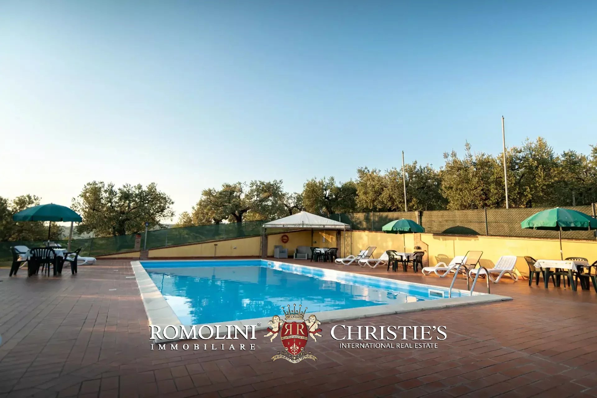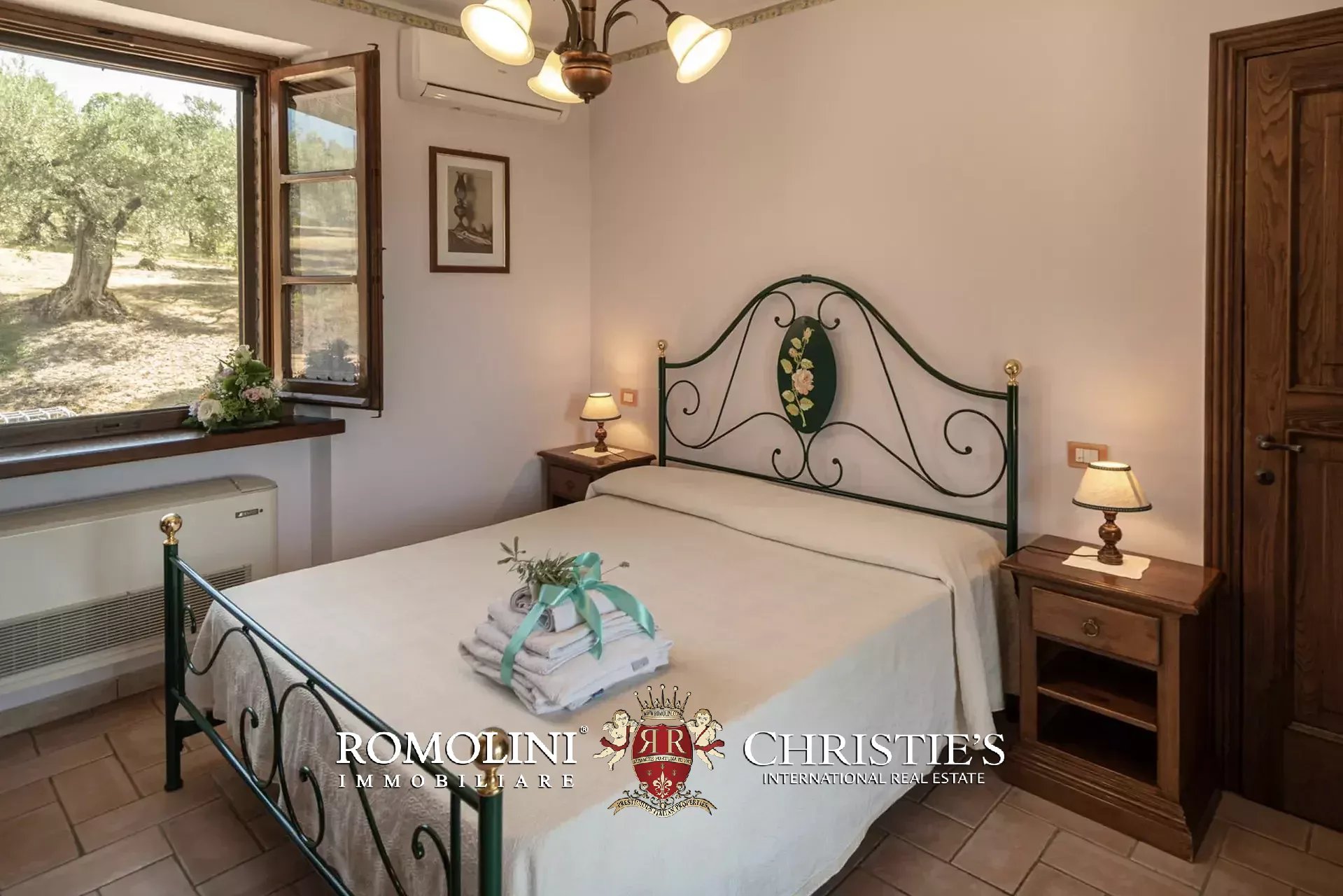 The property is set in a fully fenced plot of 15,000 m², with access through an automatic gate. The land hosts about 350 olive trees in production and a small vineyard, which allow the production of organic olive oil and DOC wine (Merlot, Grechetto and Sangiovese).