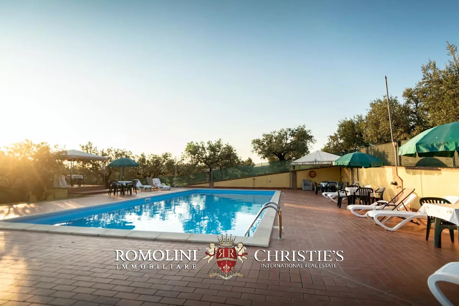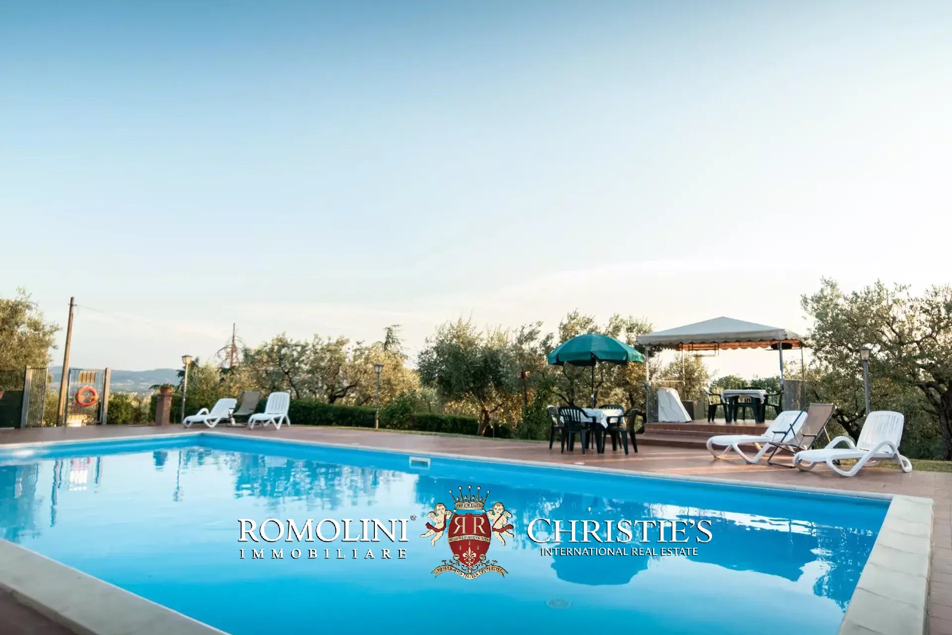 In the garden is a 13 × 6 m panoramic swimming pool with solarium, perfect for relaxing.