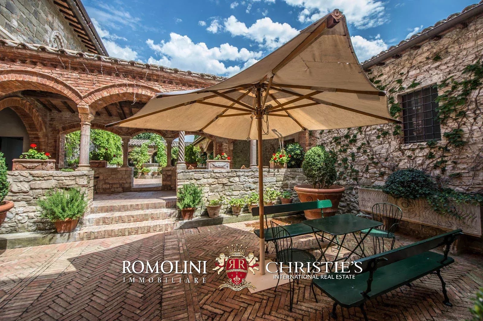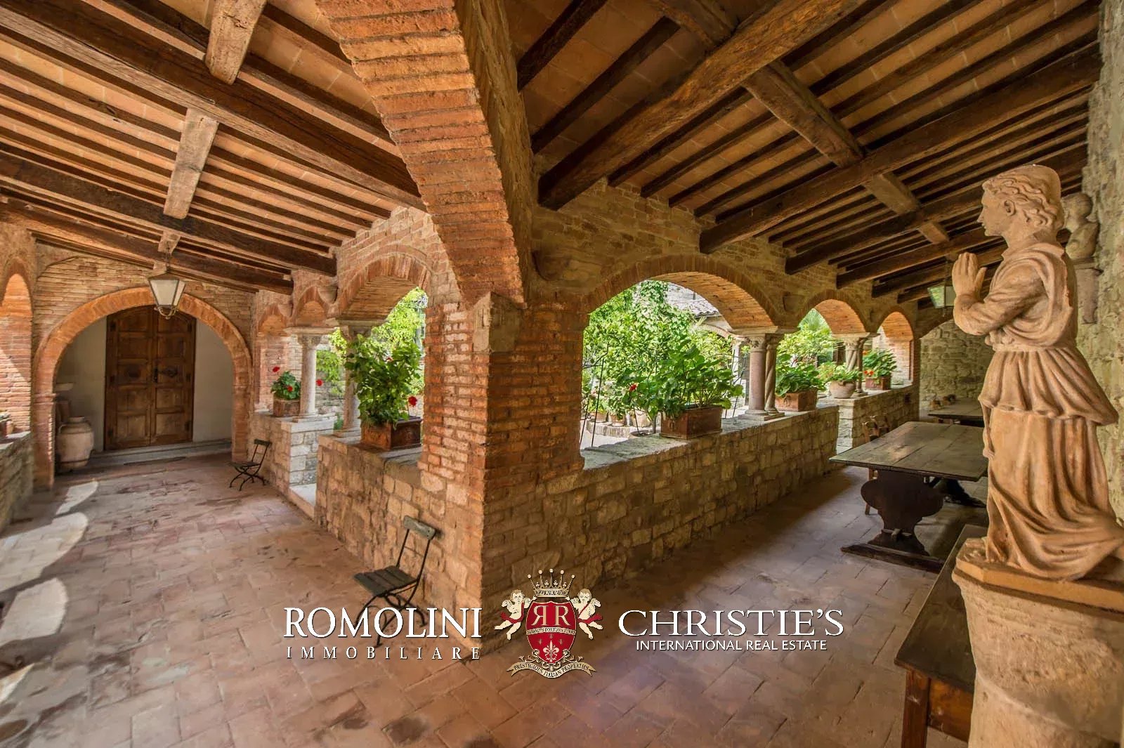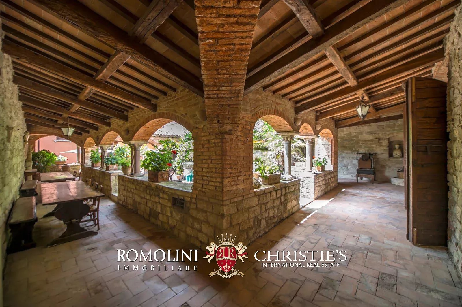 The convent, combining historic charm with the most up-to date facilities, features wonderful rooms, vaulted ceilings, ceilings with wooden beams and terracotta tiles, frescoes, one internal cloister, courtyards, modern and bright bathrooms, numerous balconies and terraces. The main fireplace, the frescoes and the sundial are original.