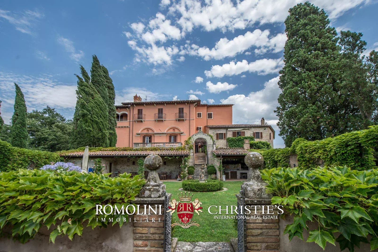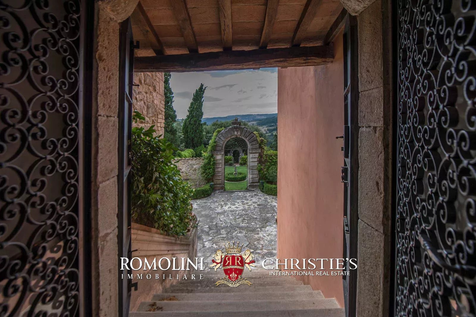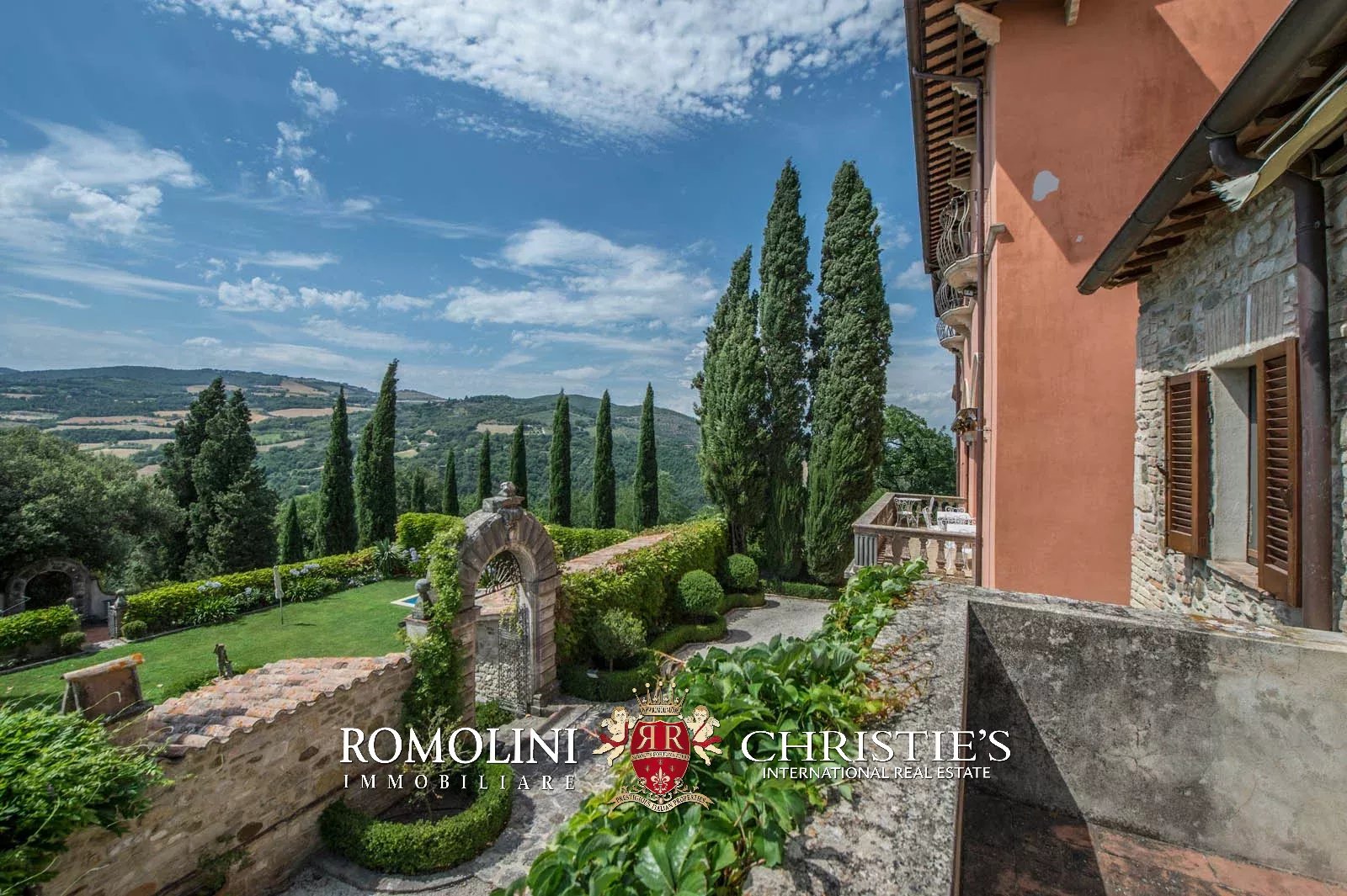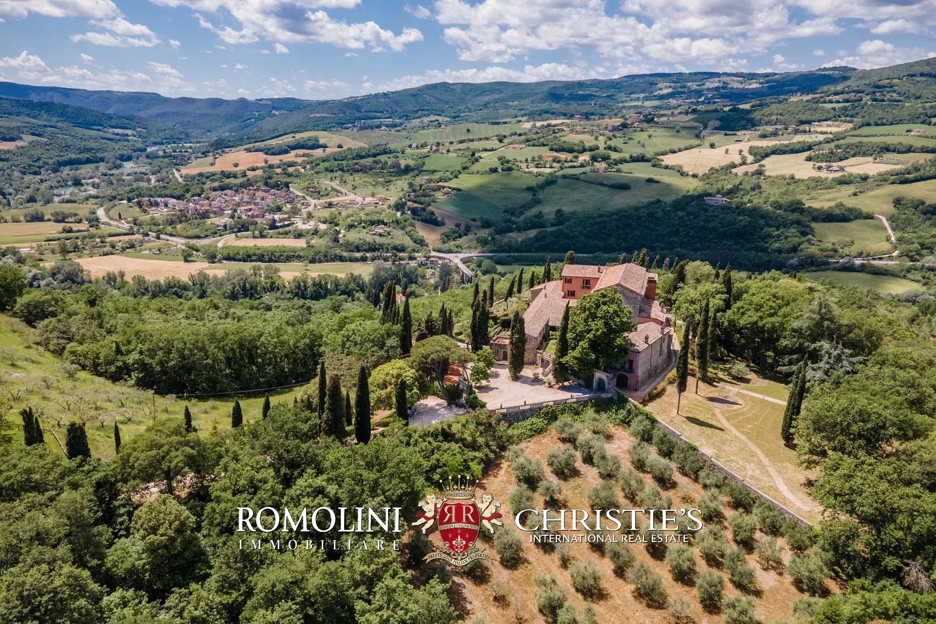 The convent is located in a hilly and very panoramic position, well exposed to the sun and blessed with excellent privacy. The property can be accessed via two separate entrances leading to two parking areas. Both roads are embellished by two rows of cypresses.