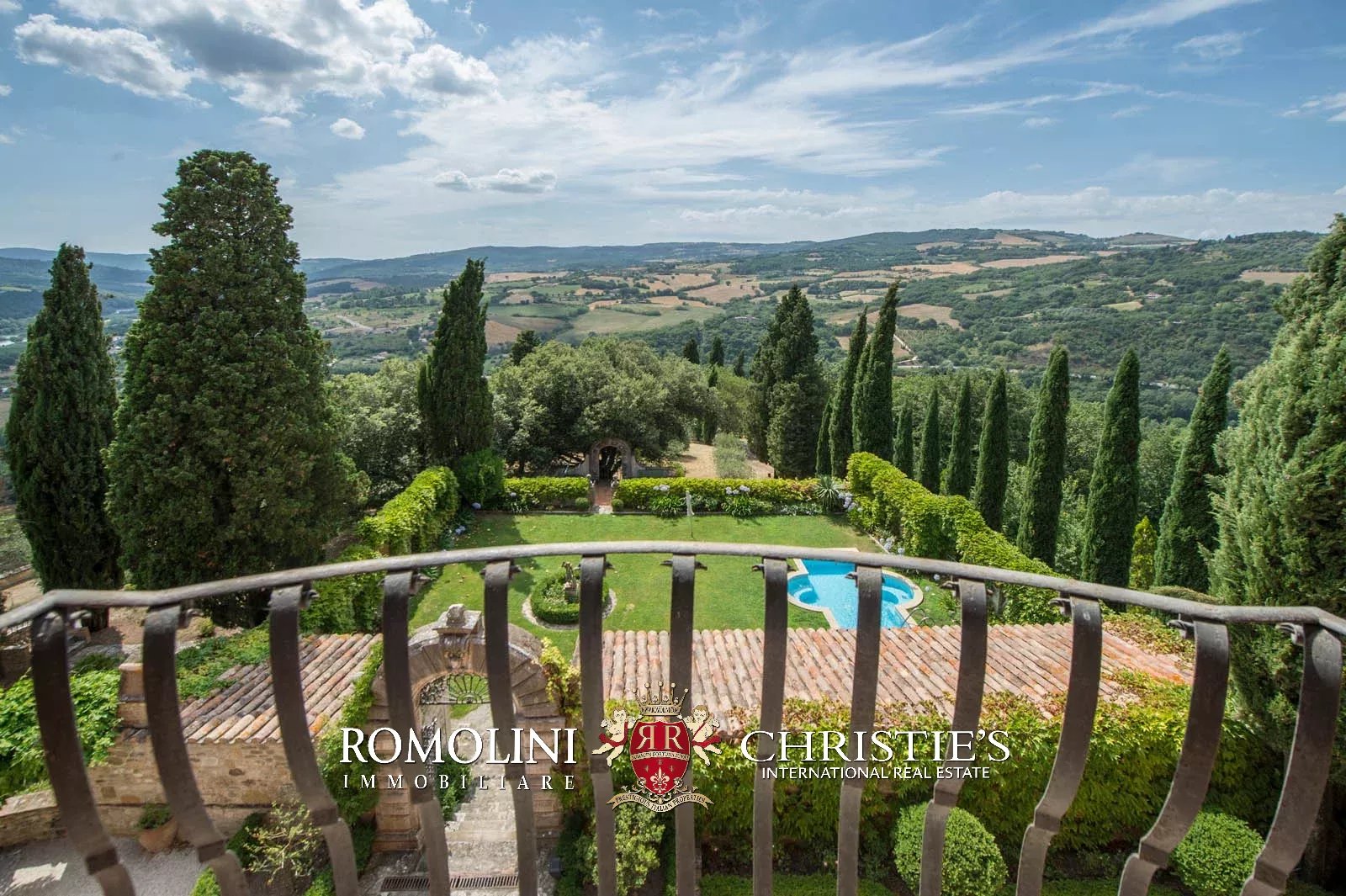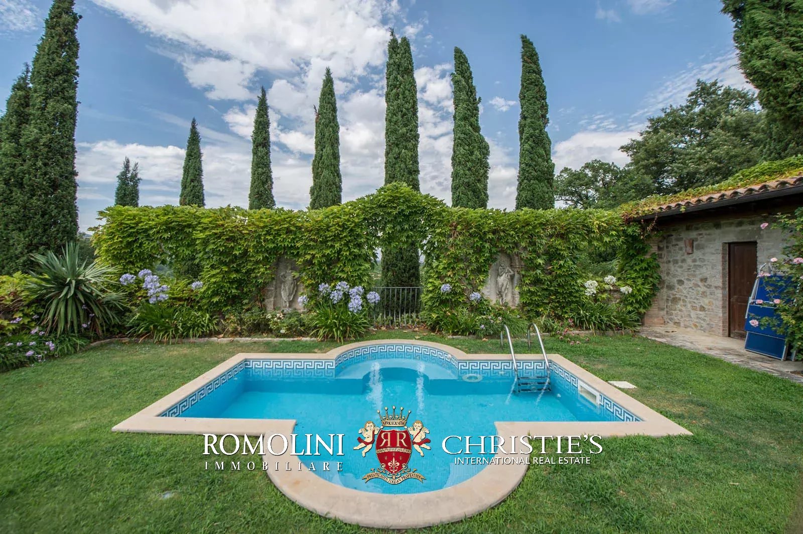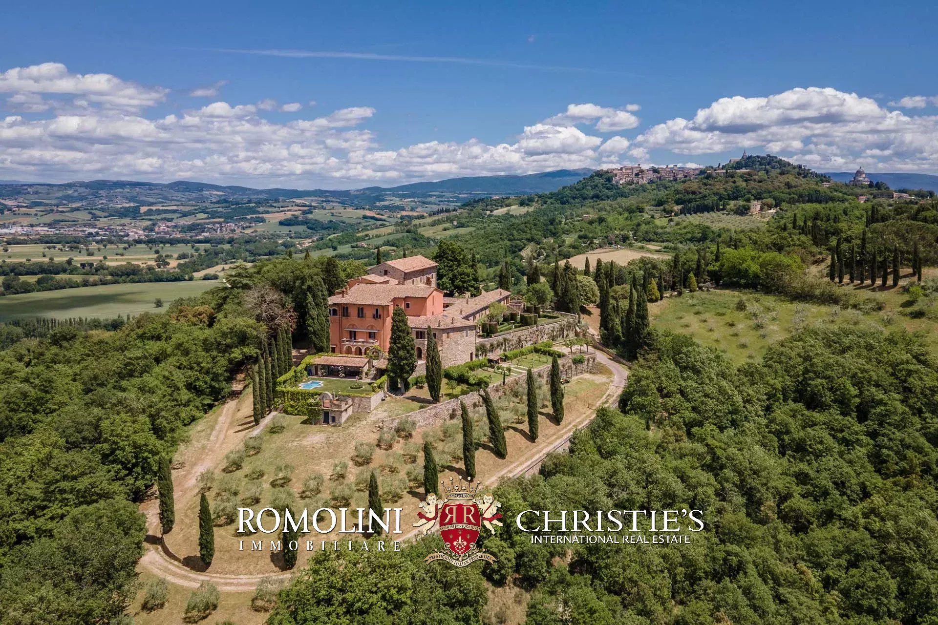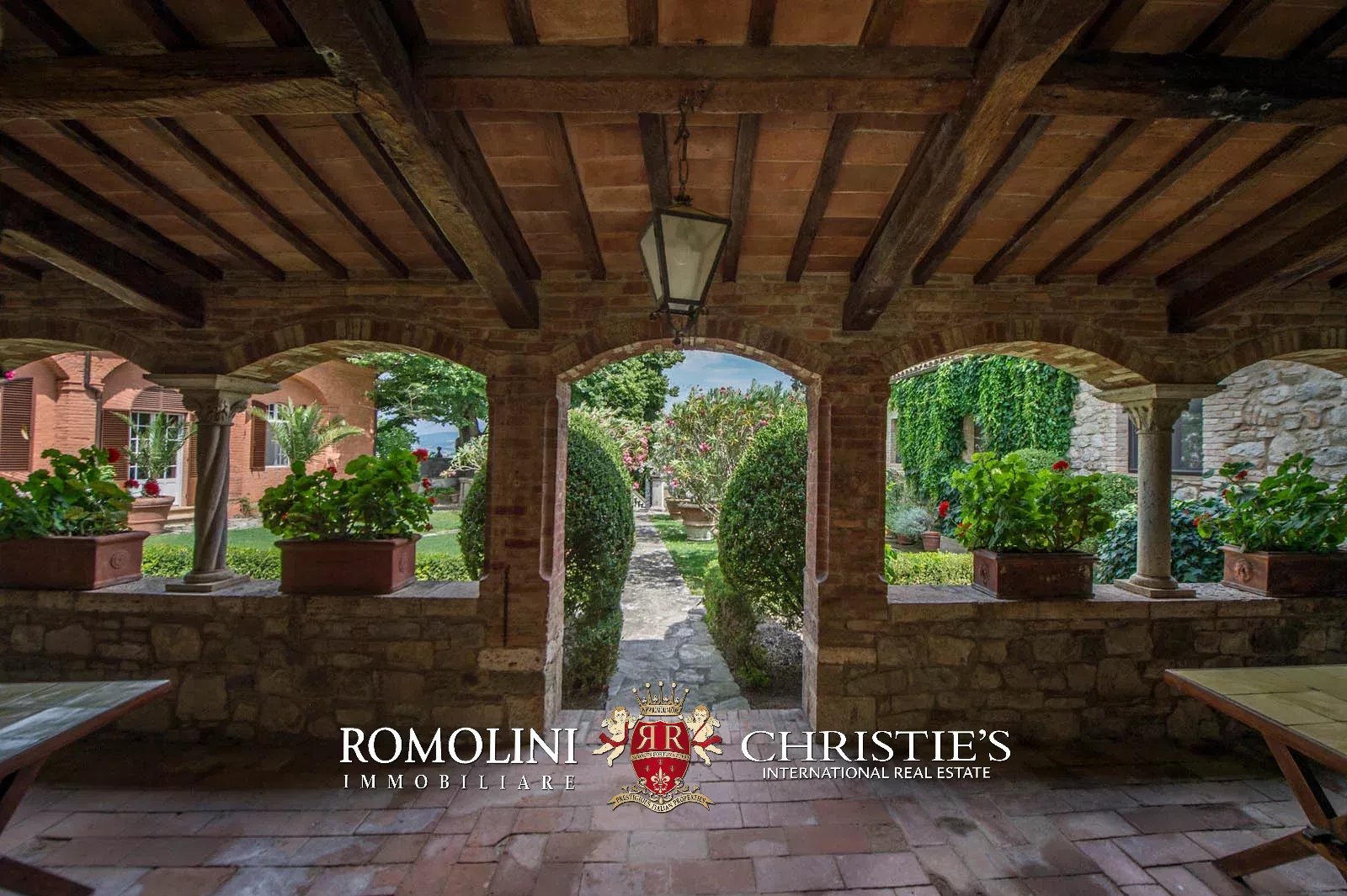 The convent is located in a hilly and very panoramic position, well exposed to the sun and blessed with excellent privacy. The property can be accessed via two separate entrances leading to two parking areas. Both roads are embellished by two rows of cypresses.