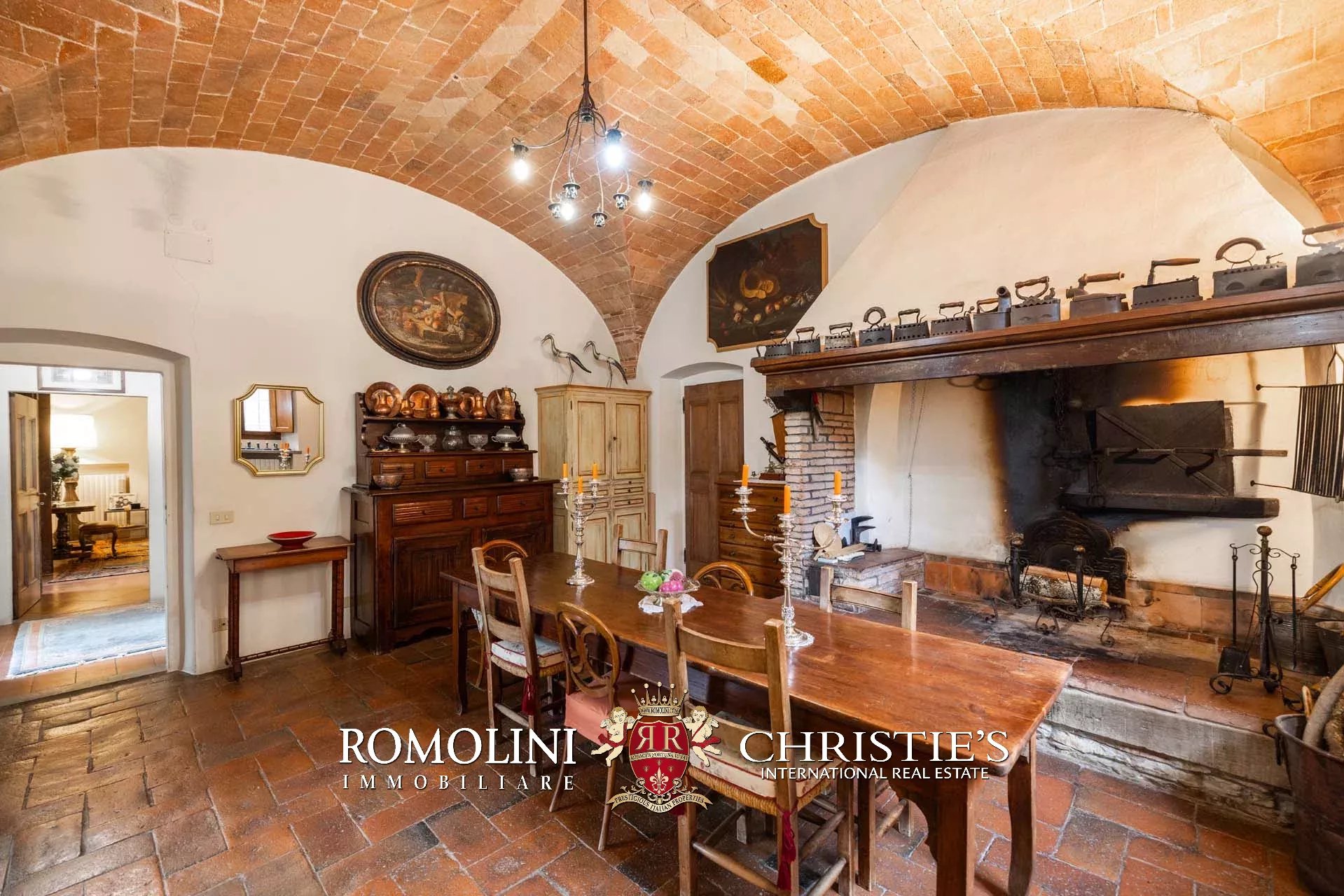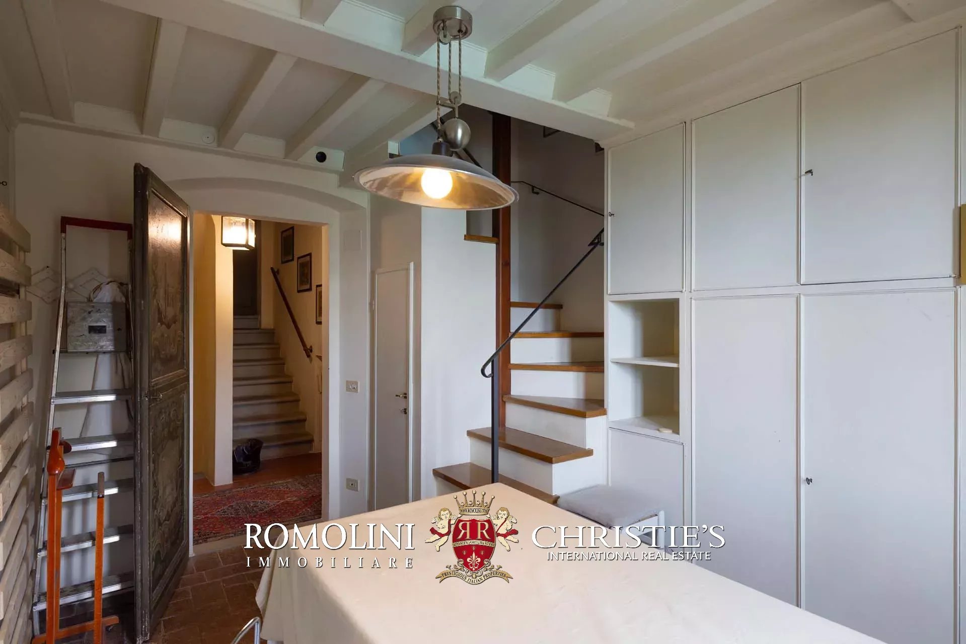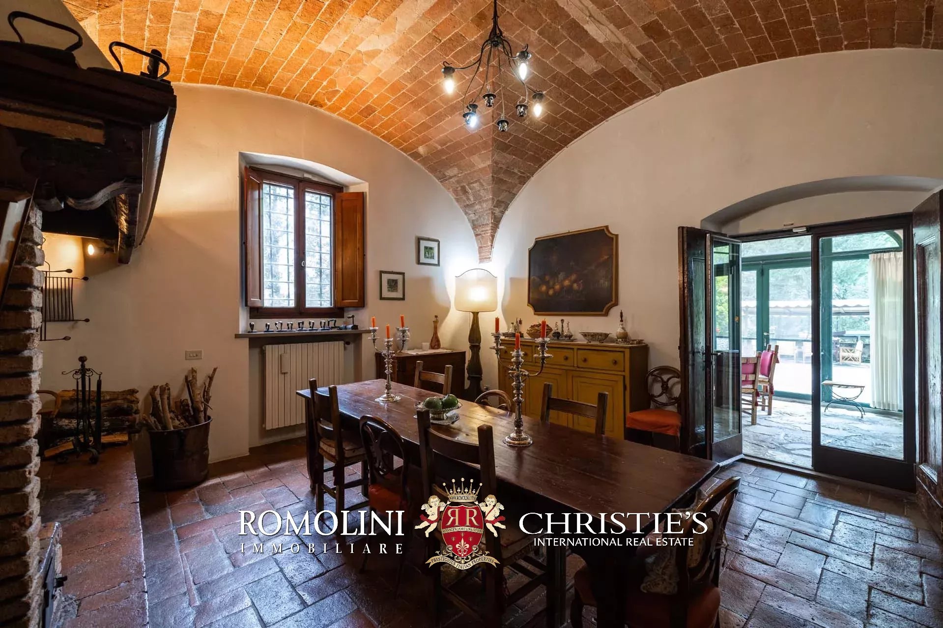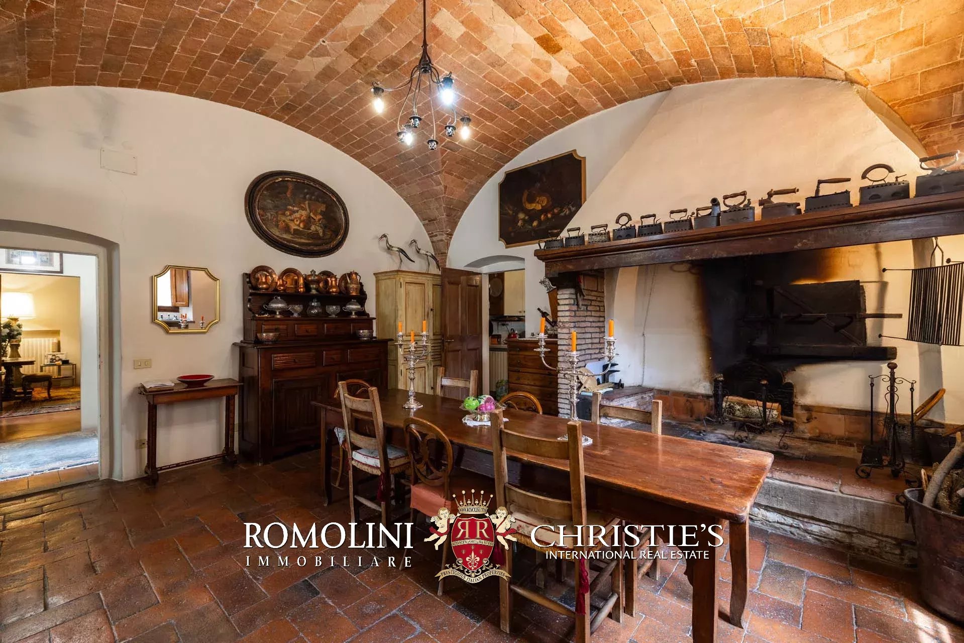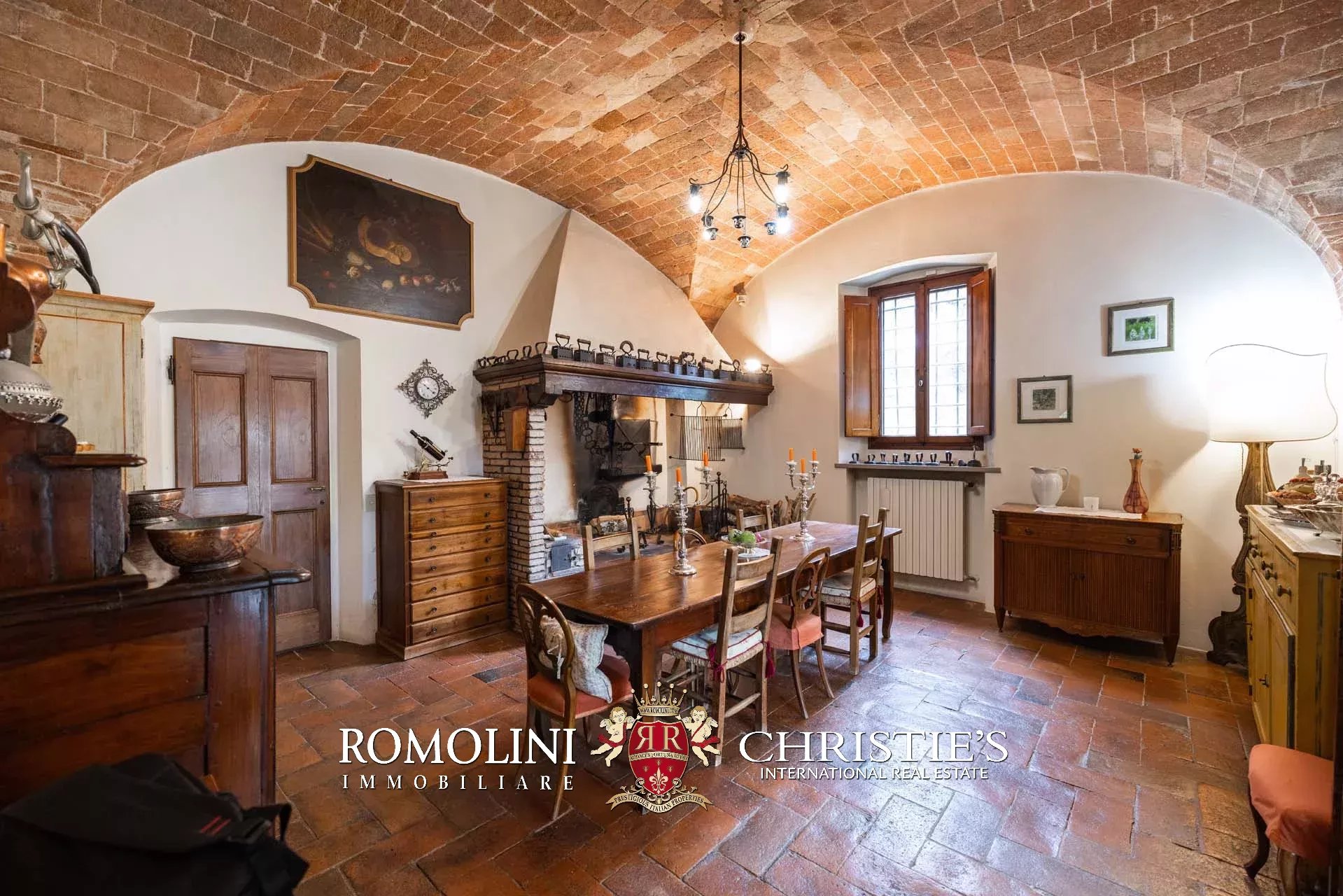 The dwelling has been tastefully renovated by the current owners, who have done everything possible to maintain the building’s most characteristic finishes: on the ground floor, the halls are all covered with cross vaults (exposed brick in both the loggia and dining room, plastered in the other rooms), while the loggia still has its stone floor, testifying to the fact that this was once an open space. Even the dining room still has the rustic charm of yesteryear with its large fireplace and original terracotta floors (characterized by an irregular, worn surface).